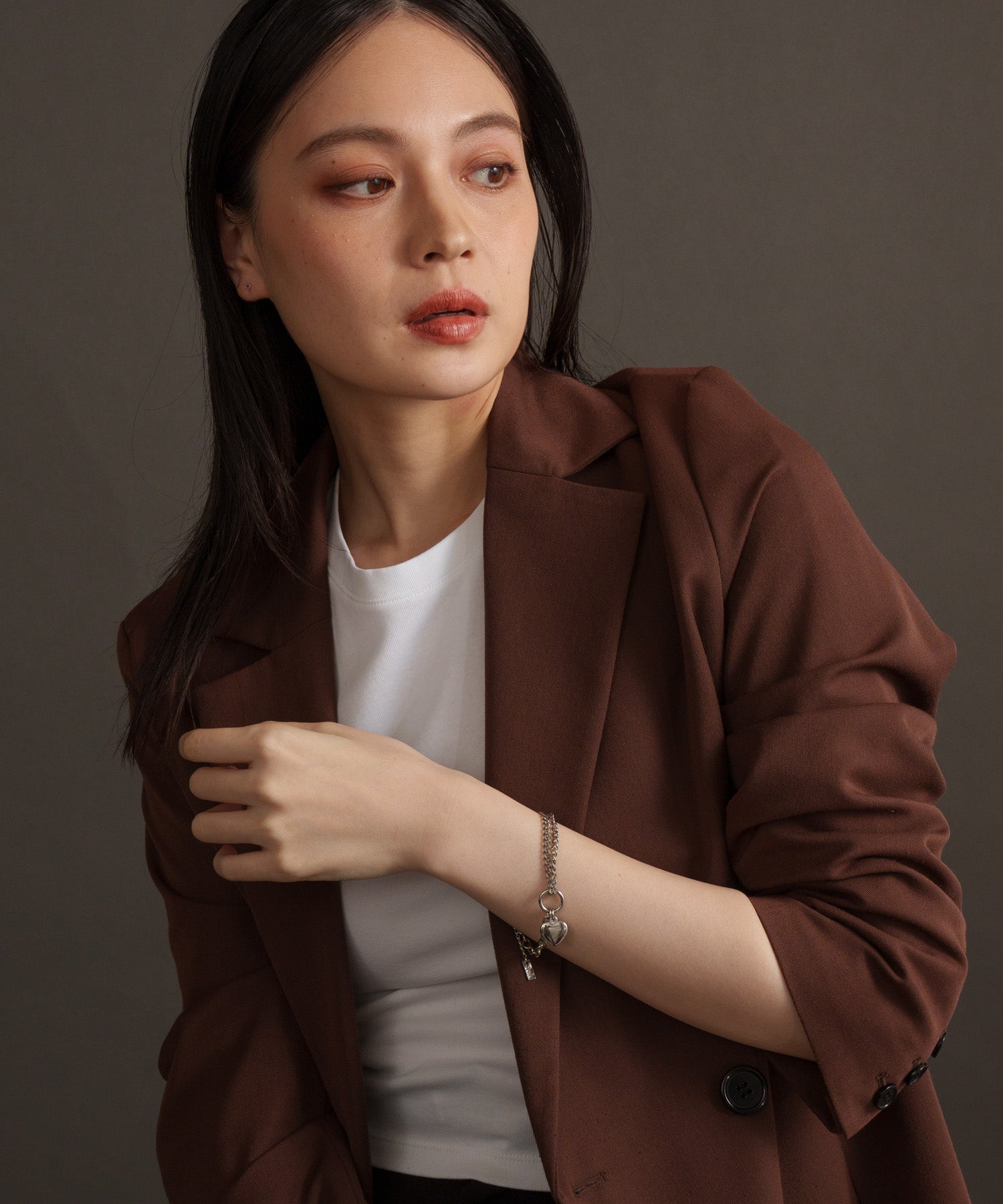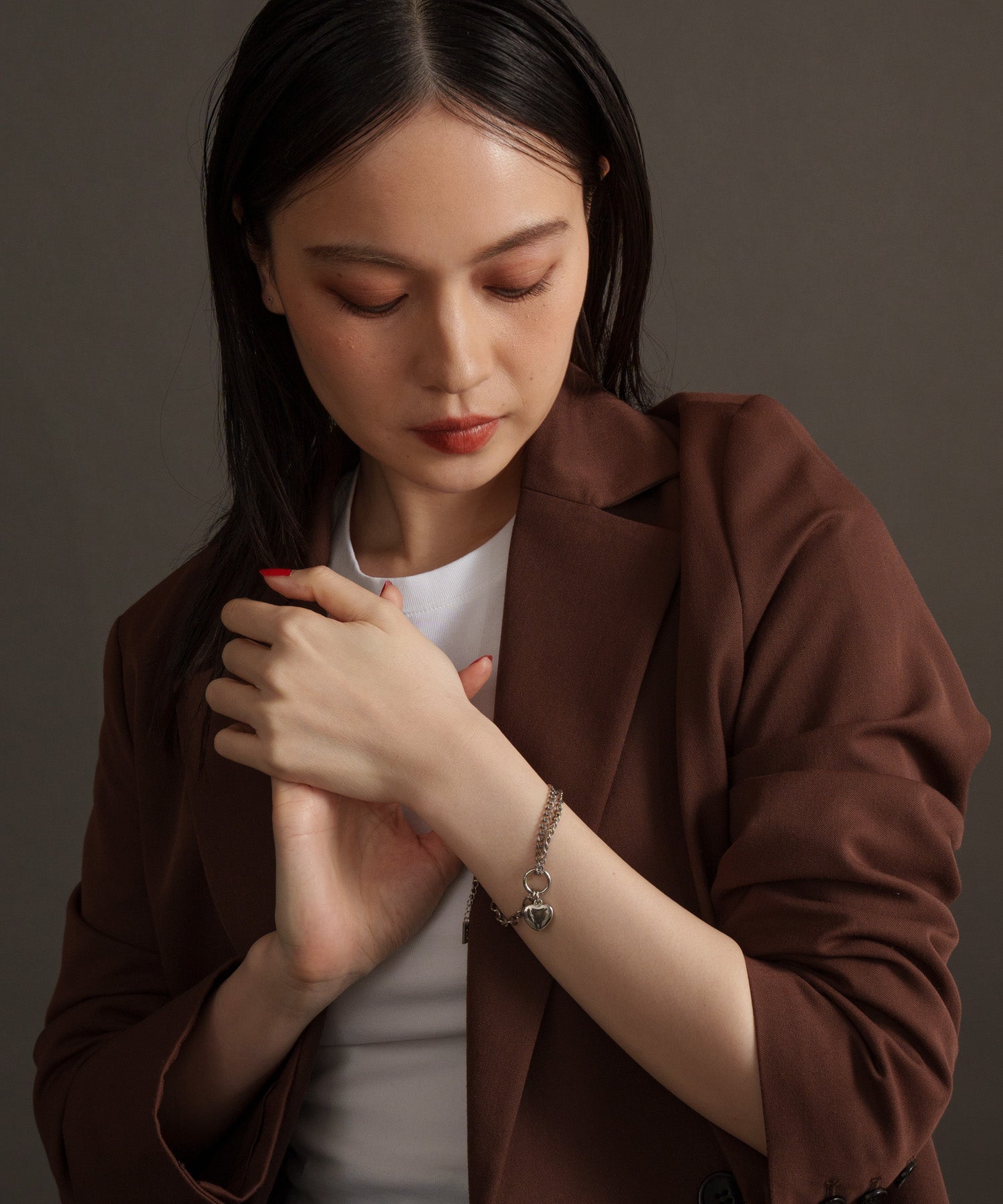 じゃらっとしたデザイン違いのチェーンが手元を豪華に仕上げるブレスレット。ハートチャームがフェミニンでワンポイントに。