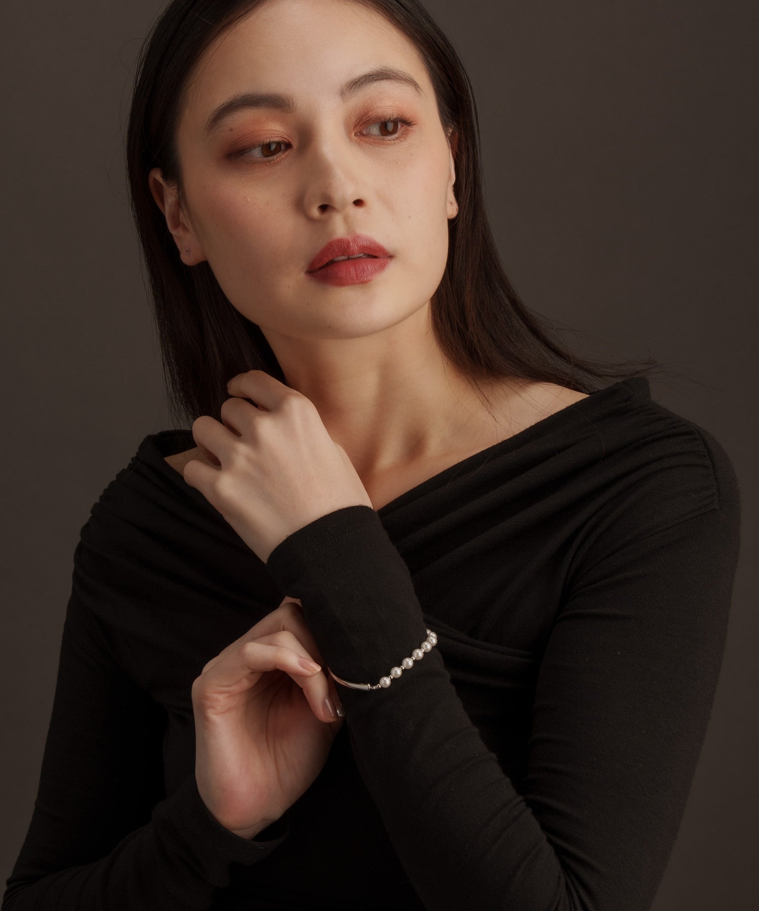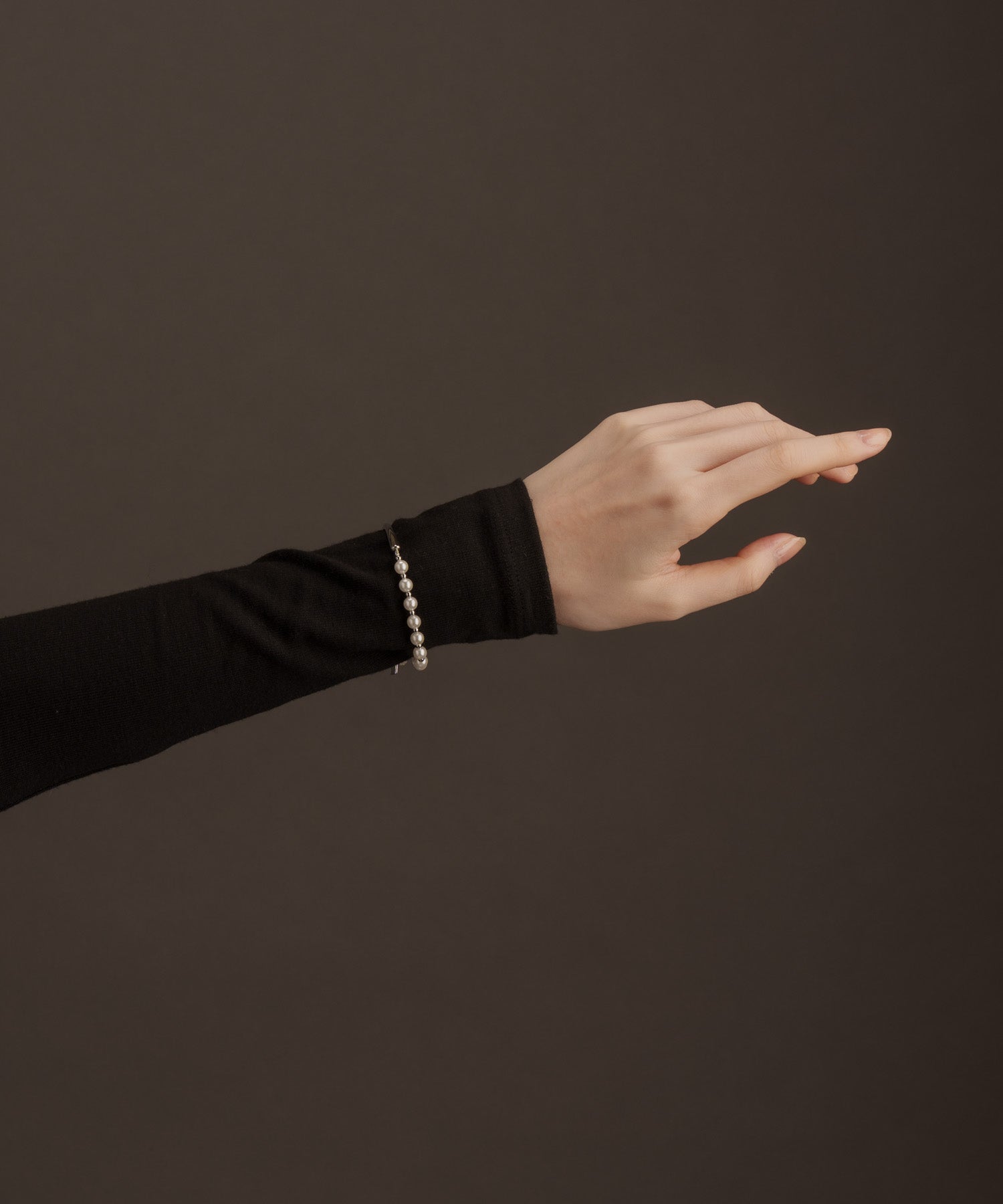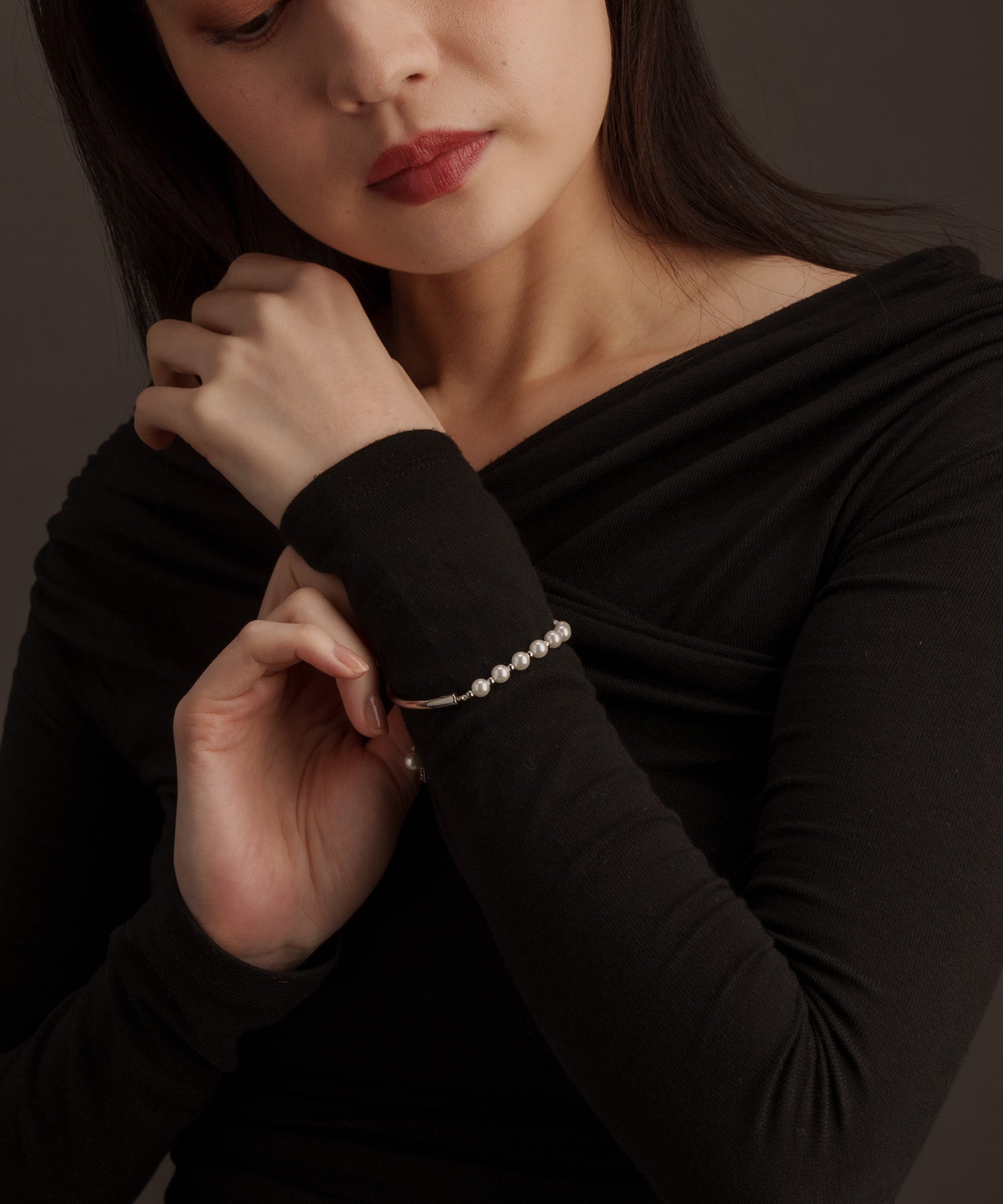 プレートが上に来ても、パールが上に来てもどちらでもOK。360度デザインが詰め込まれたブレスレットです。