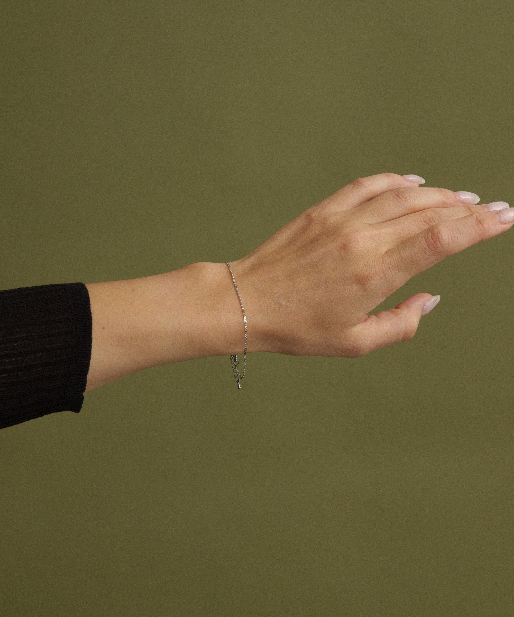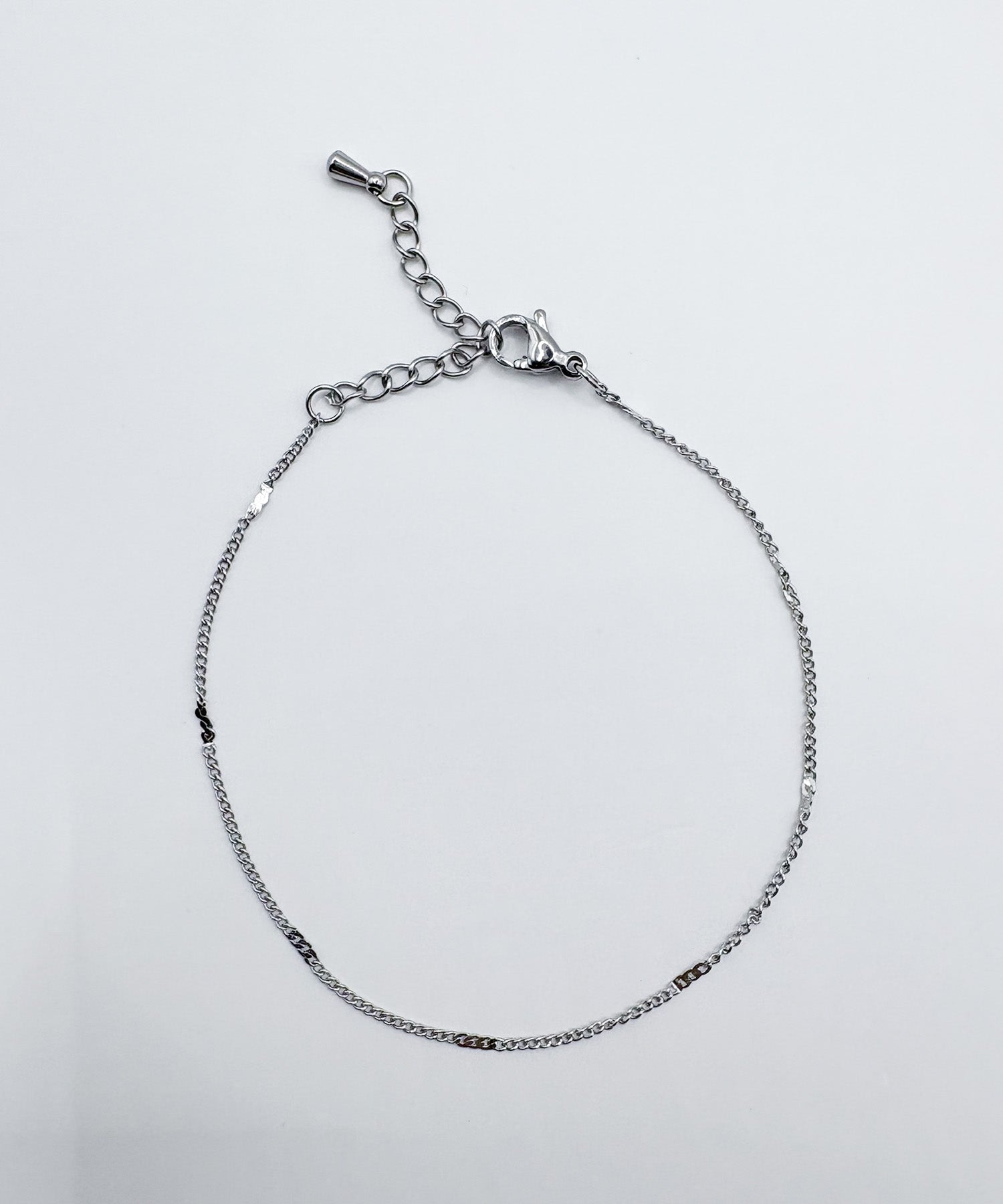 等間隔にチェーンを潰しアクセントに。軽やかな着け心地と程よい輝きで上品なブレスレットです。