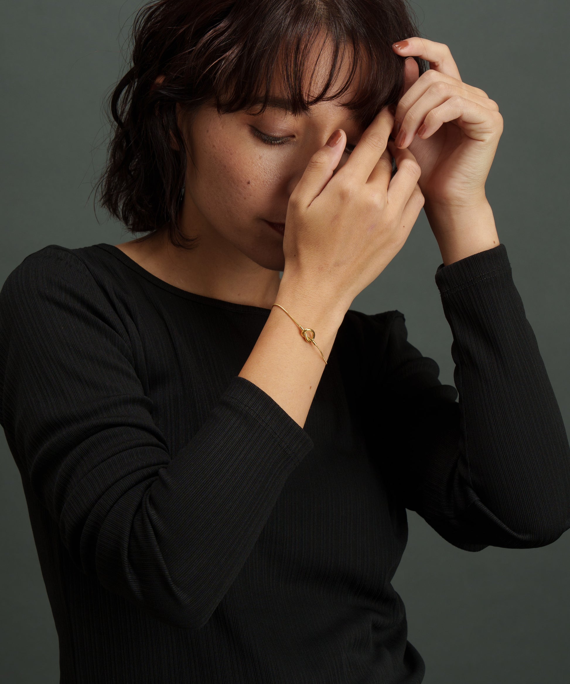シンプルなチェーンの中央を結びアクセントにしたブレスレット。飾りすぎないデザインでどんなコーデにも。