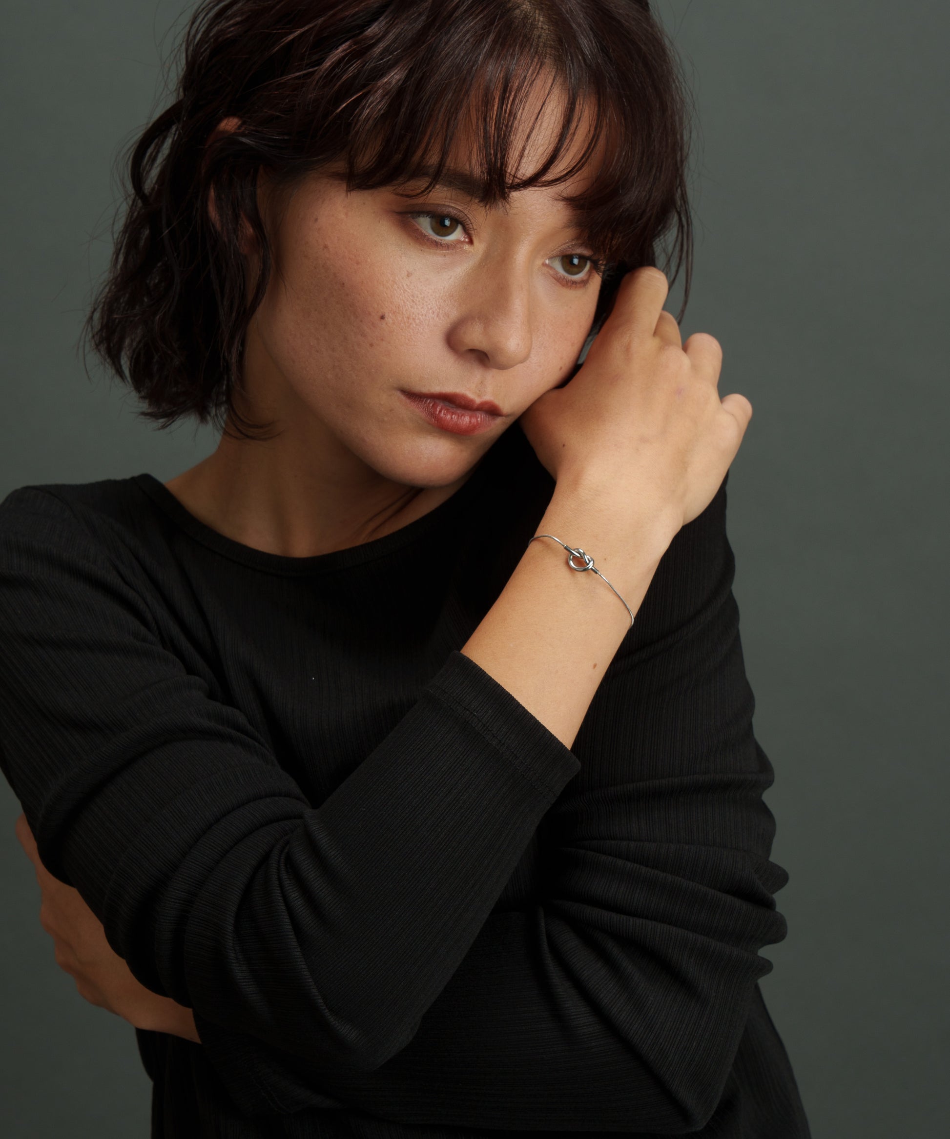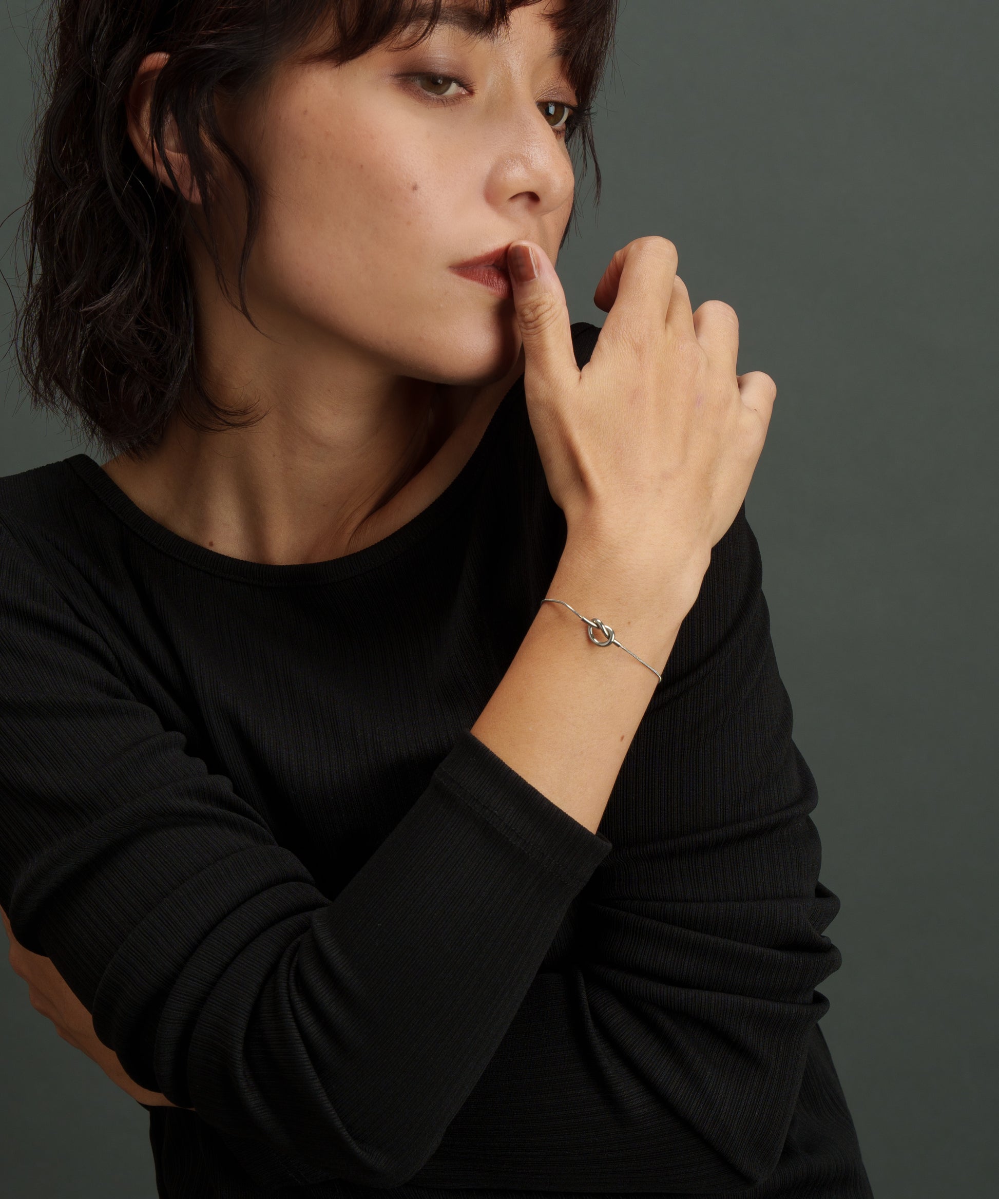 シンプルなチェーンの中央を結びアクセントにしたブレスレット。飾りすぎないデザインでどんなコーデにも。