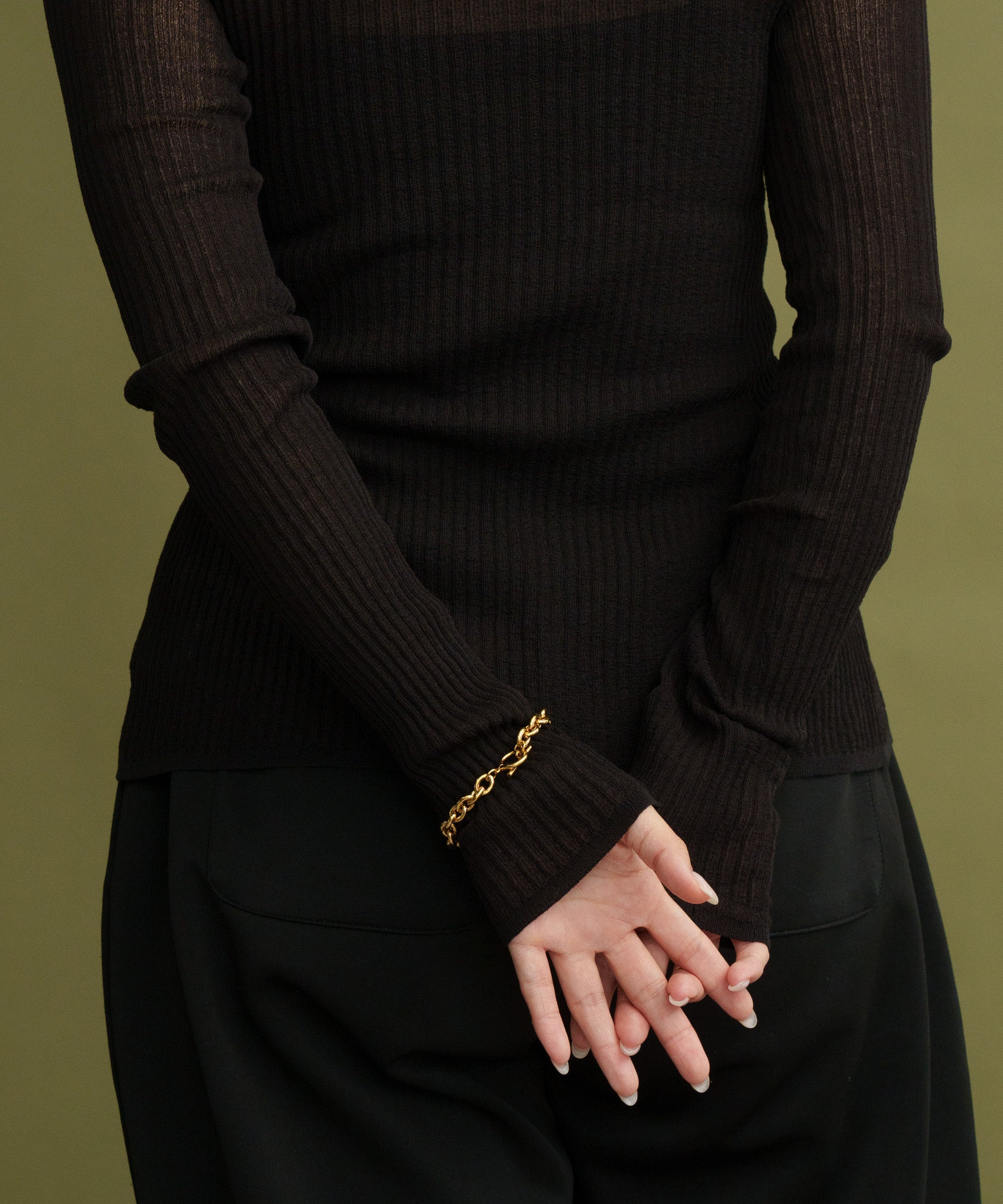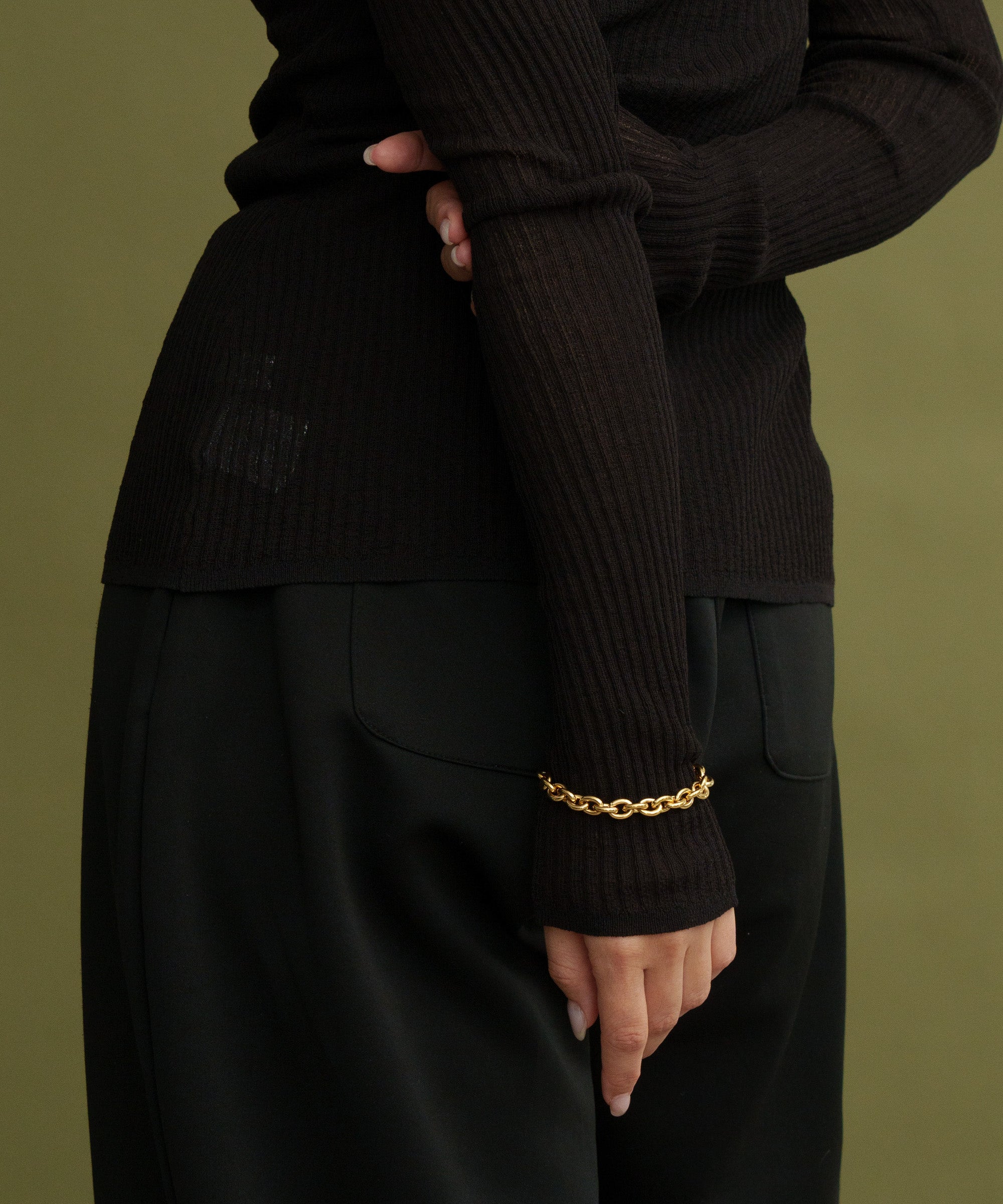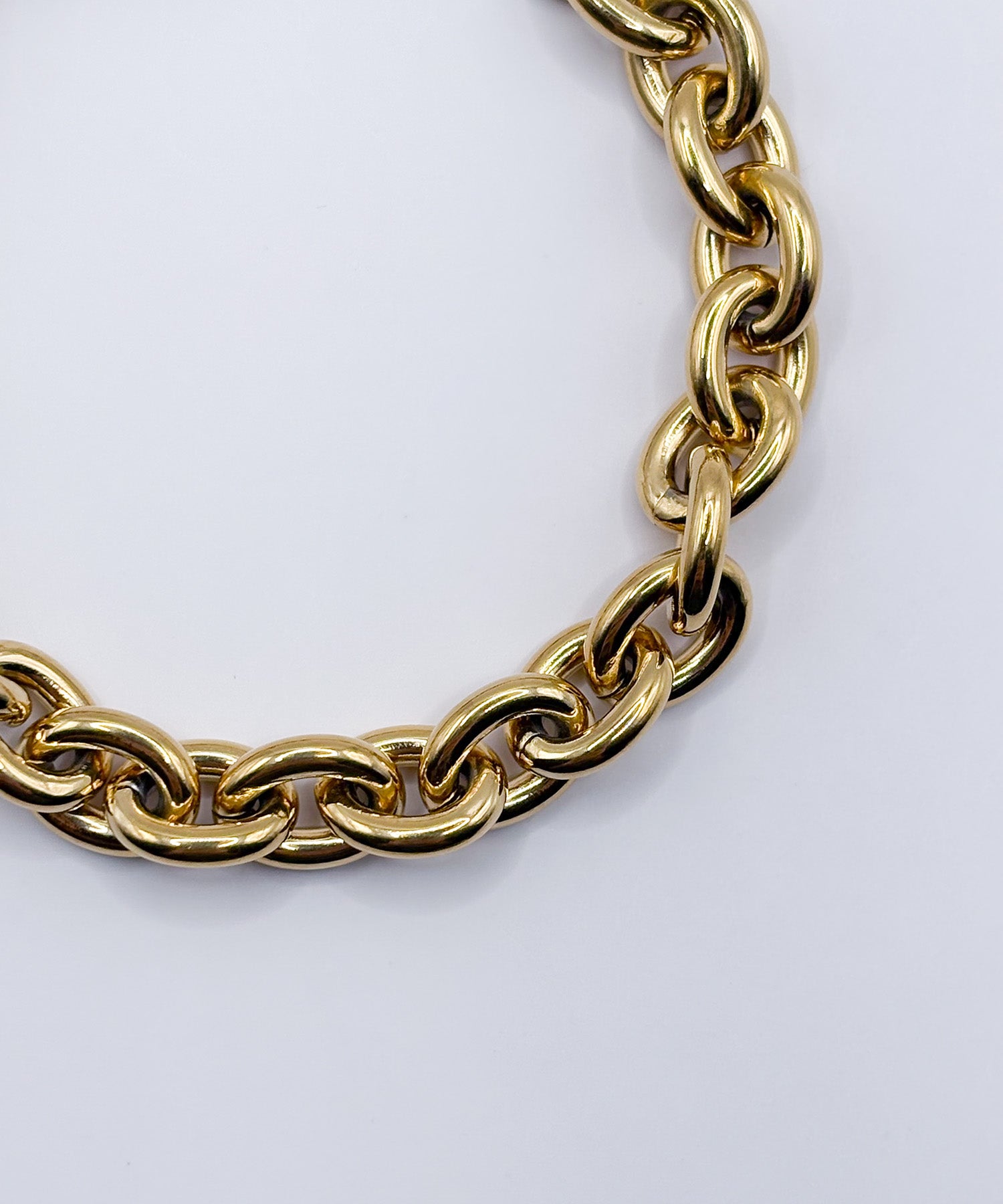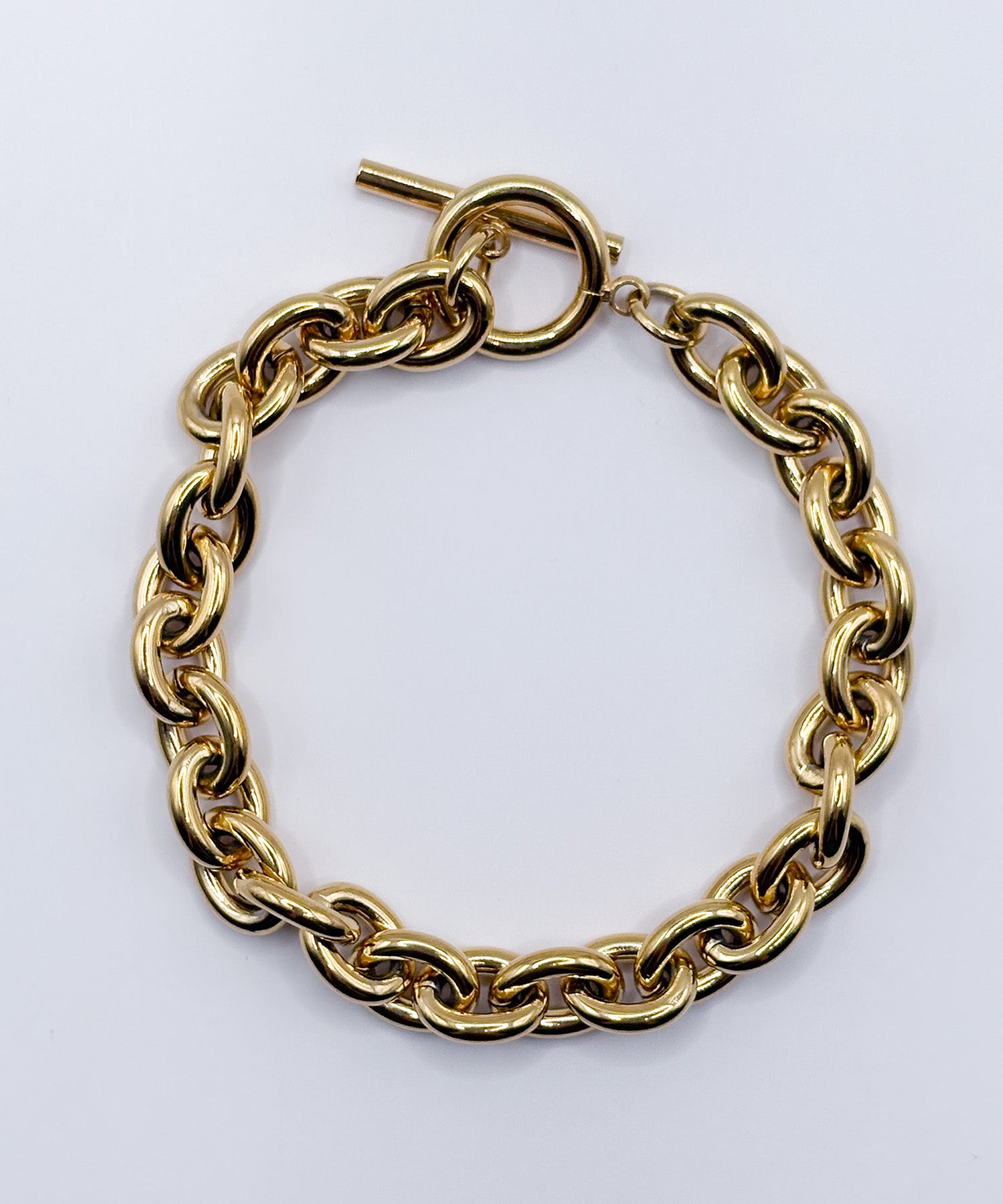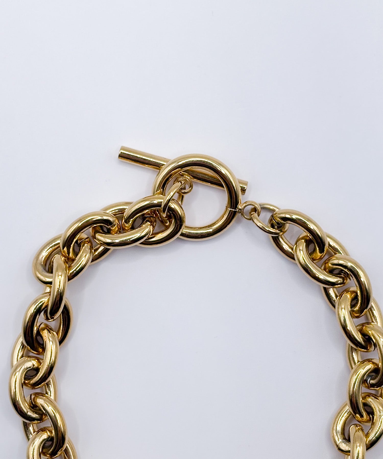 重厚感のあるチェーンがユニセックスでも使えるブレスレット。シンプルコーデに映え存在感抜群です。