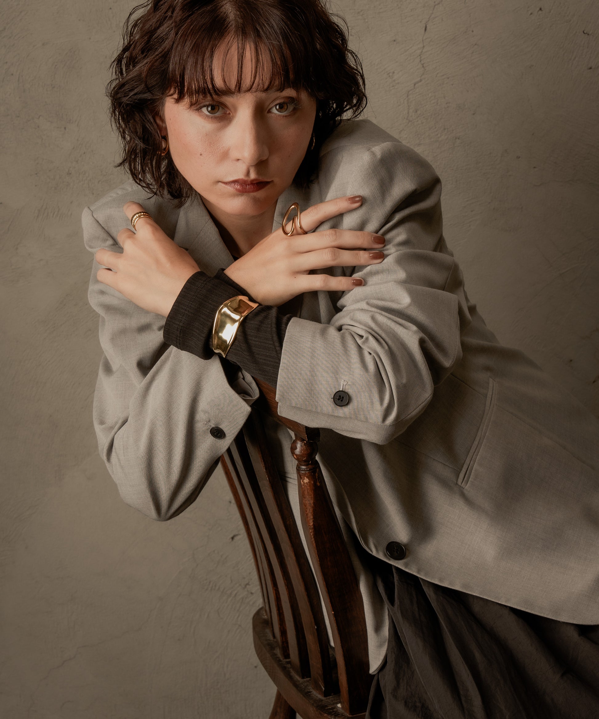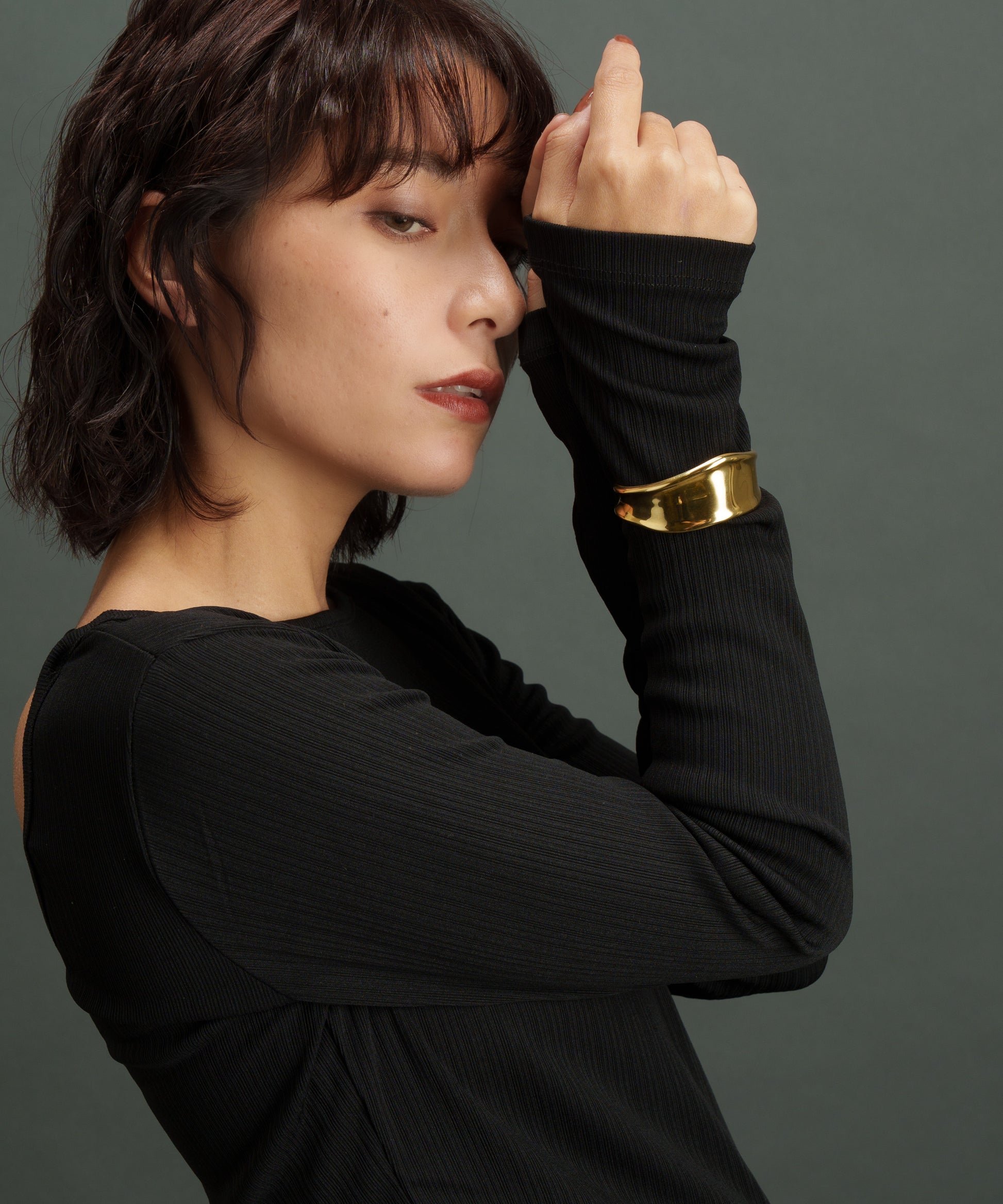 なだらかなカーブが手首にフィットするバングルは、しっかりとしたボリュームでインパクトを出したい時におすすめ。