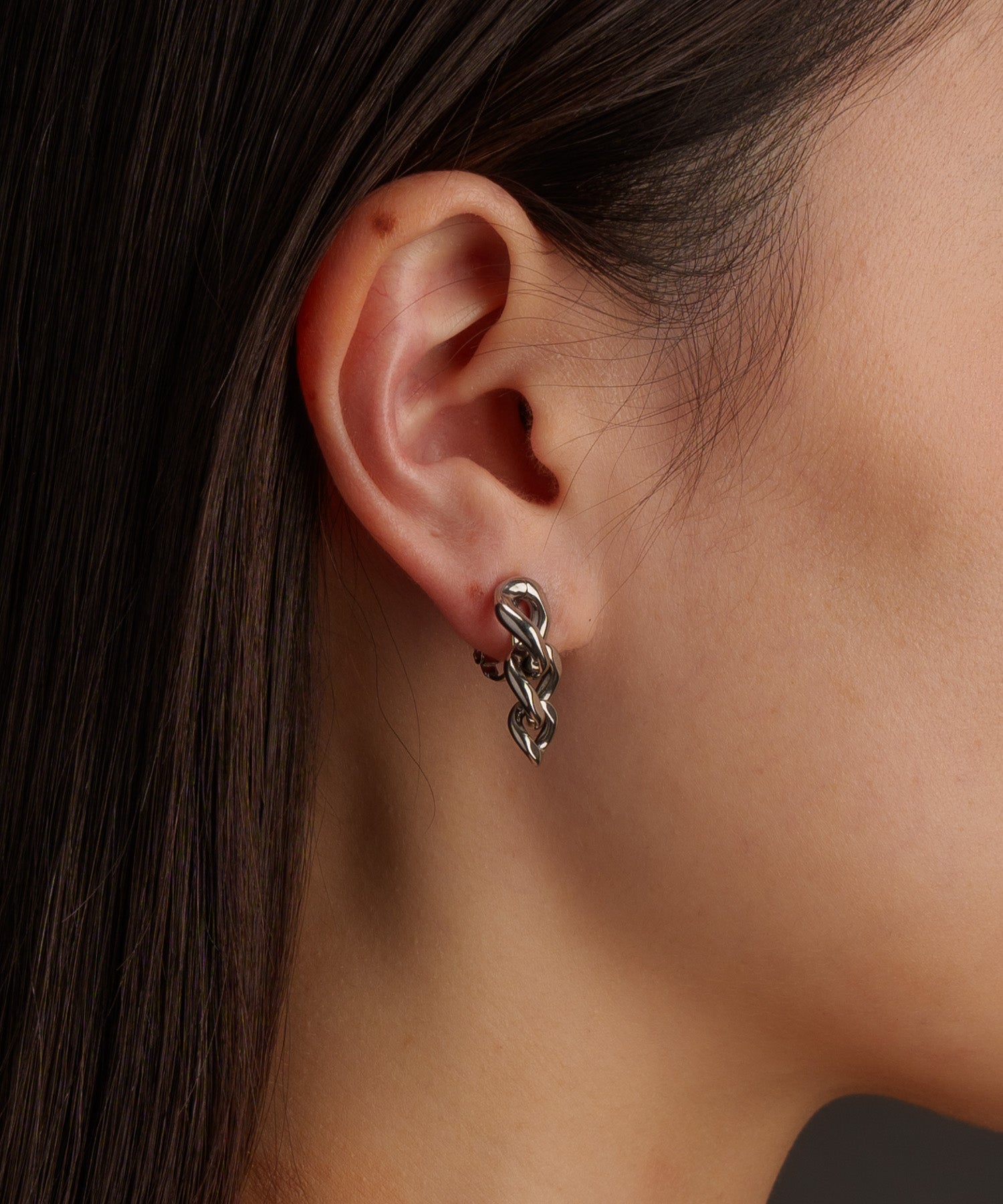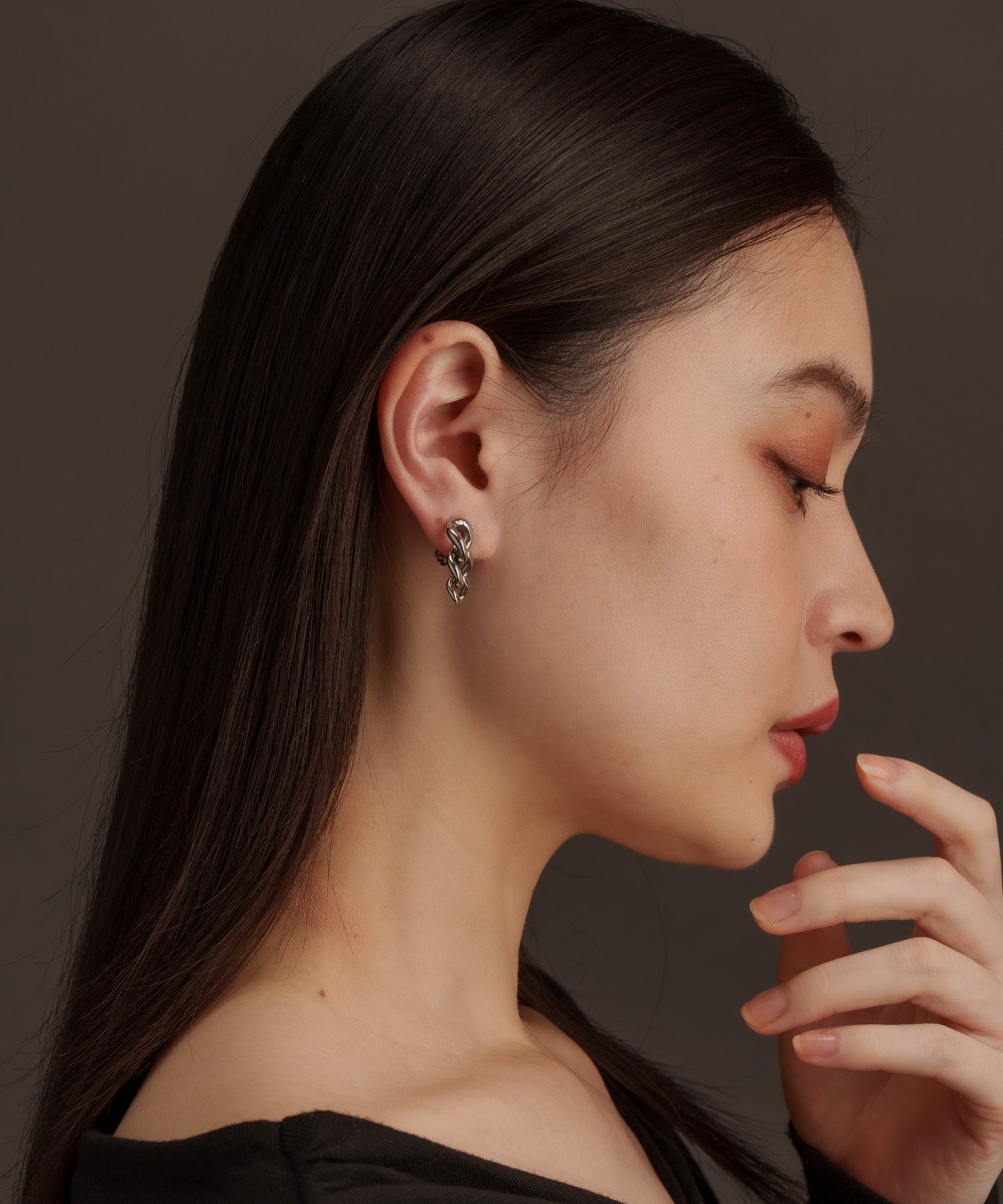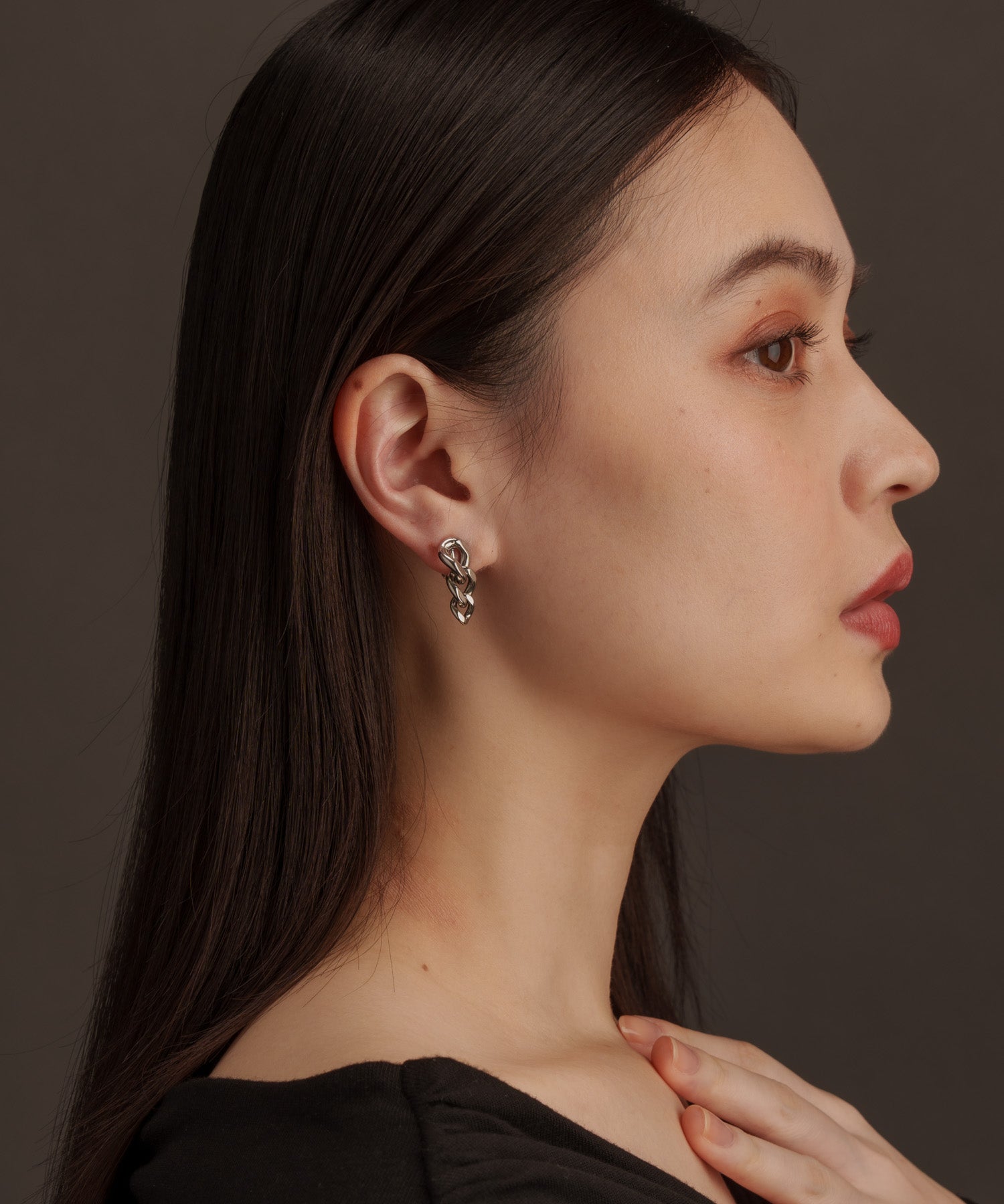 少しだけ揺れ動くチェーンが印象的なイヤリング。先に向けてサイズが小さくなりすっきりとしたデザインです。
