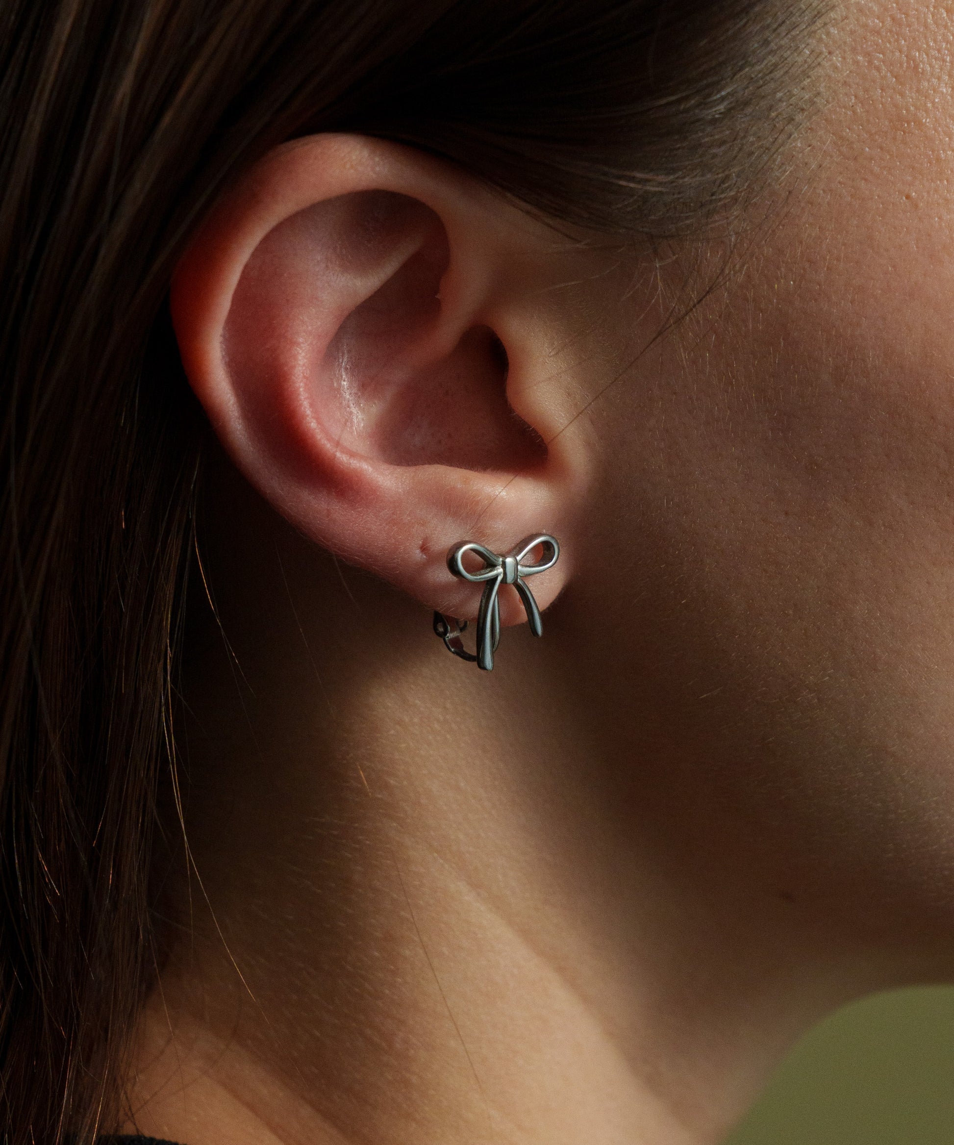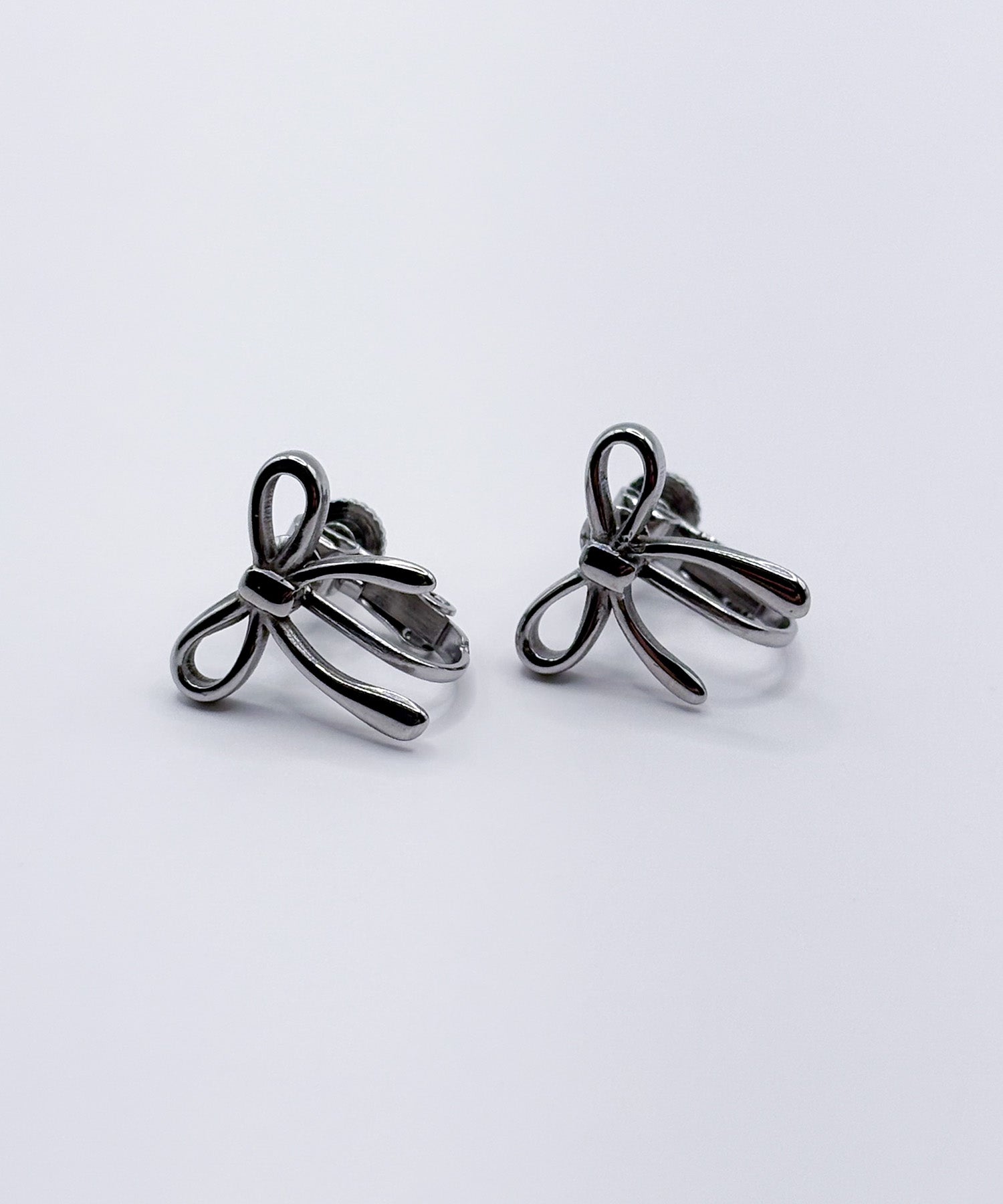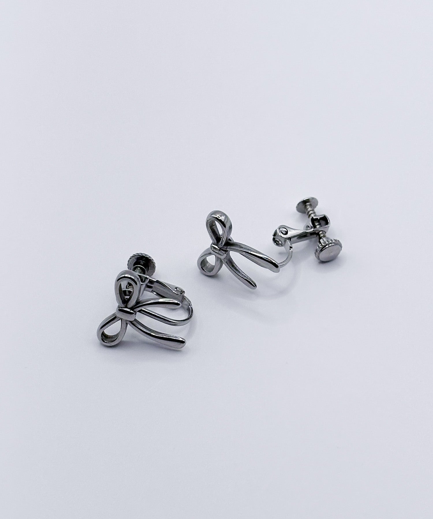 小ぶりなリボンが可愛らしいイヤリング。耳元にフィットするサイズ感でさり気ない遊びを。