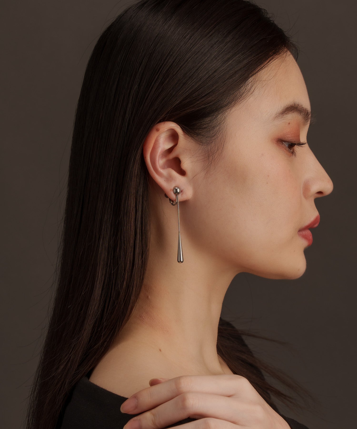 滑らかなスネークチェーンにしずく型チャームが揺れるデザイン。動くたび光りを反射しエレガントな印象に。