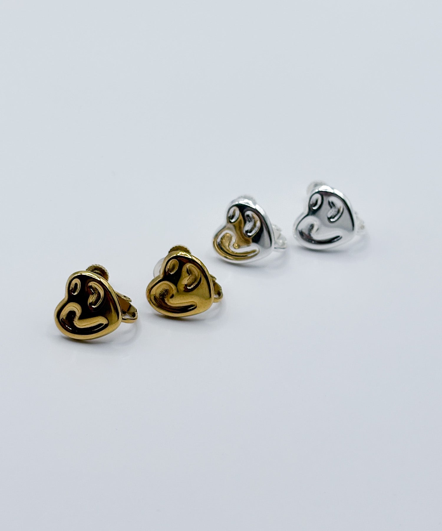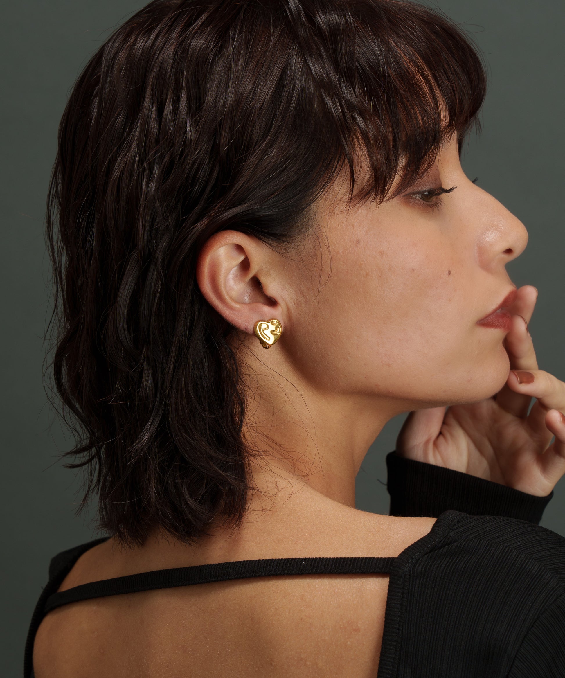 小ぶりなハートの表面に凹凸を施し、光を受けて立体感のあるデザインに仕上げたイヤリングです。