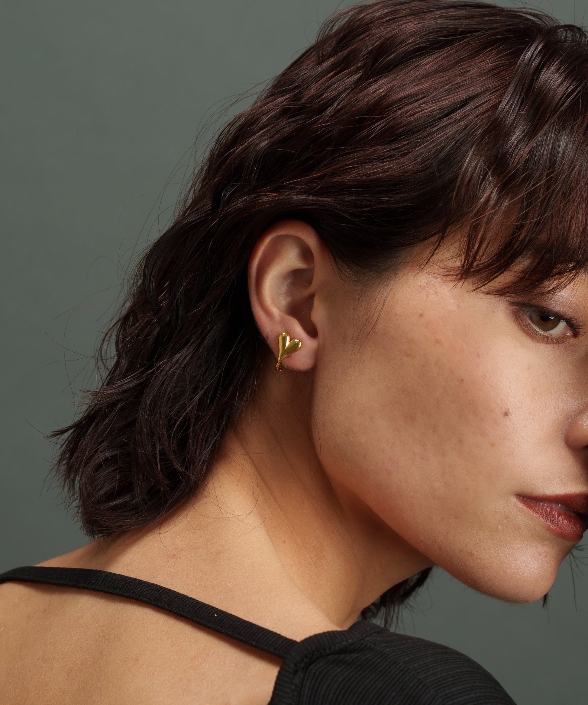 シャープなハートの形に厚みを持たせ小ぶりながら、存在感のあるイヤリングに。