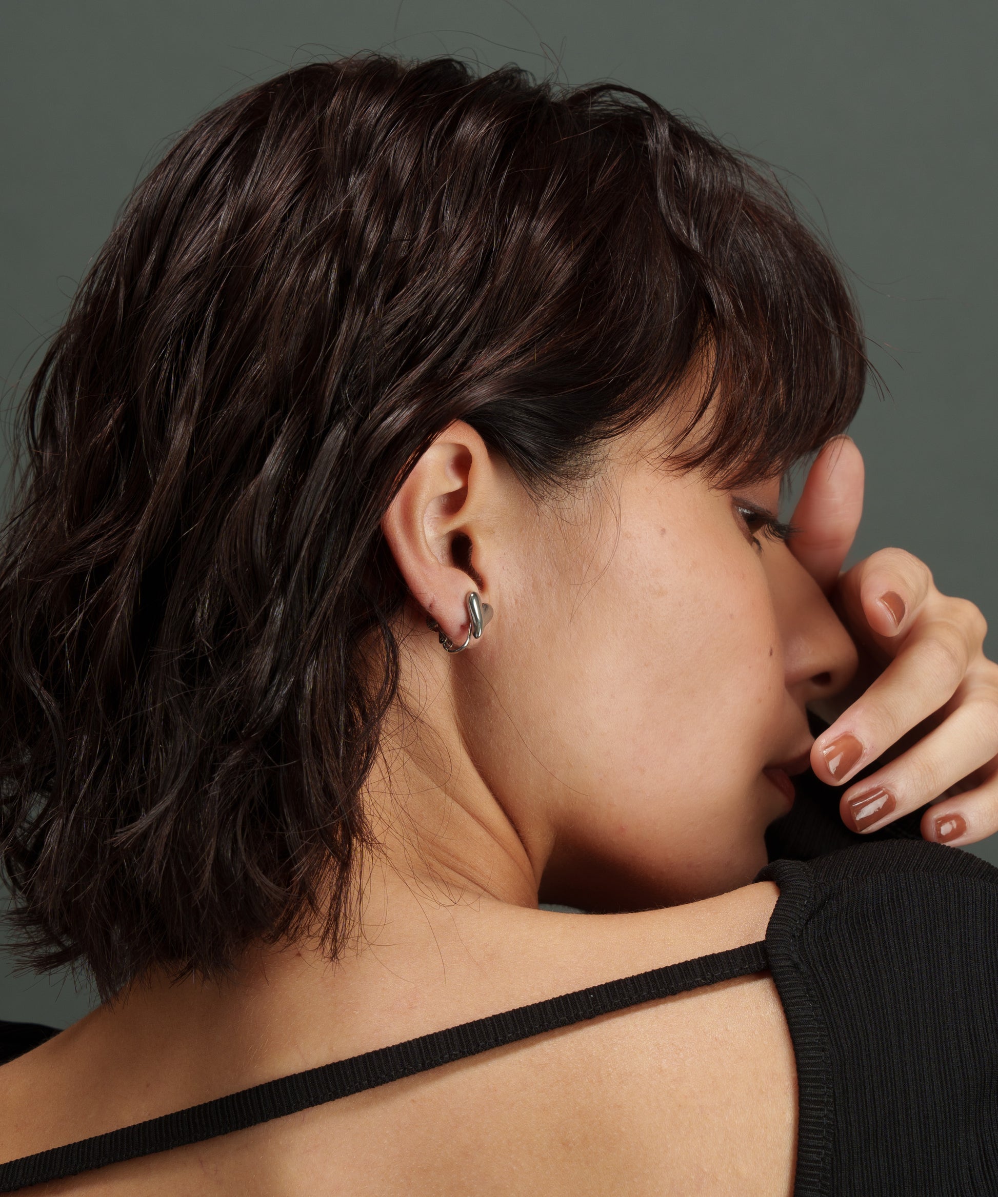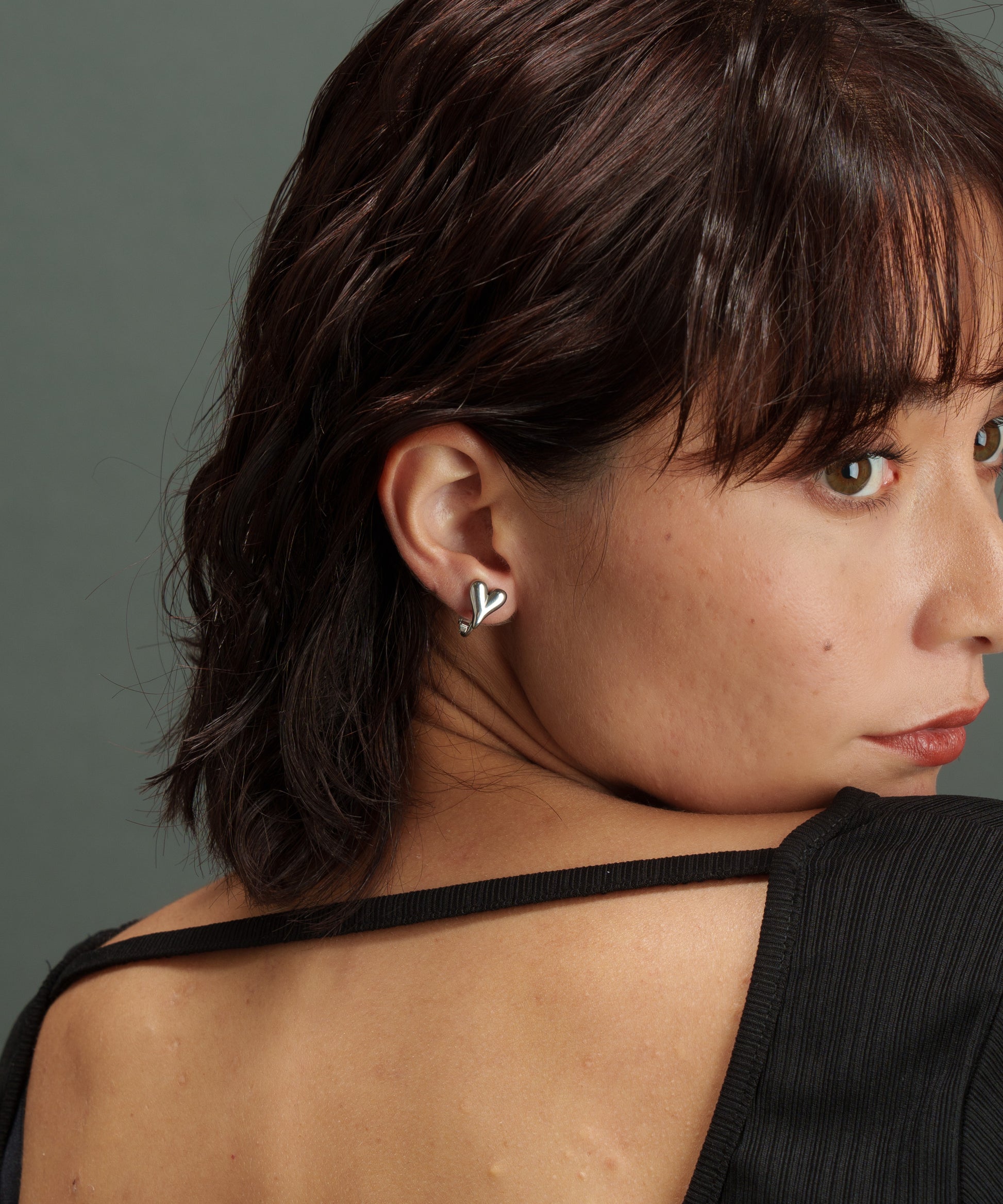 シャープなハートの形に厚みを持たせ小ぶりながら、存在感のあるイヤリングに。