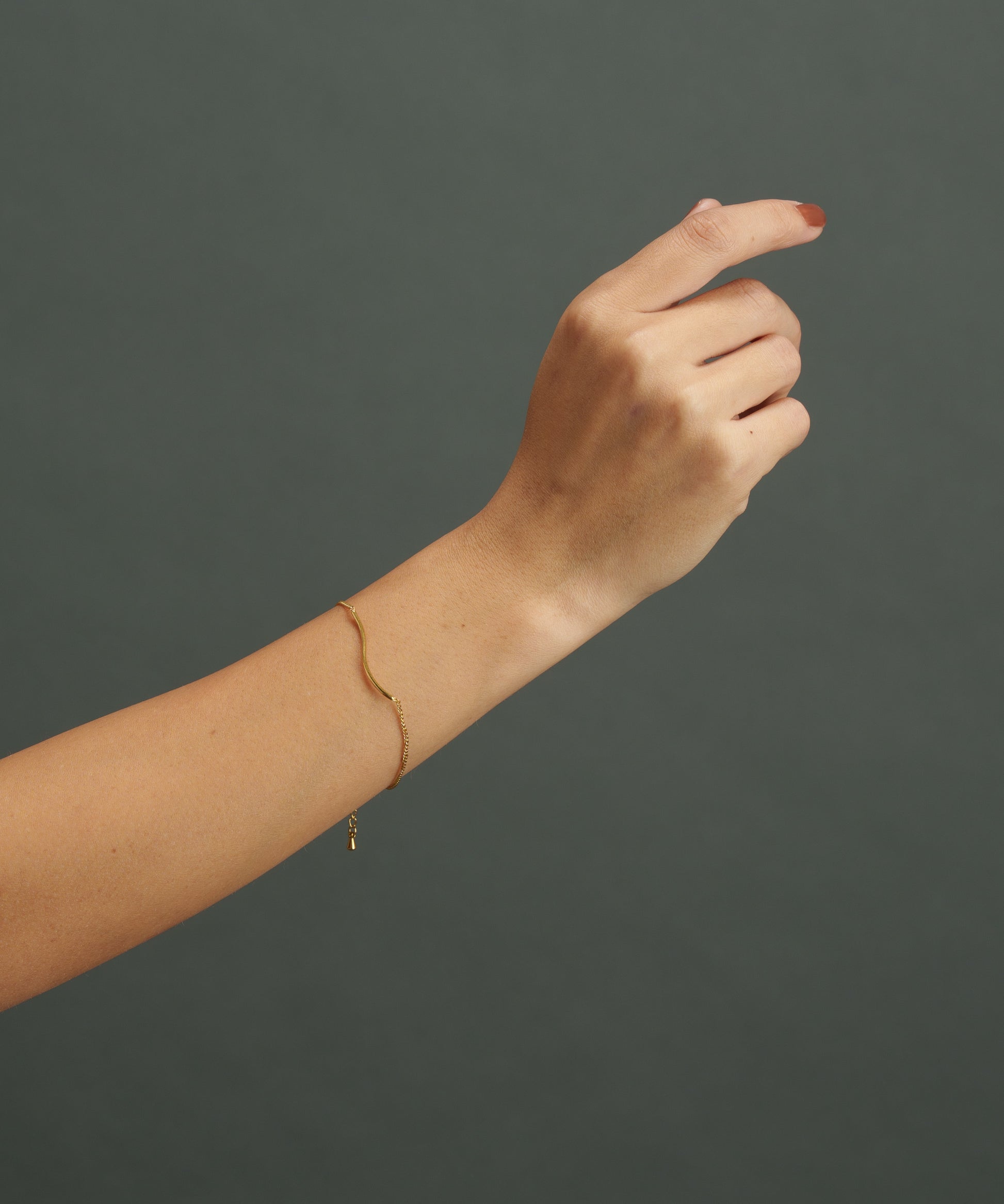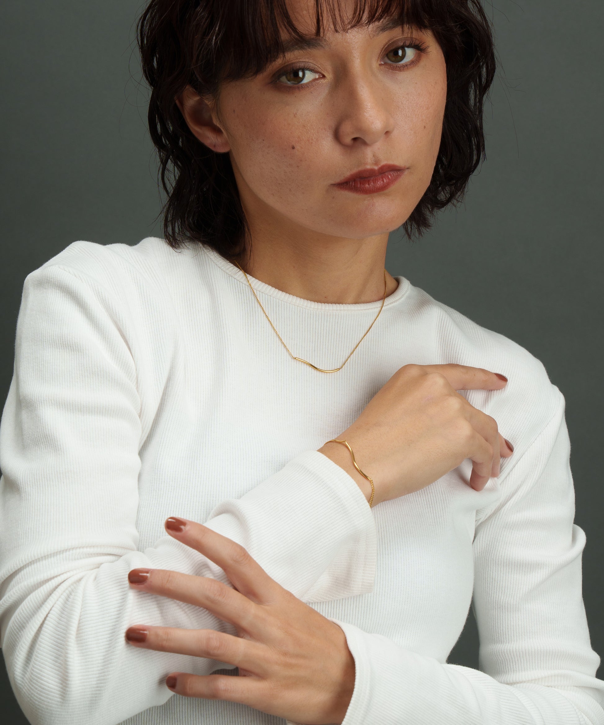 細めのチェーンに、緩やかにカーブしたバーパーツ付き。ミニマルで洗練されたブレスレットです。1AN1179のネックレスと同デザインです。