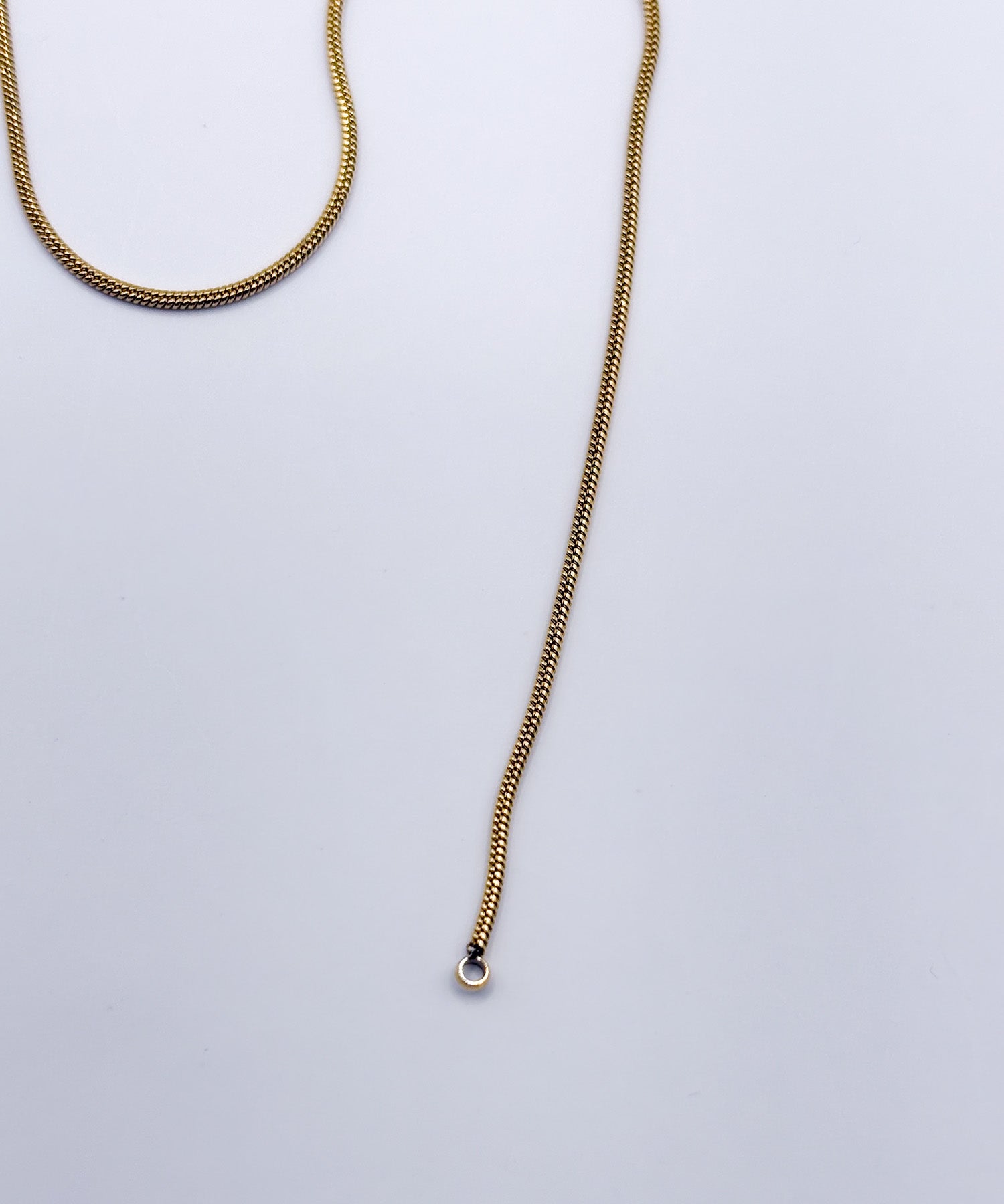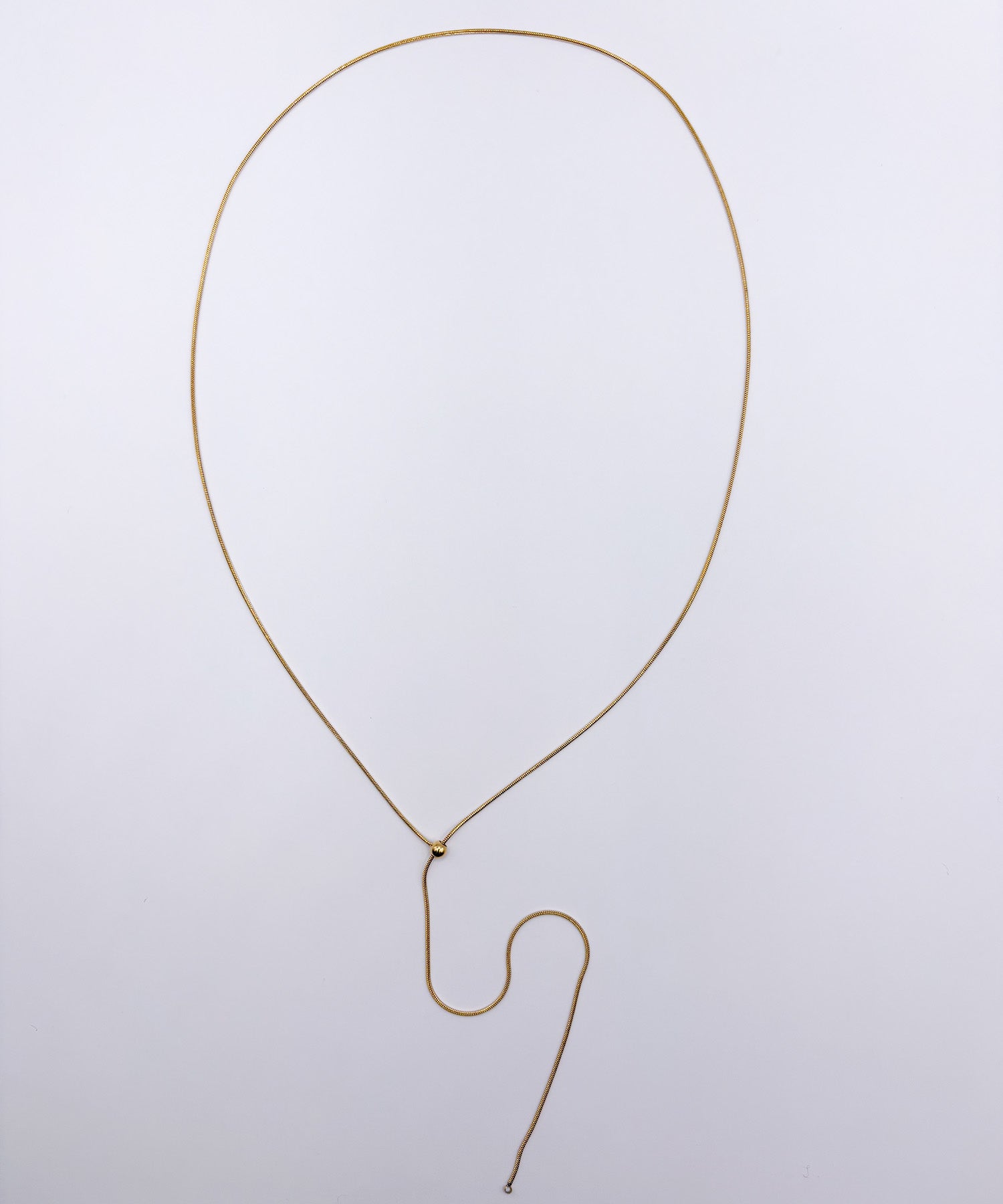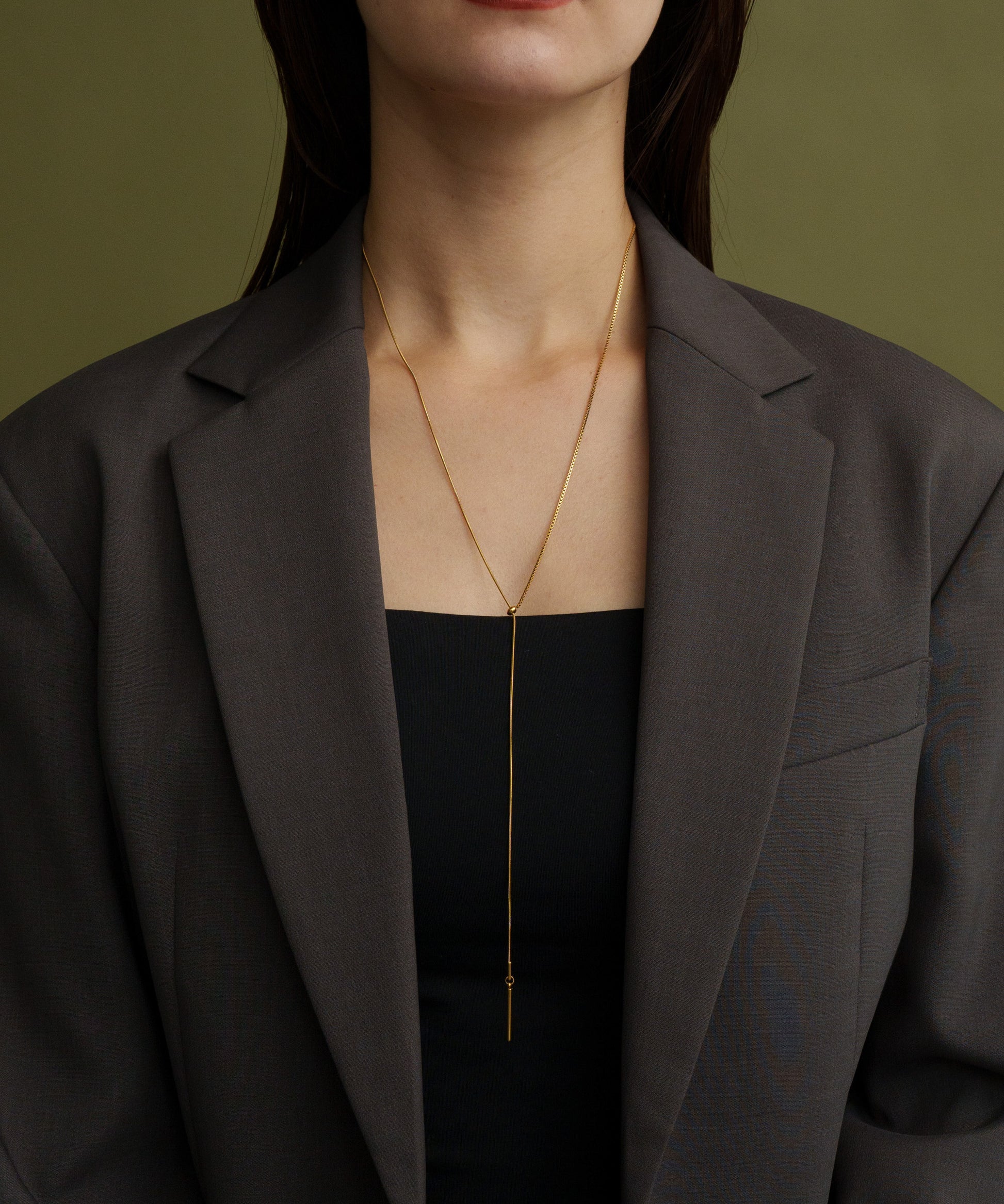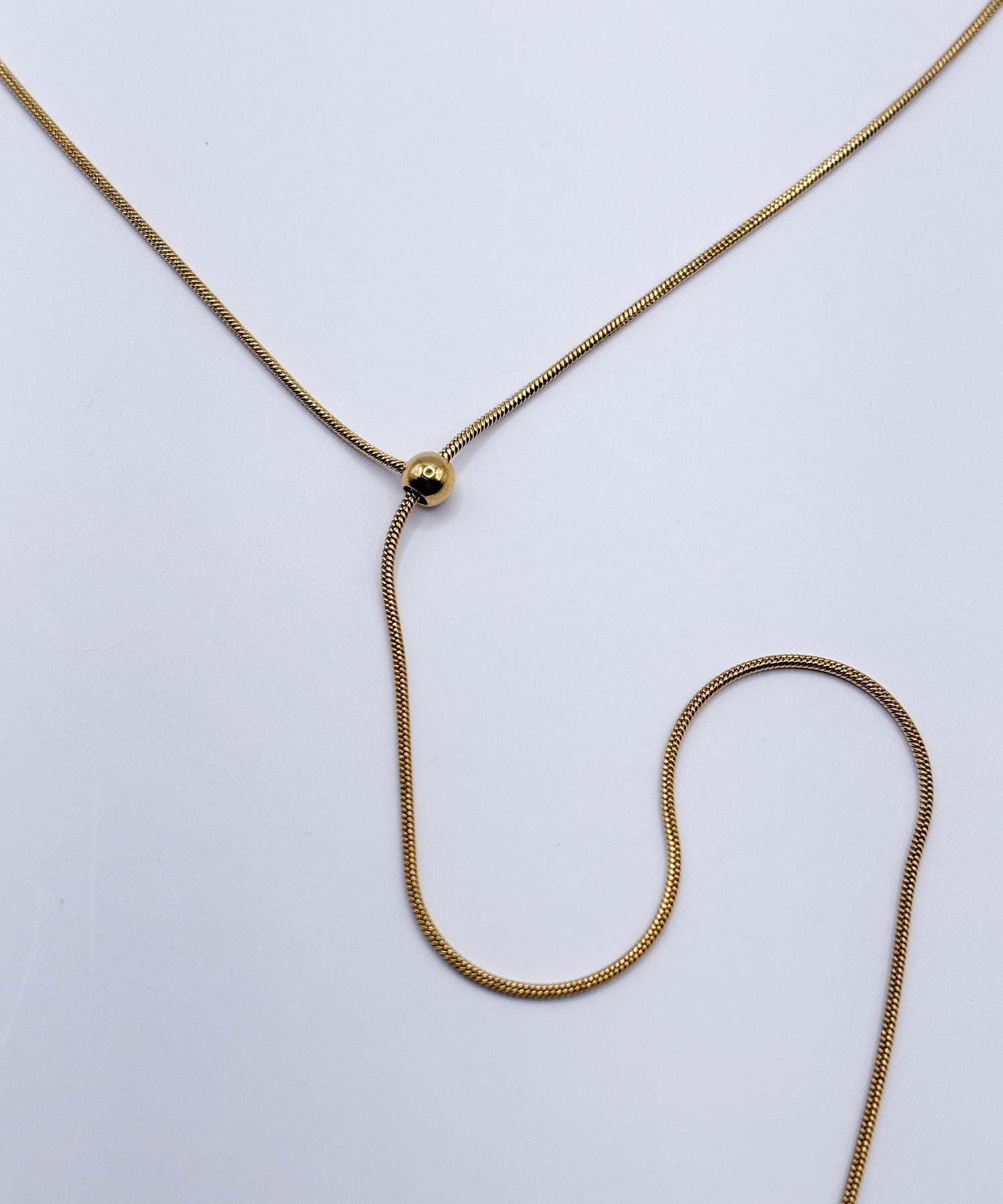 シンプルなスネークチェーンのY字ネックレス。中央のボールでスライドし洋服に合わせた長さ調節が可能。縦のラインを強調しシャープにみせてくれます。。