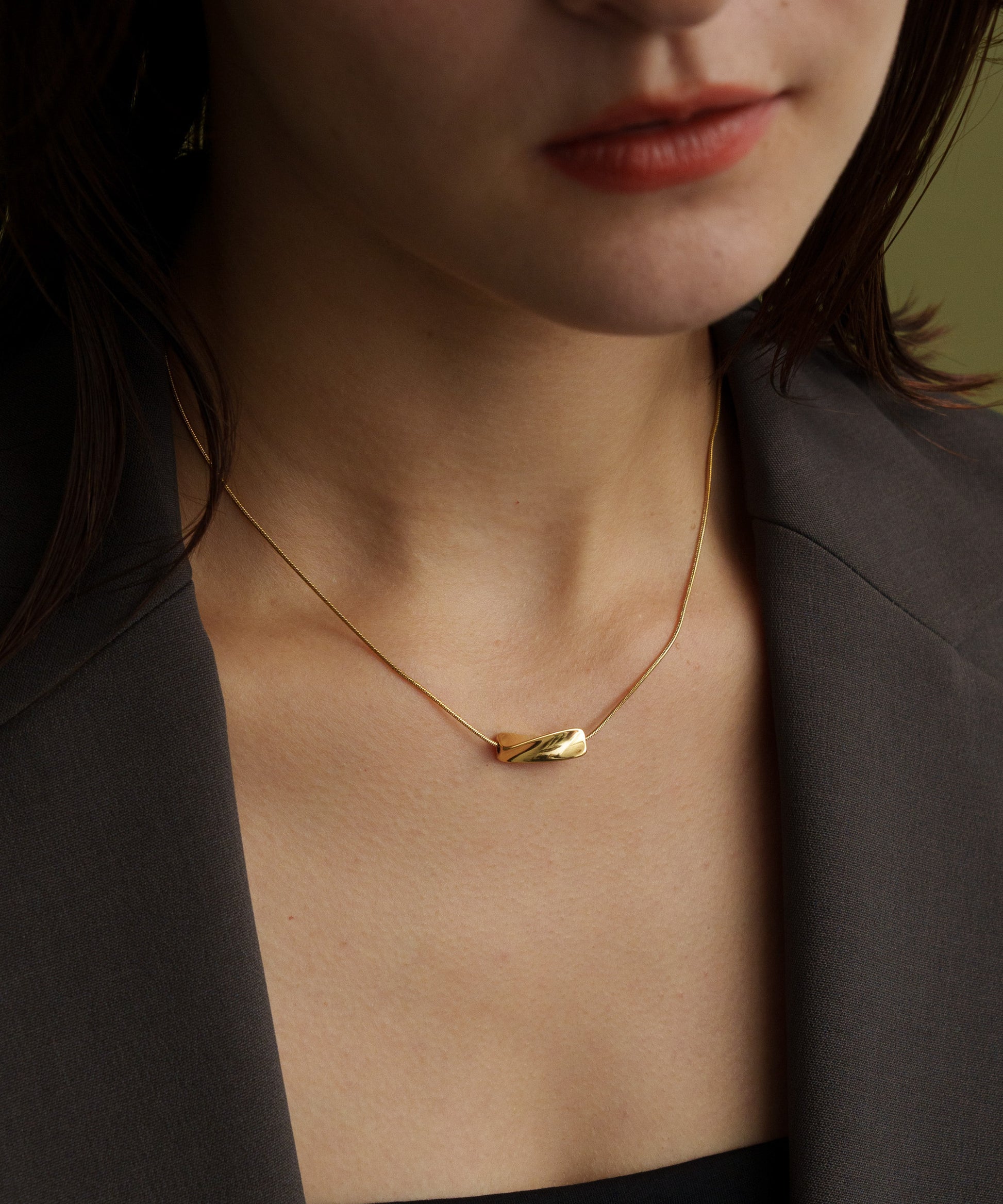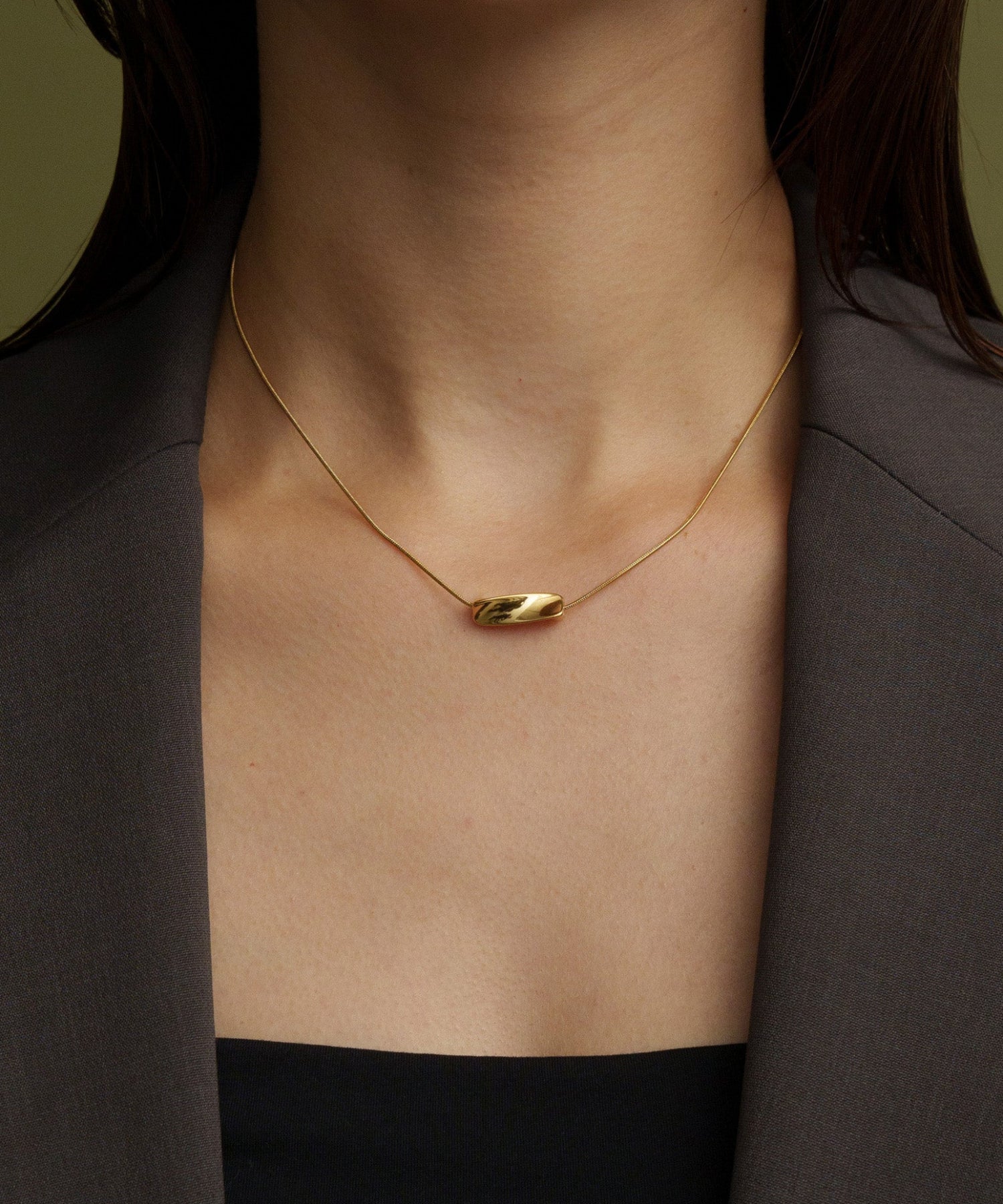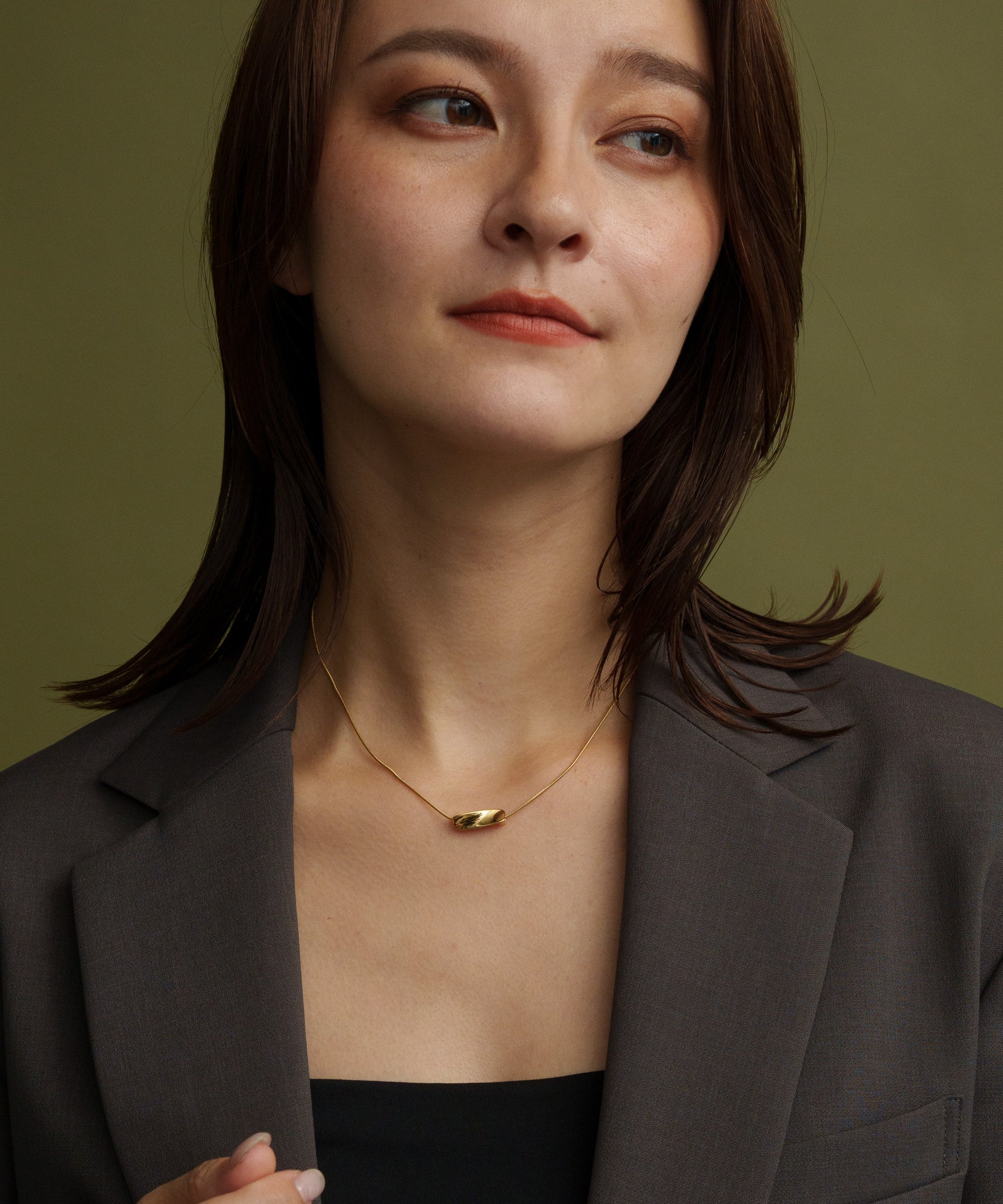チョコやホイップを思わせる滑らかなパーツをトップに配したアクセントネックレス。シンプルながらも洗練されたデザインです。