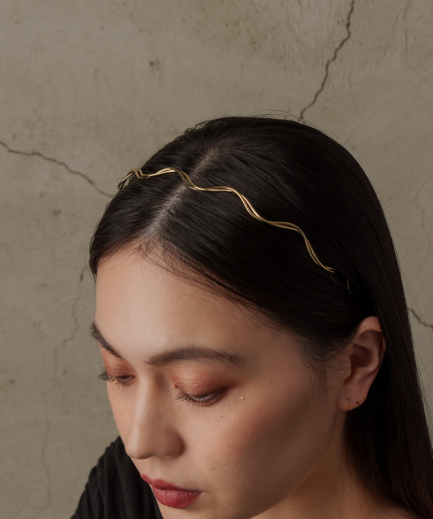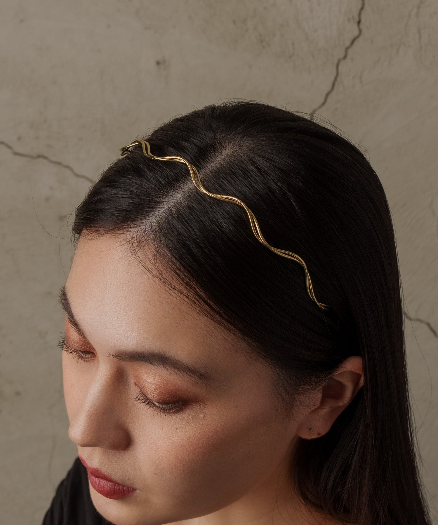細めのウェーブが2本並んだカチューシャ。2本とも固定されているので形が崩れる心配はありません。