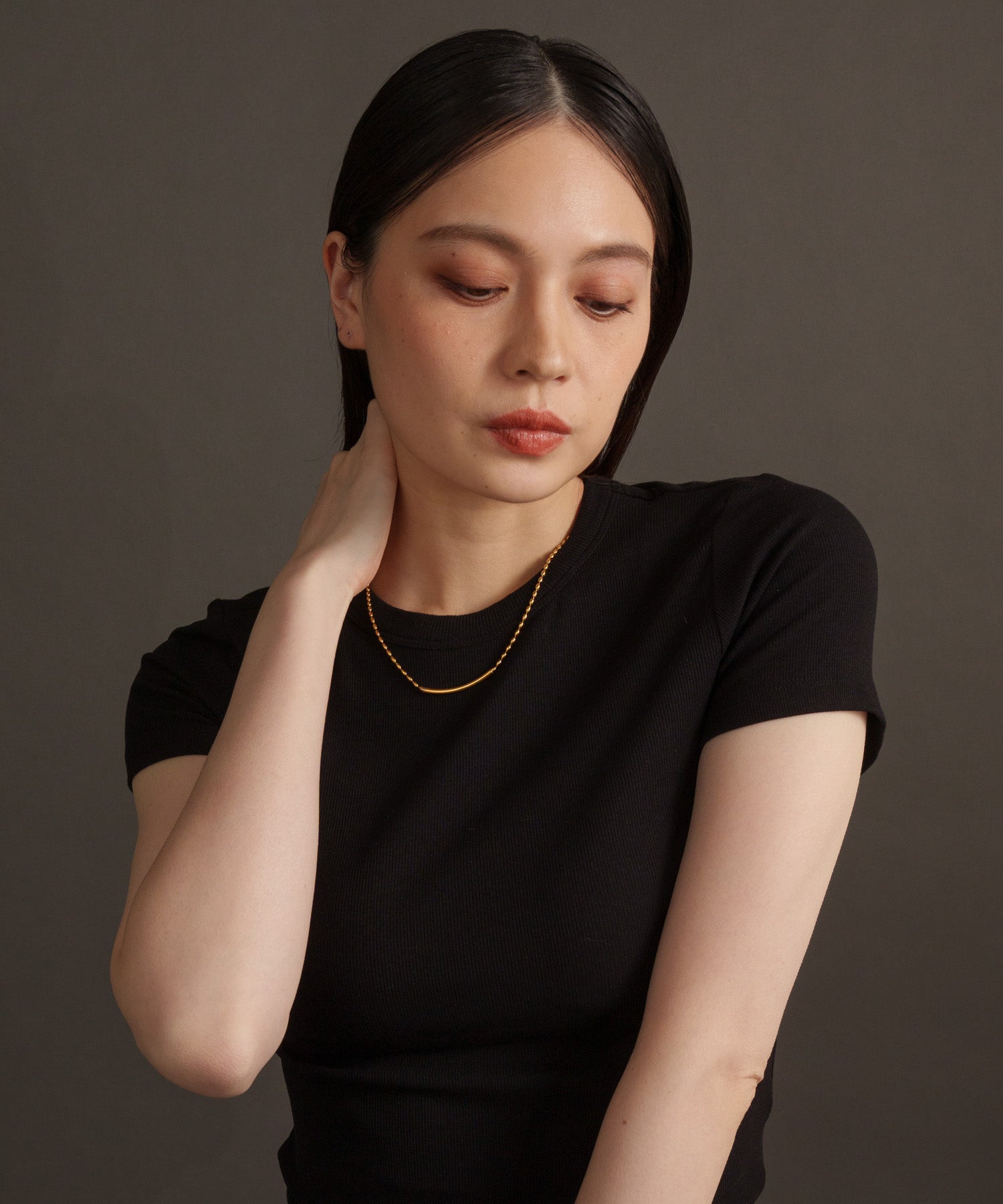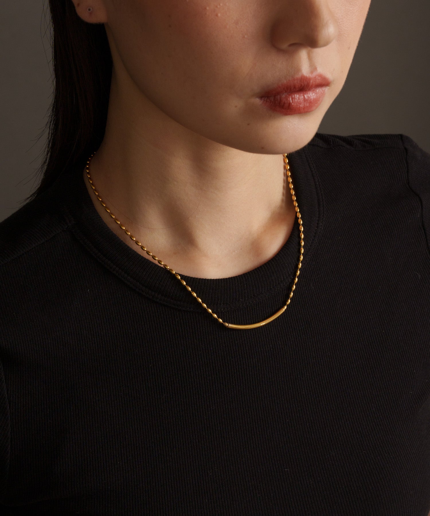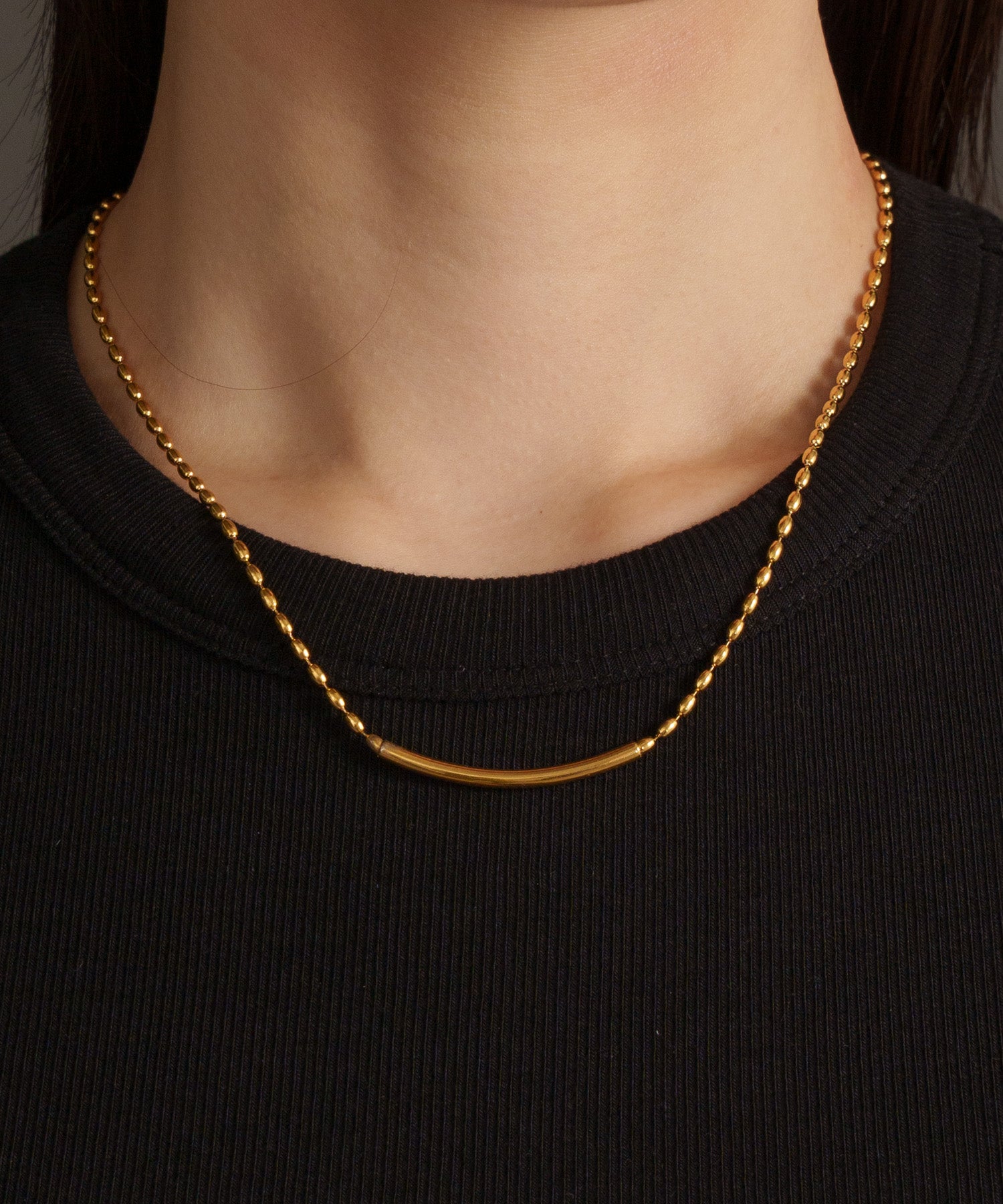 楕円のボールチェーンが特徴ネックレス。チューブ型のトップがアクセントに。