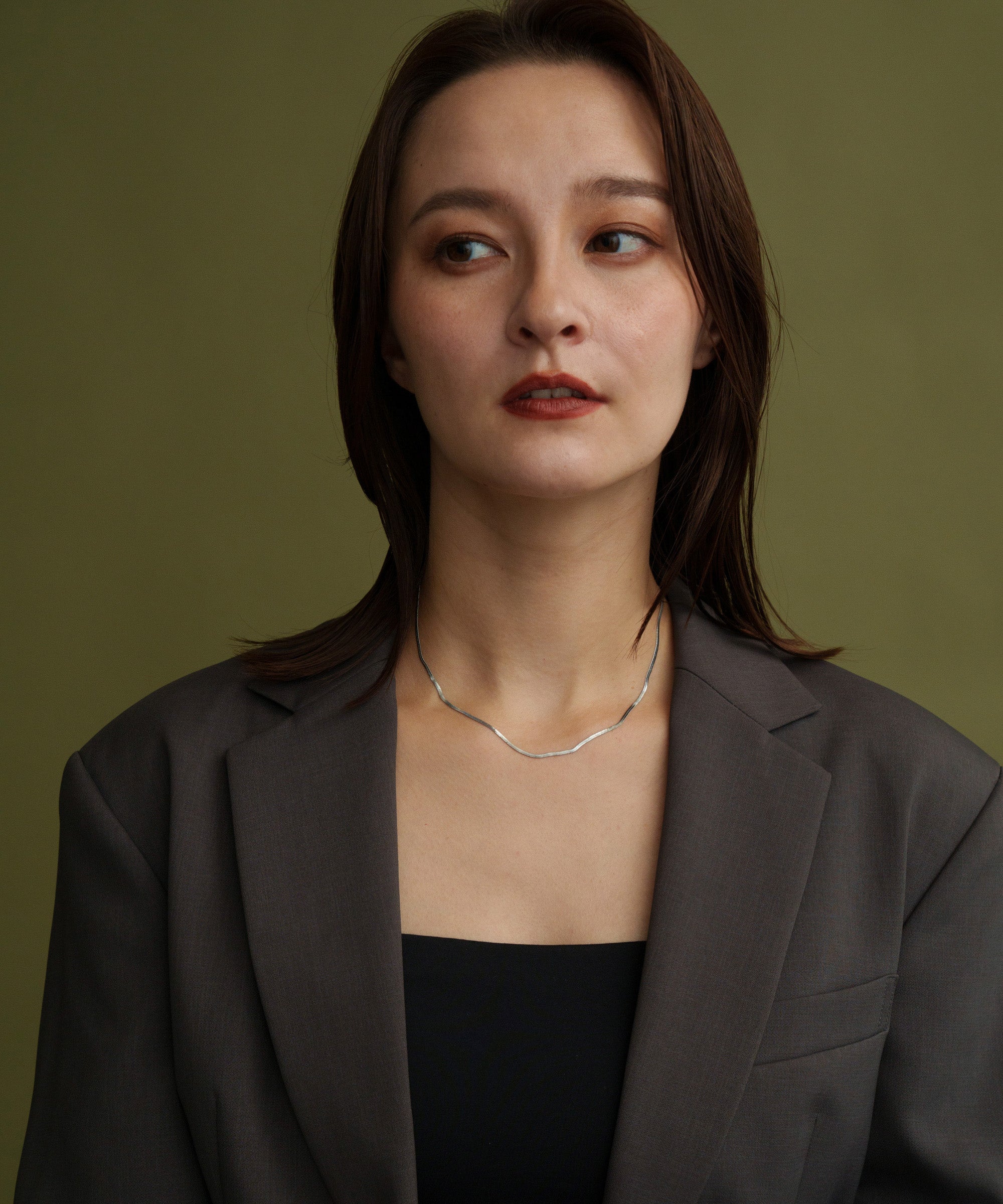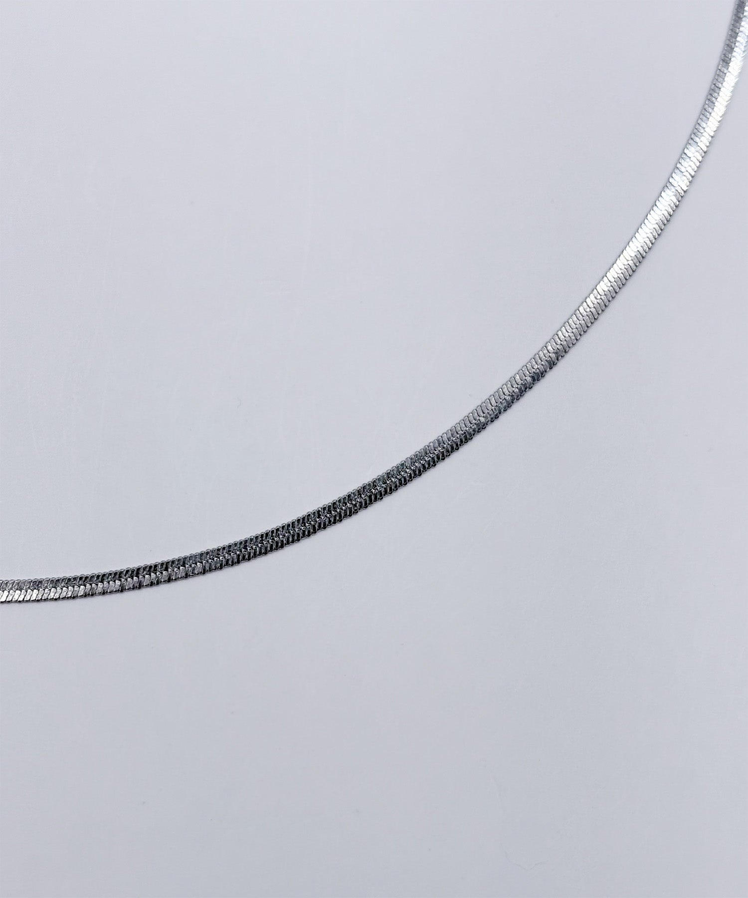 滑らかな肌当たりと、動くとキラキラ輝くのが特徴のスネークチェーンを使ったシンプルなネックレス。重ね付けにも最適です。