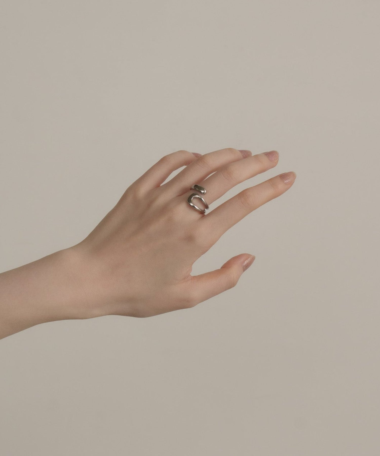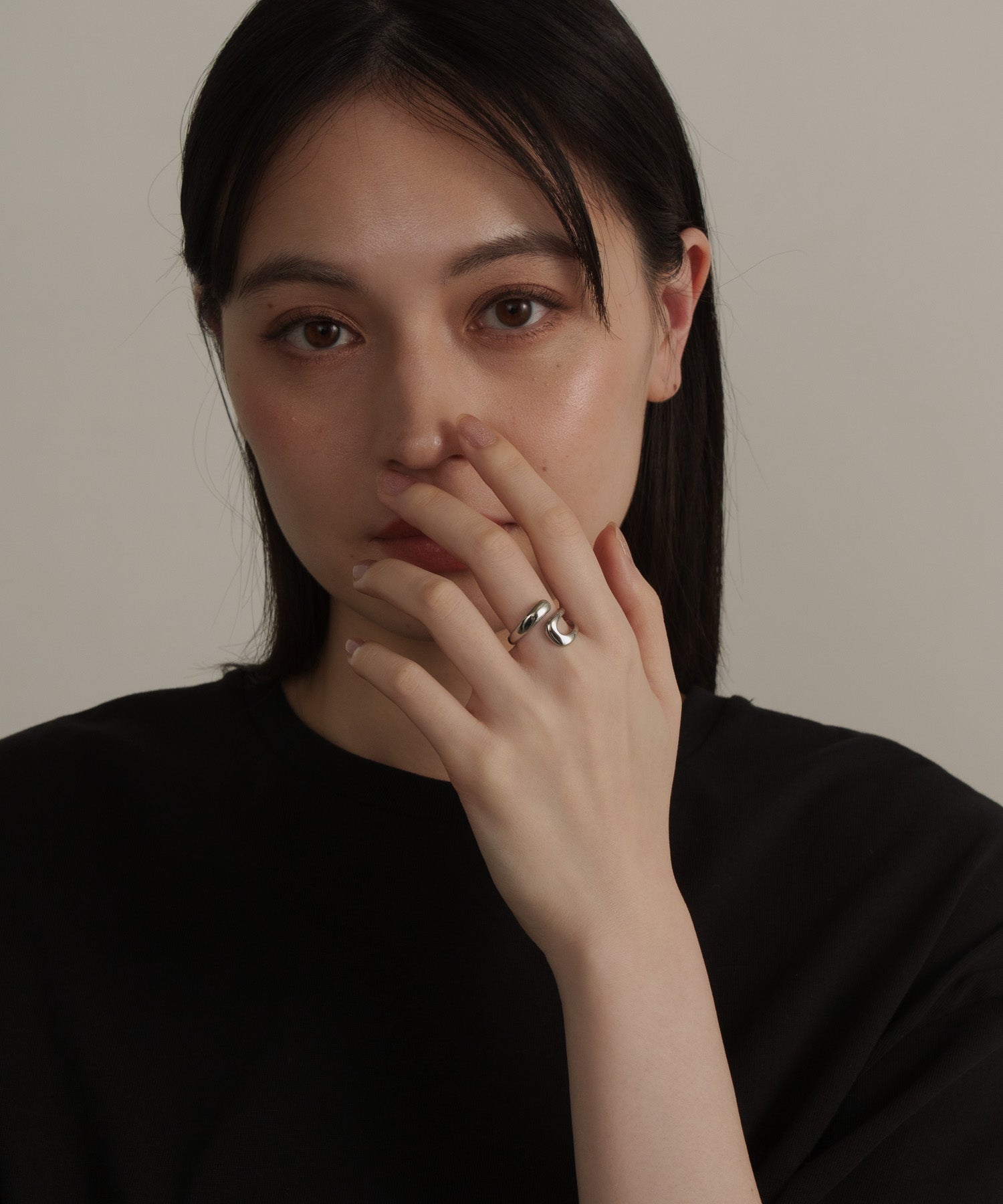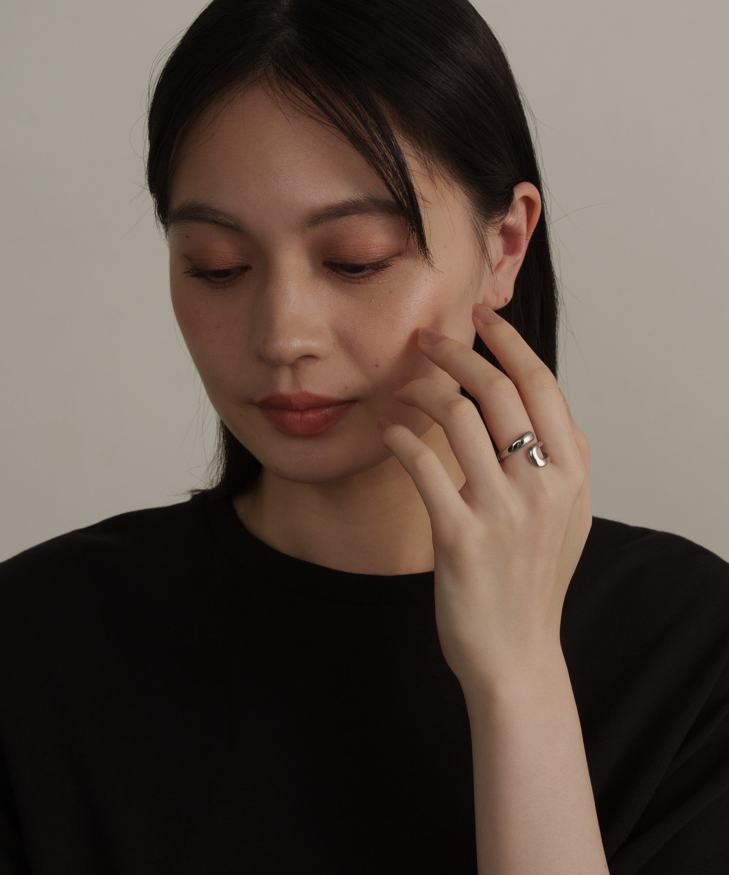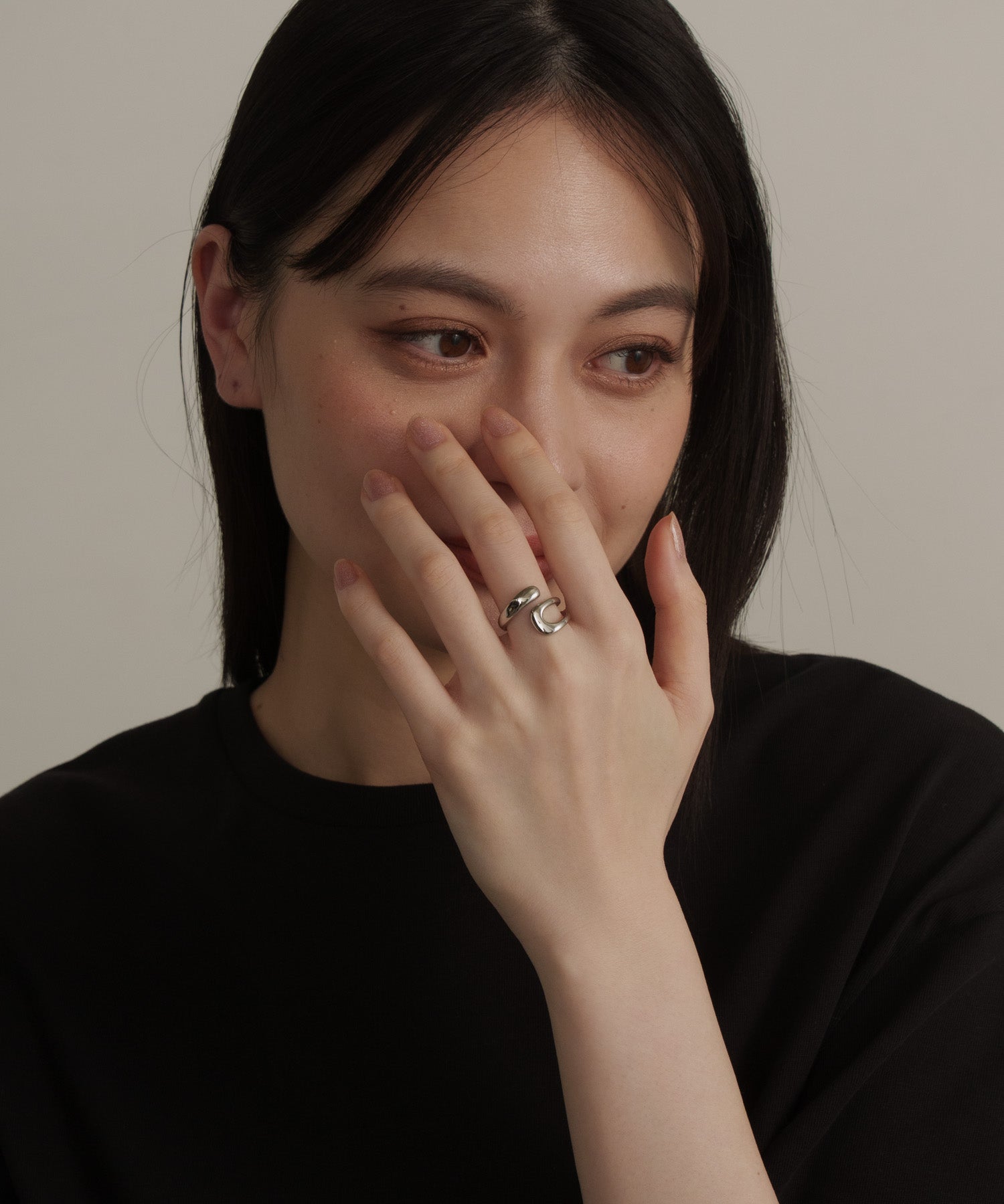 指に巻き付くアシンメトリーデザインが、手元をおしゃれ上級者の雰囲気に仕上げるリングです。