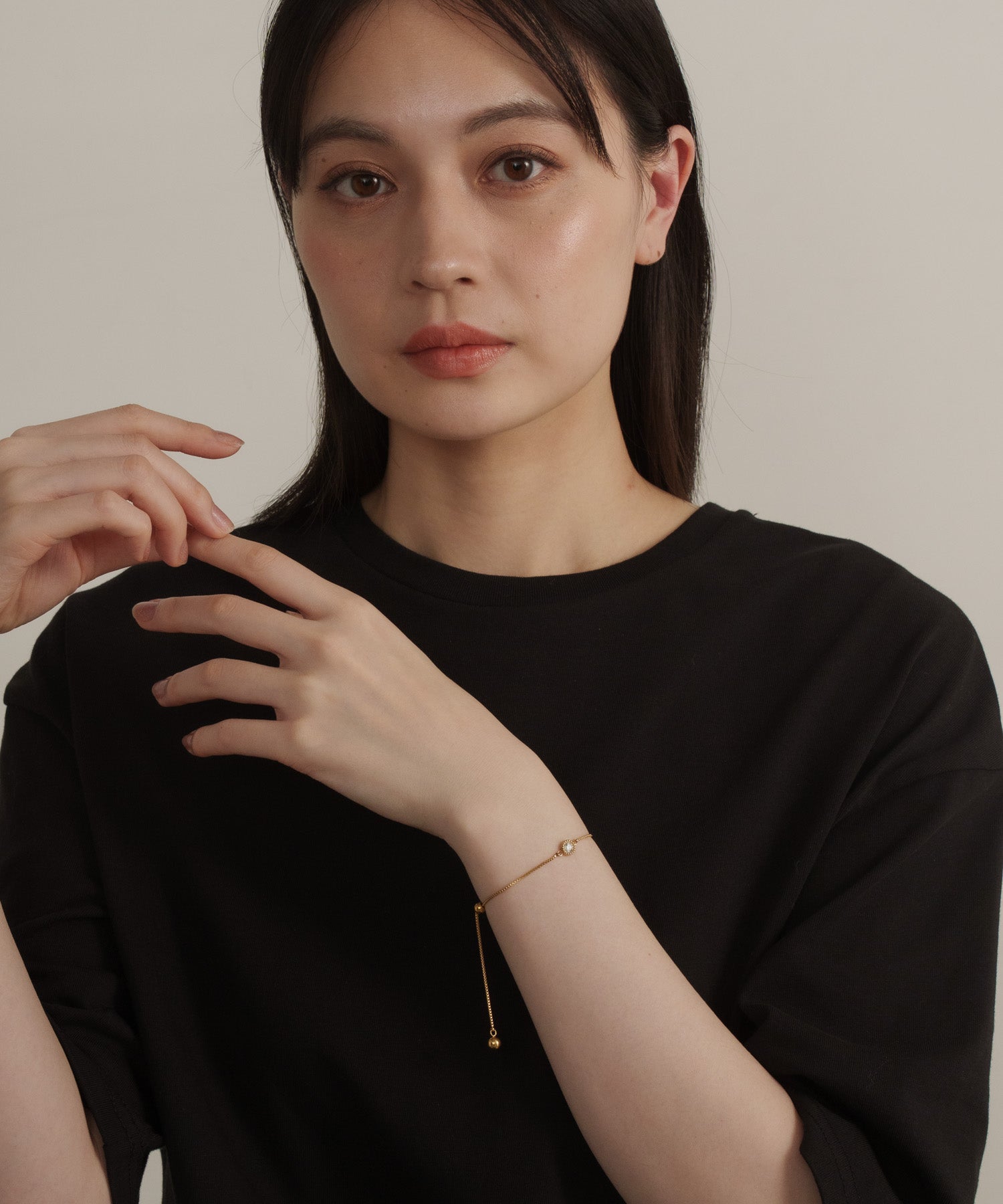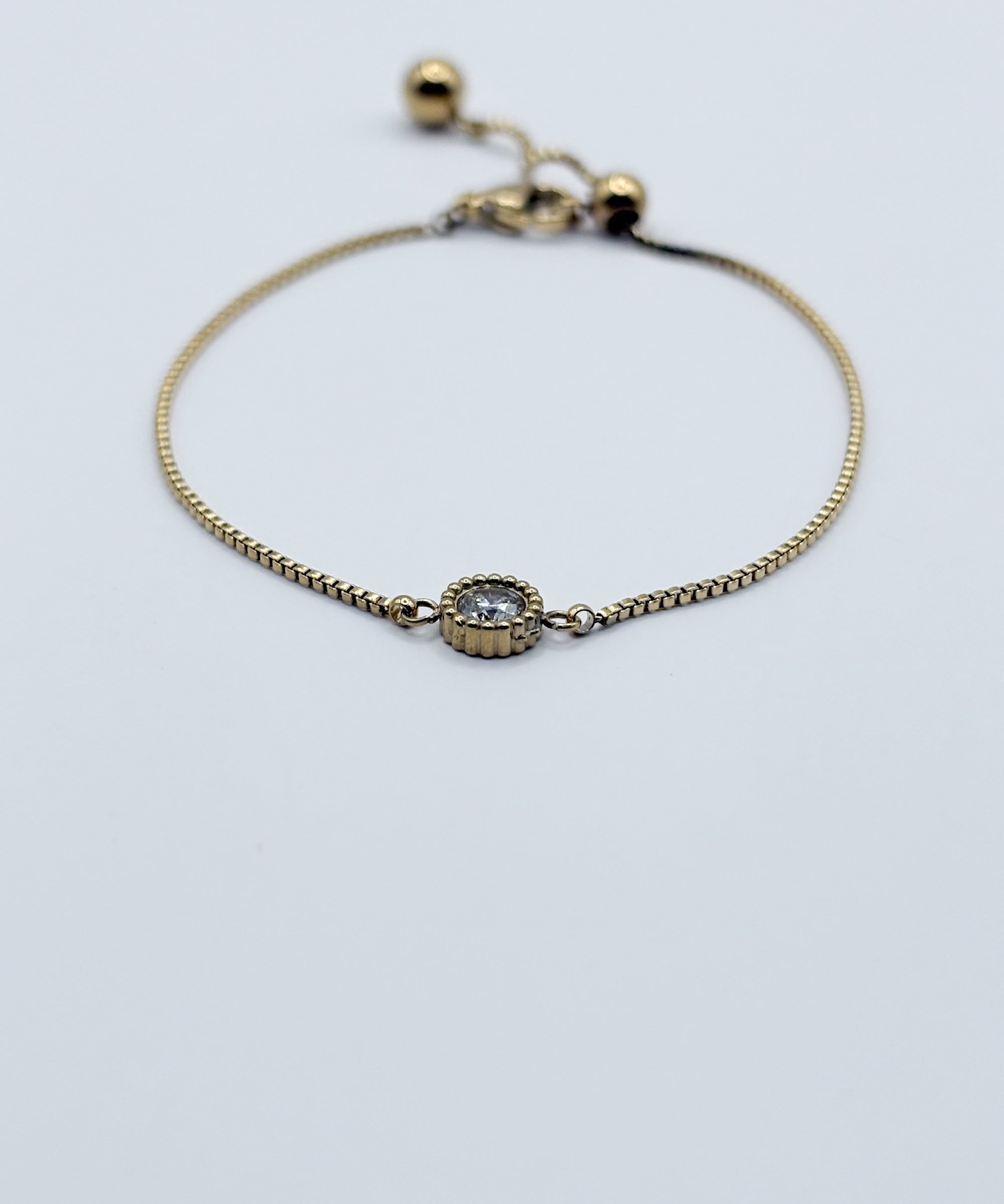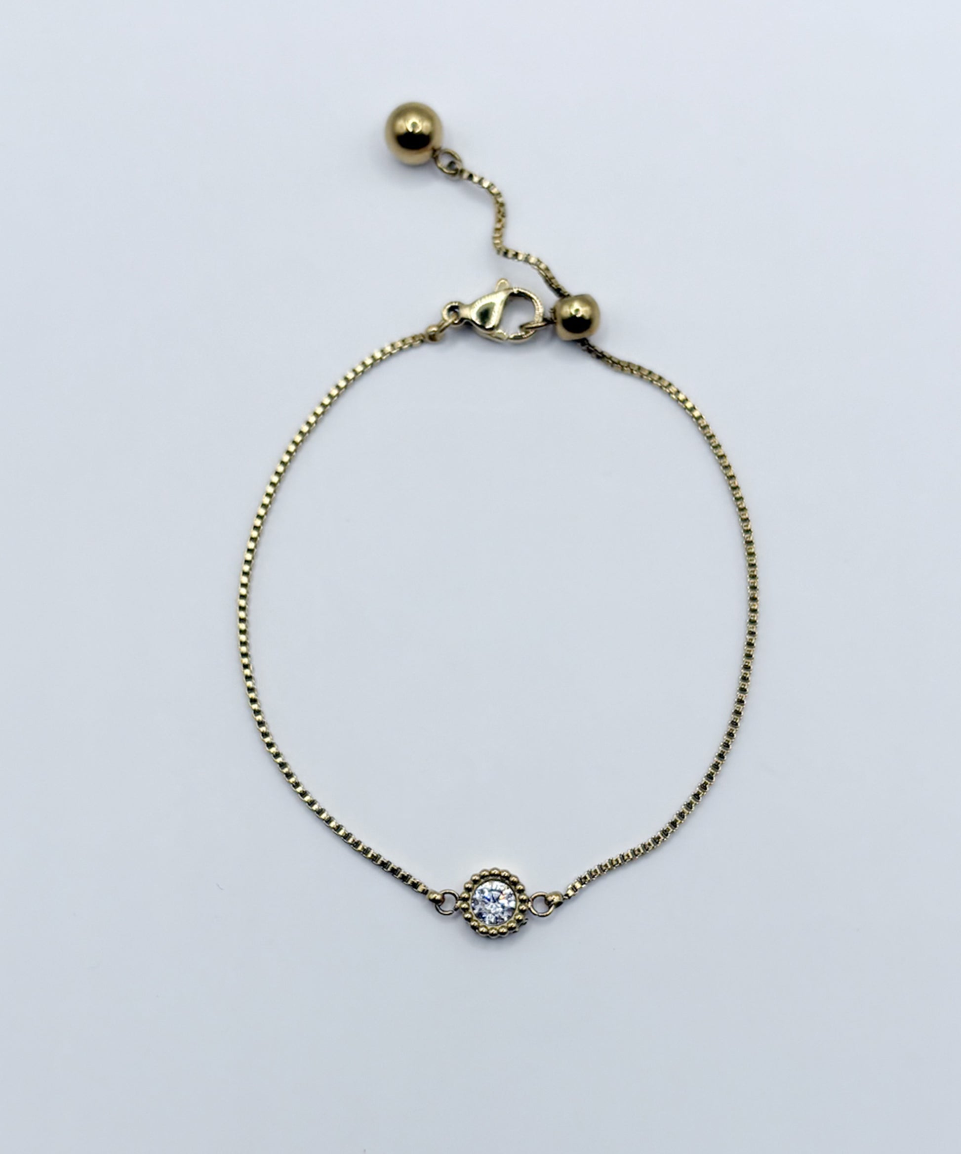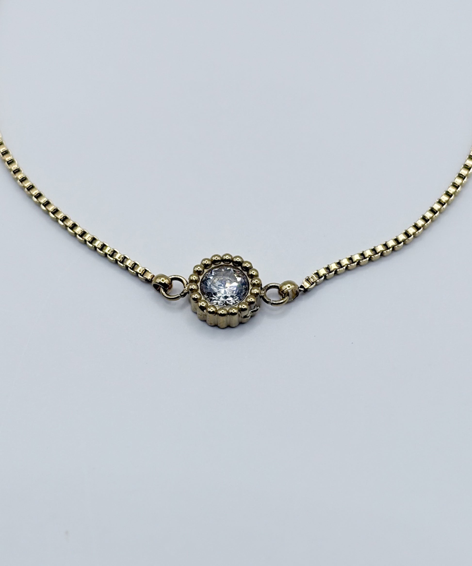 四角形のコマが並ぶベネチアンチェーンを使用。チェーンの隙間が狭く、しなやかな動きとシンプルなデザインが、ワンストーンを際立たせます。また、スライダータイプのチェーンなので、着脱も簡単で使いやすいのがポイントです。