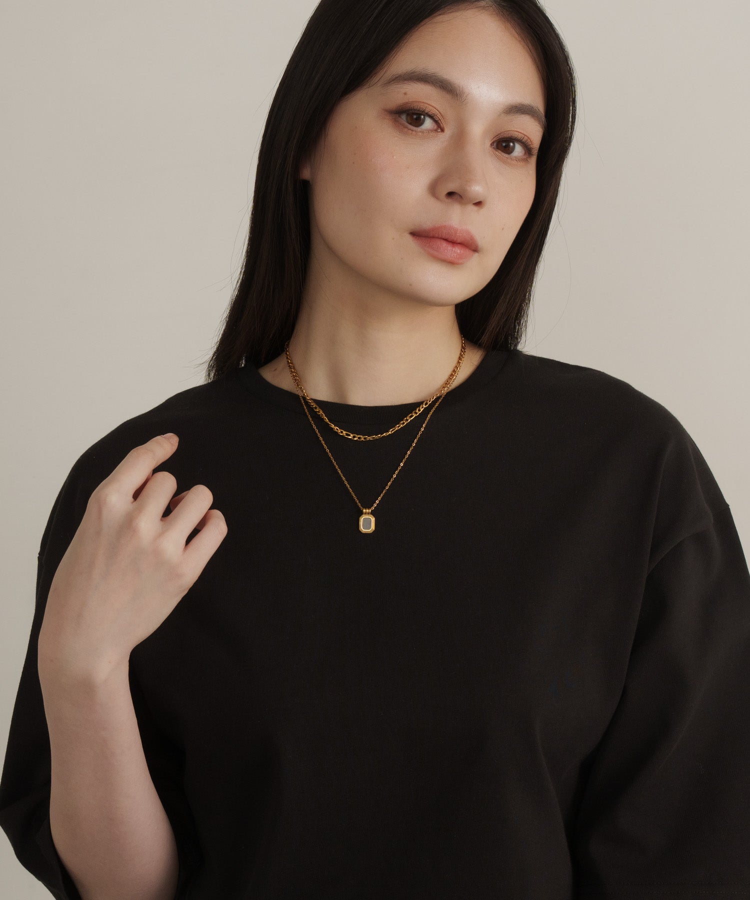 喜平チェーンの中でも比較的丸みがあり柔らかいものを使用。ヴィンテージ感を醸し出すBlackストーンを取り付けアクセントに。