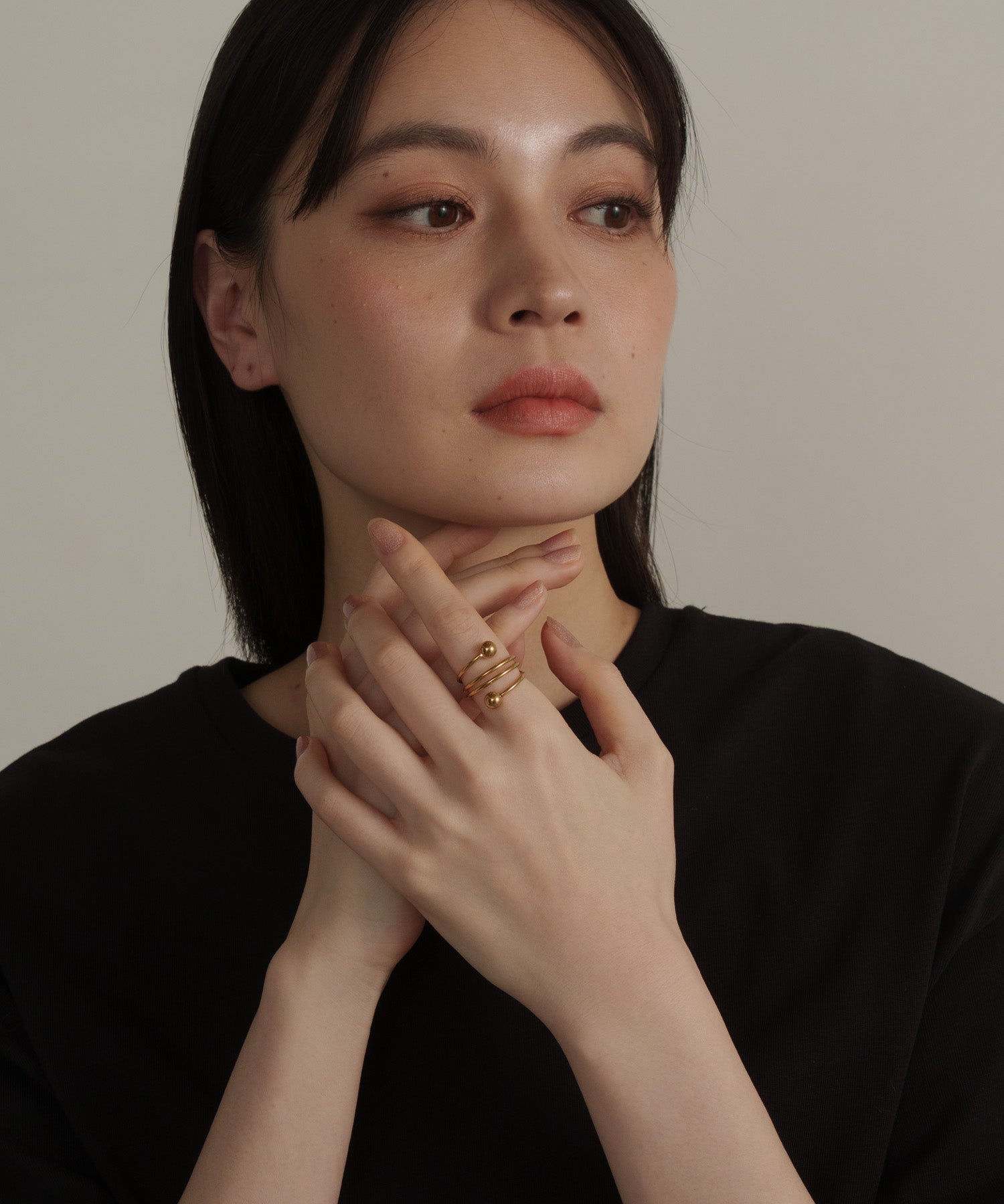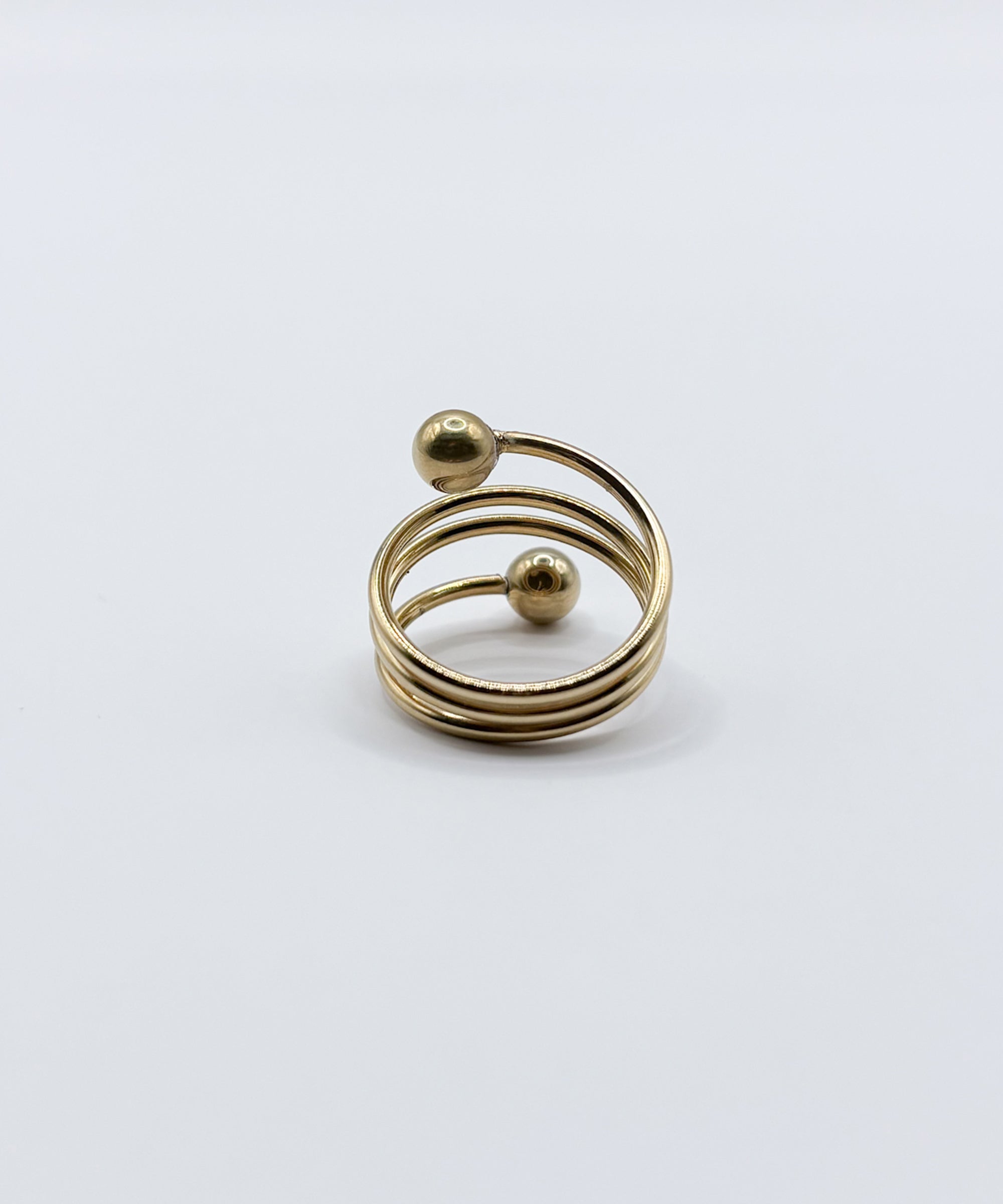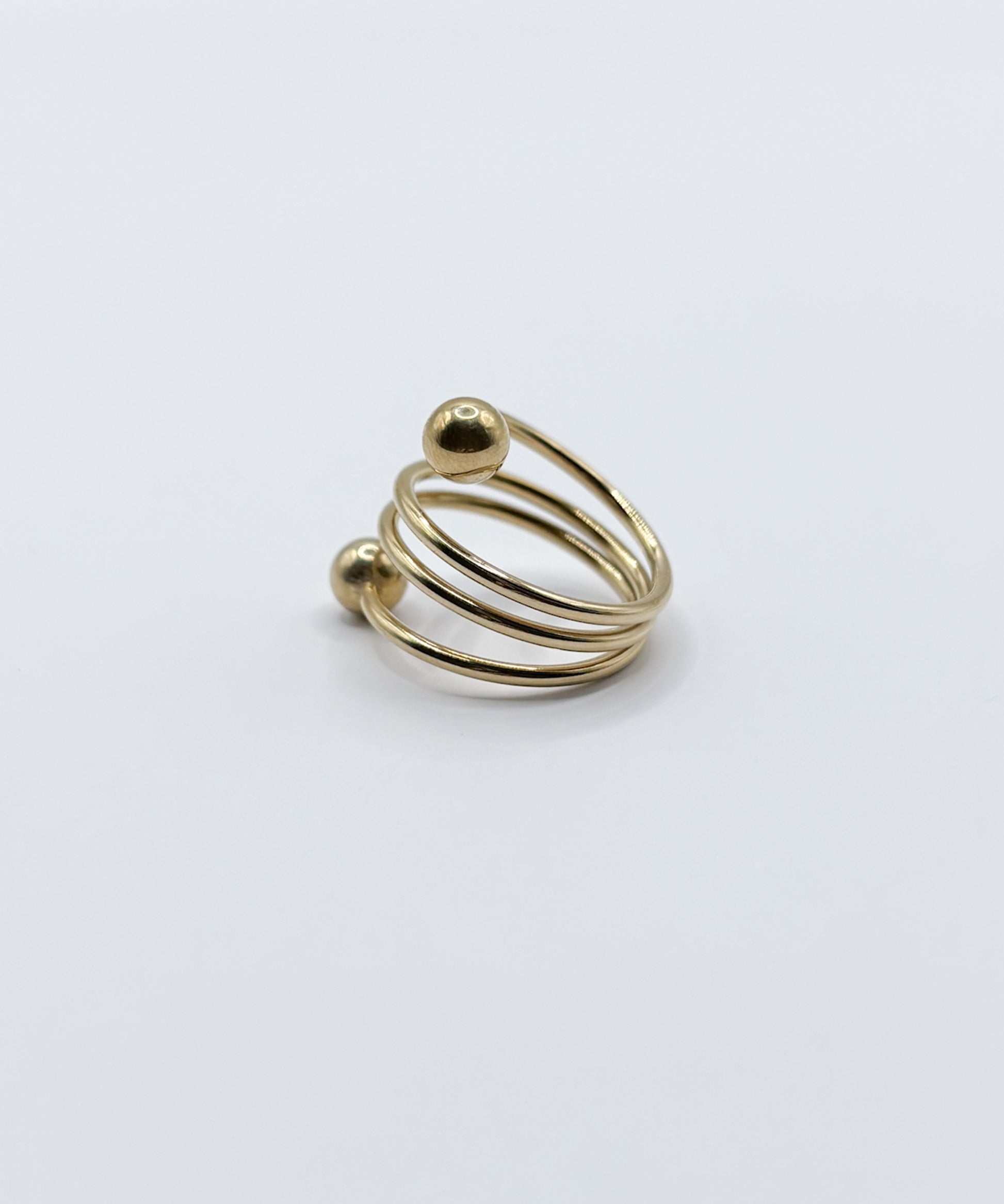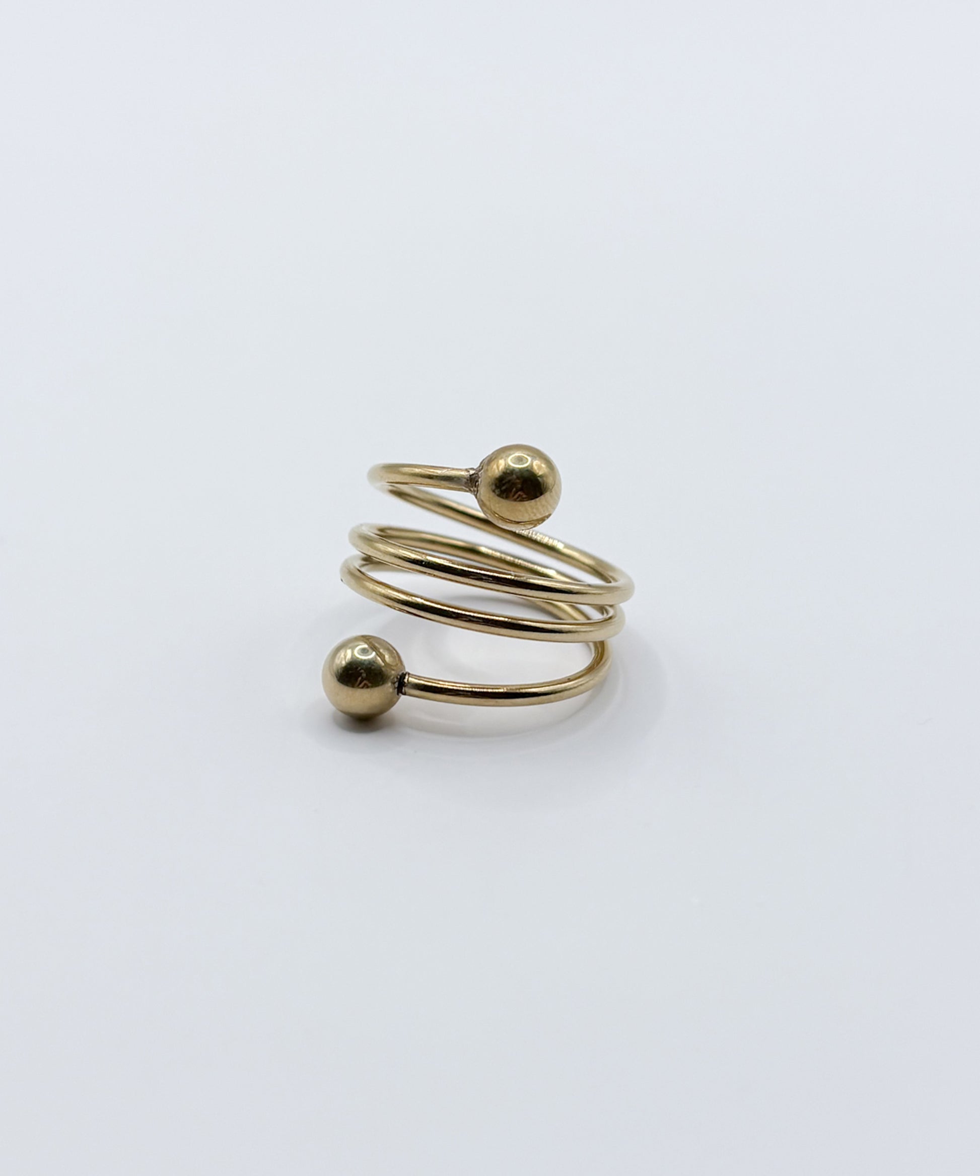 螺旋状にうねりを加えたトルネードデザインに、ボールエンドをあしらったリング。動きのあるフォルムが、手元にさりげない個性と遊び心を添えます。