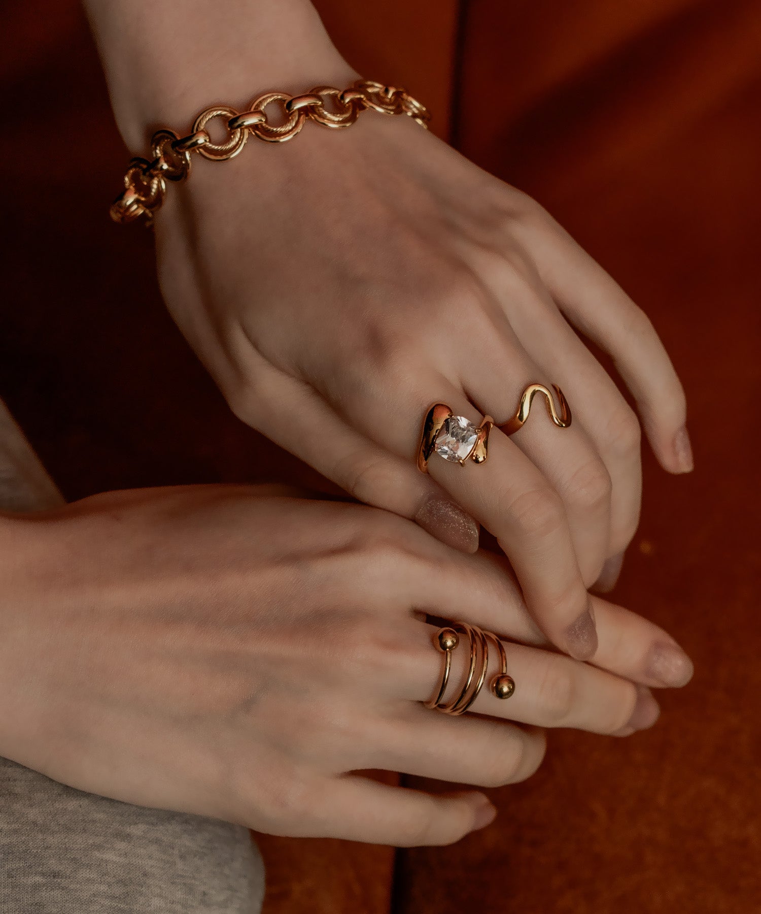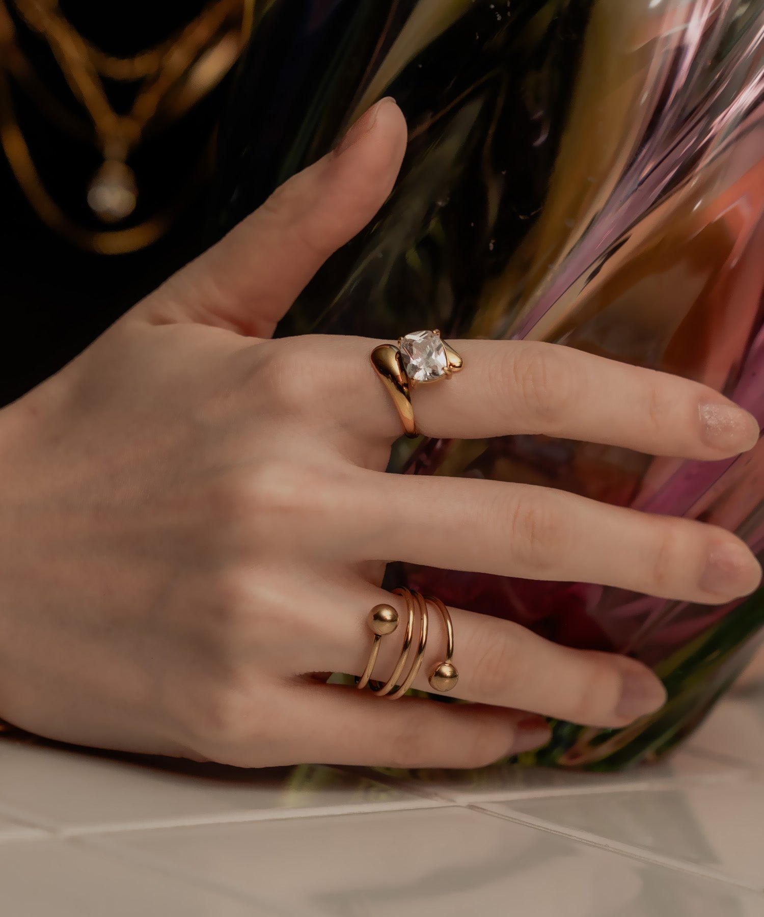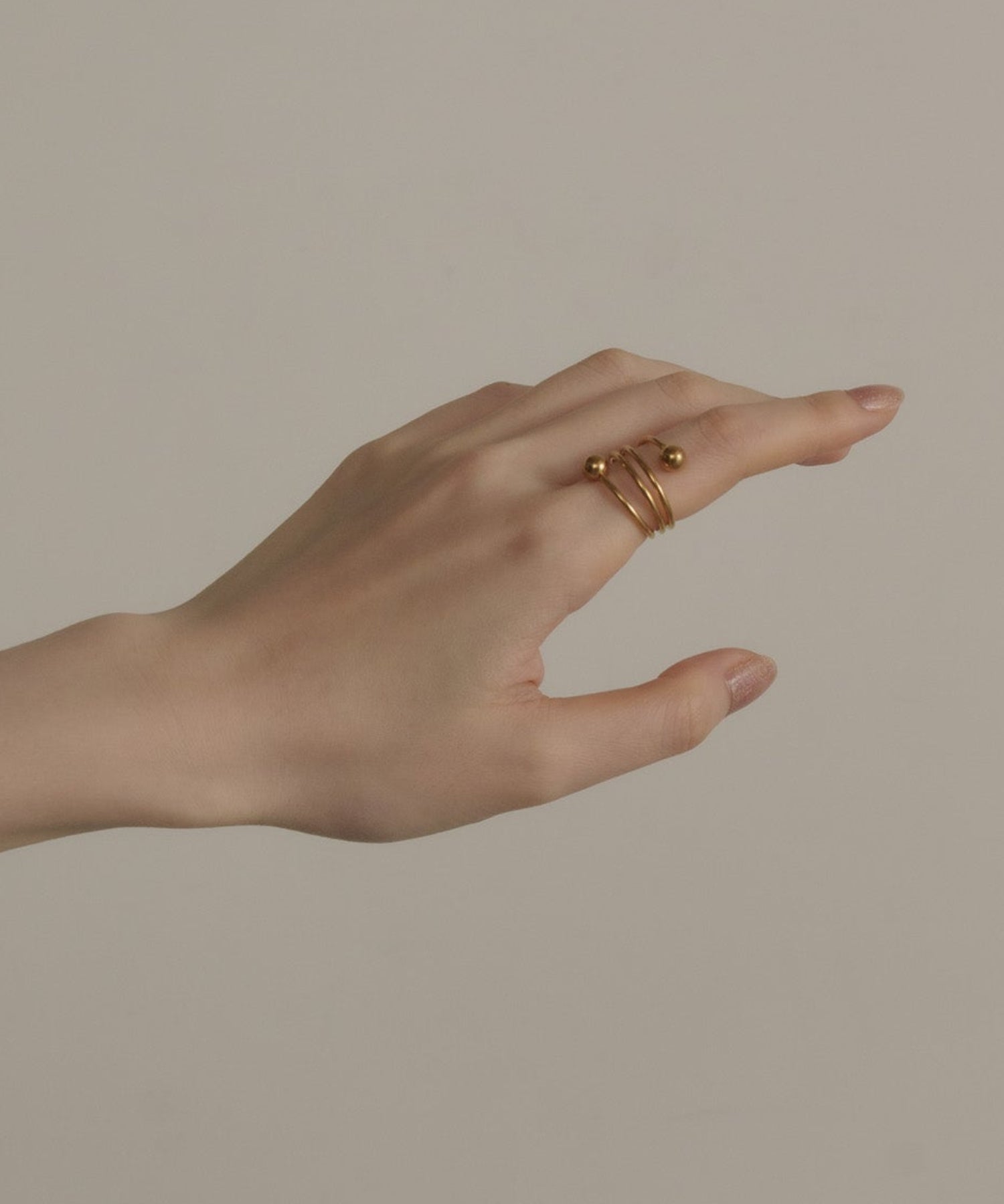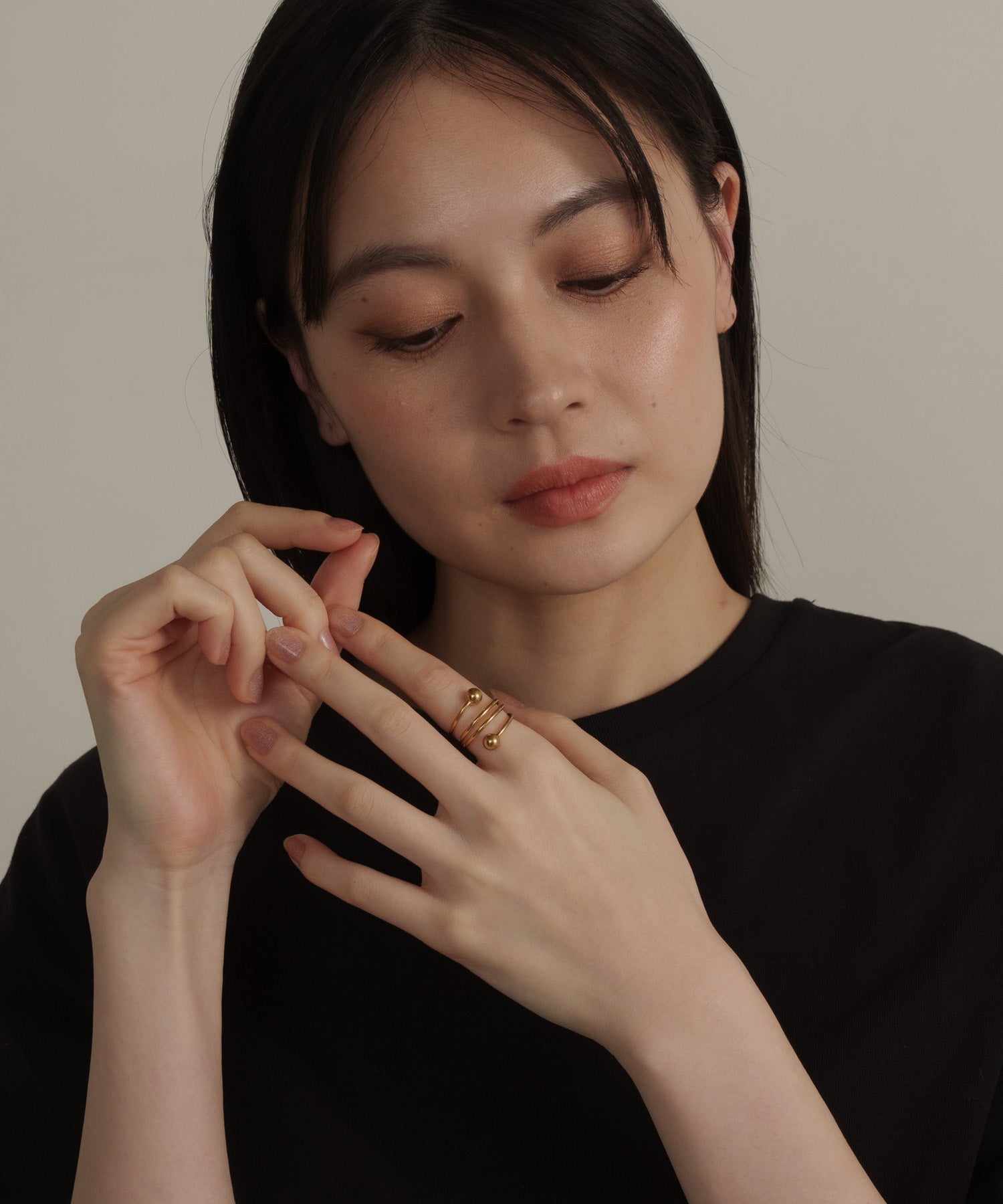 螺旋状にうねりを加えたトルネードデザインに、ボールエンドをあしらったリング。動きのあるフォルムが、手元にさりげない個性と遊び心を添えます。