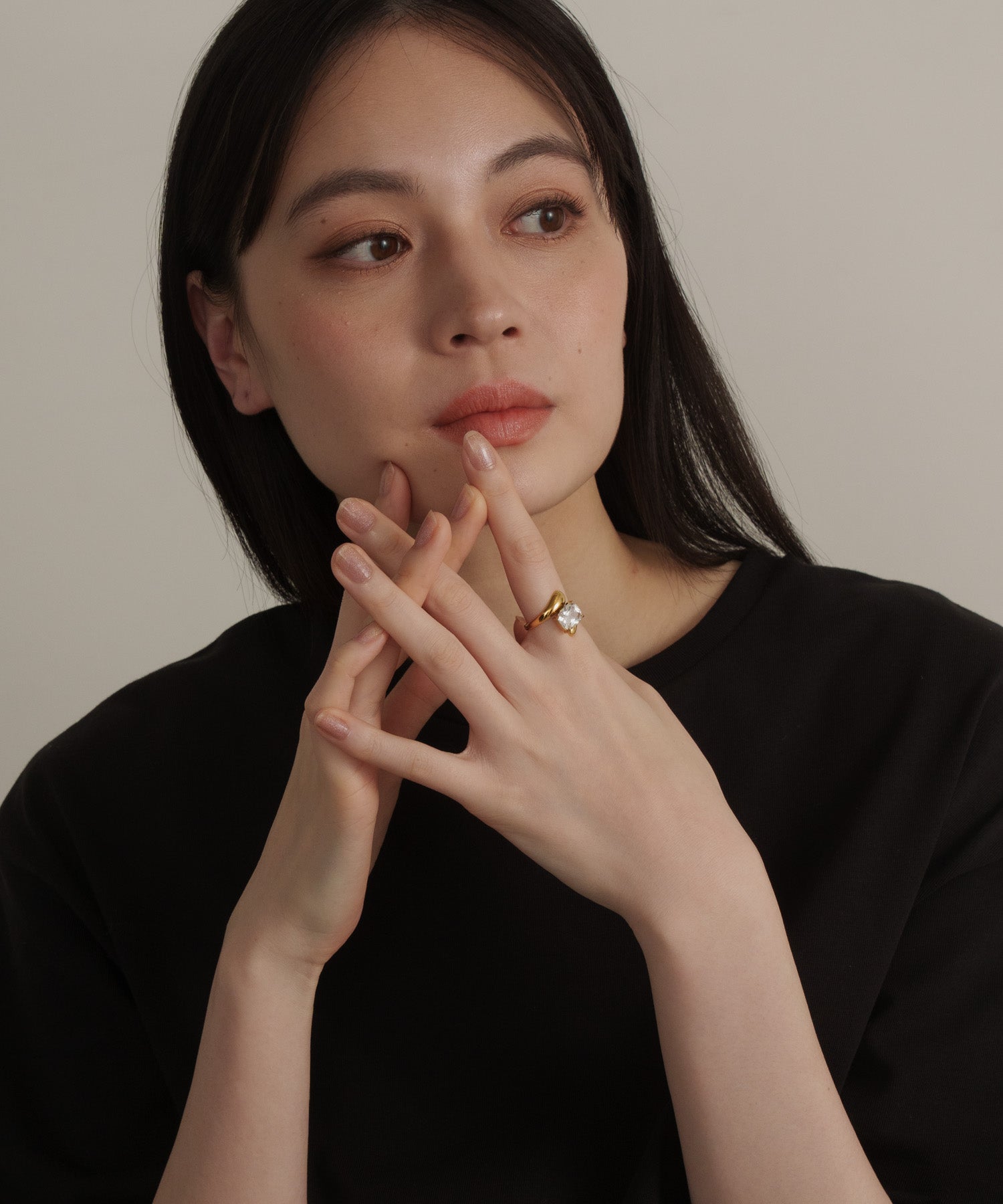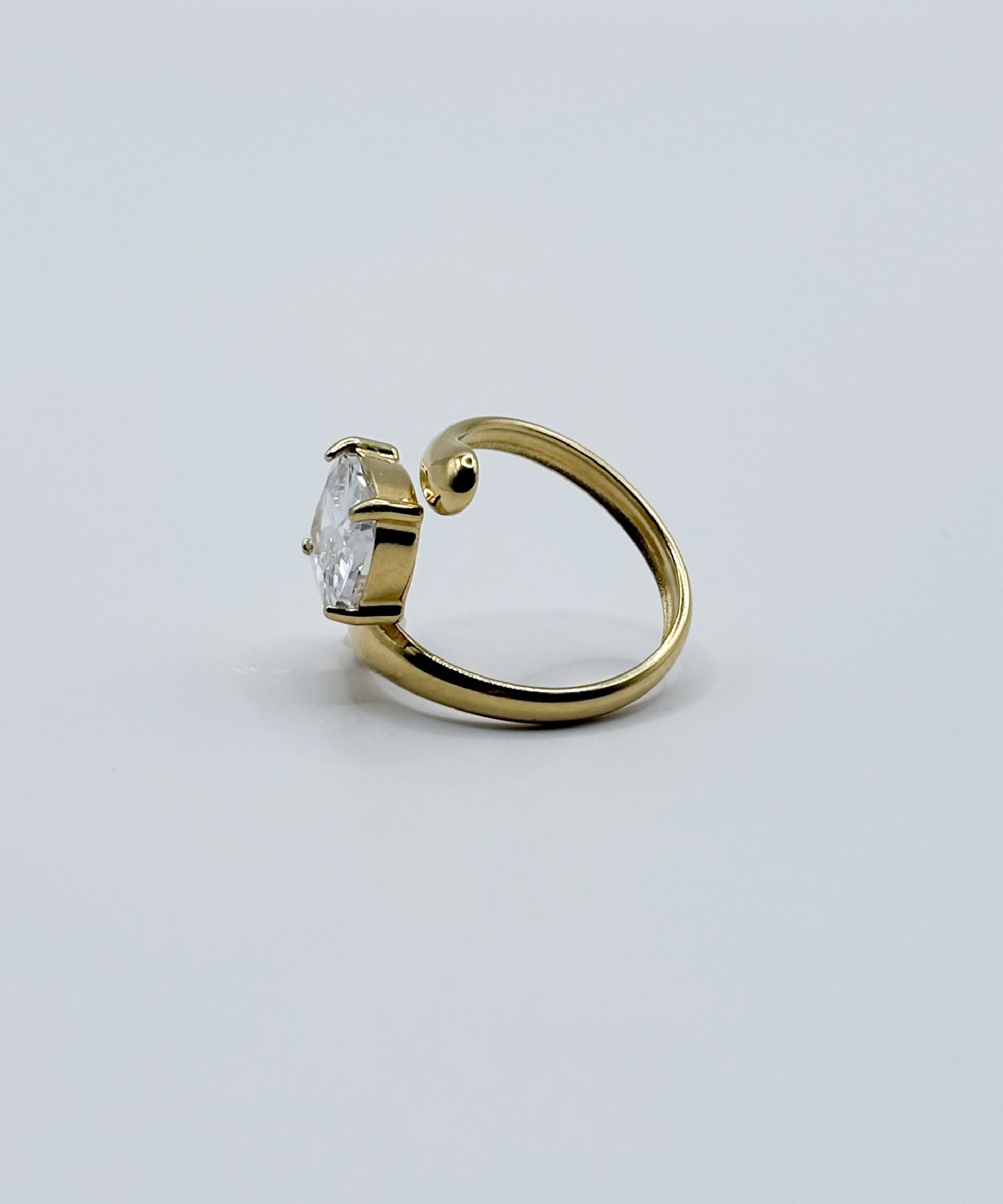 ストーンを包み込むようにラインが巻き付く、ラップアラウンドストーンリング。巻き付くラインの強弱が指を美しく見せ、印象的な手元に仕上げます。サイズ調節が可能ですが、無理な力を加えると変形する恐れがありますのでご注意ください。