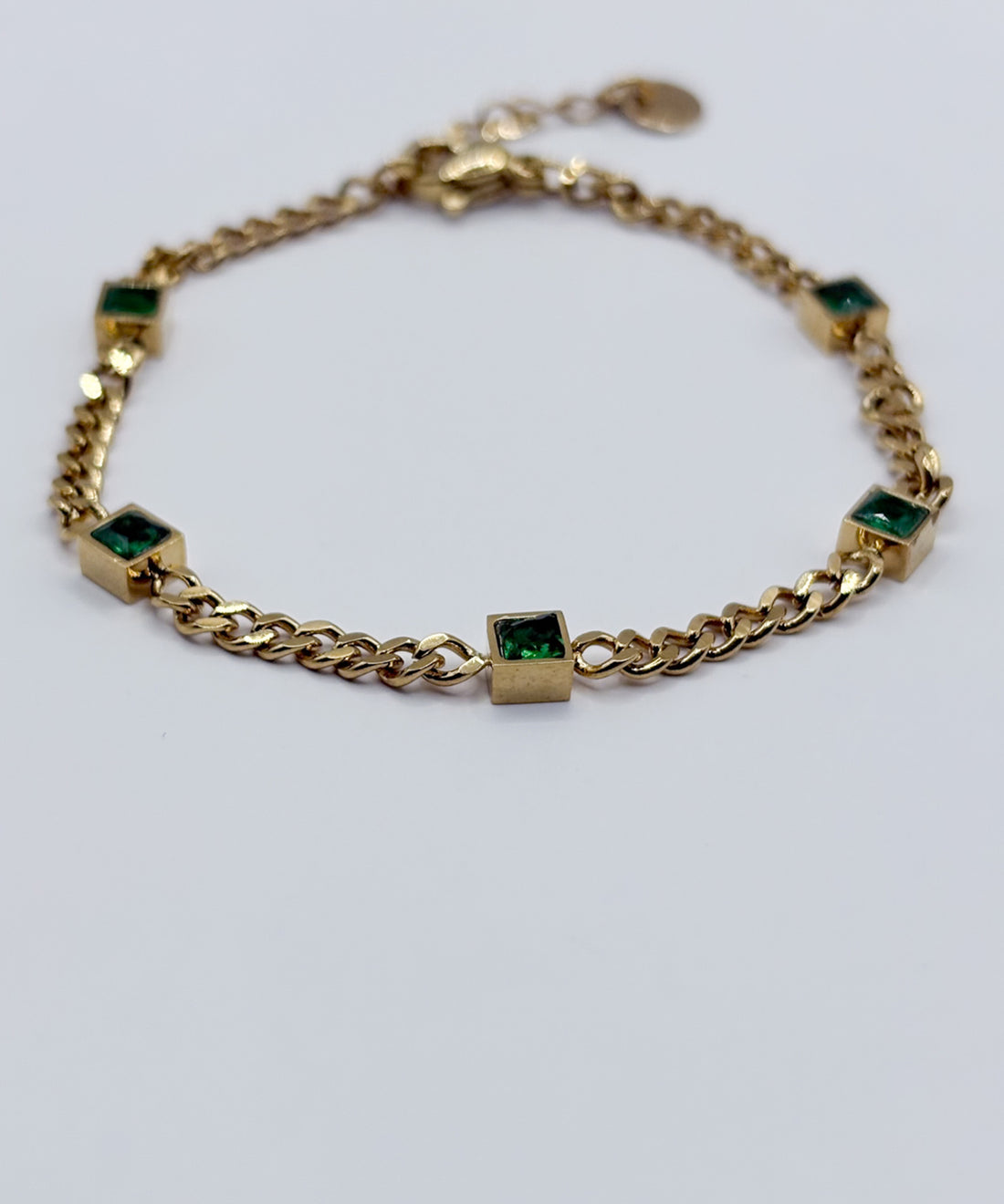 グリーンスクエアストーンブレスレット 【Gold×Green】