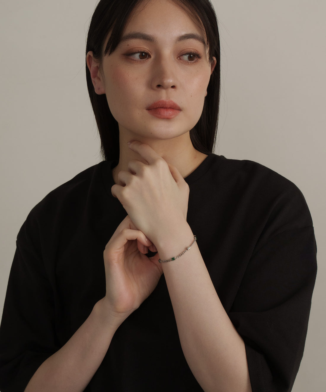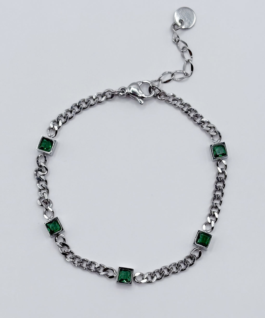 グリーンスクエアストーンブレスレット 【Silver×Green】