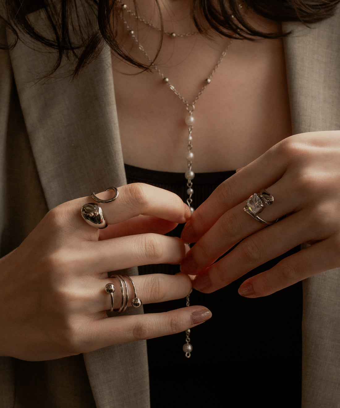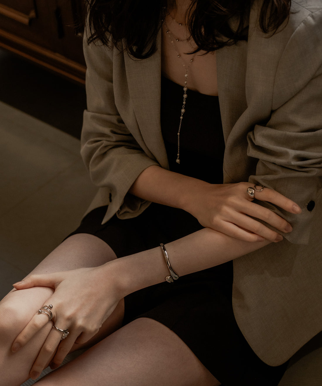パールライクツイストイヤーカフセット(両耳)【Silver】