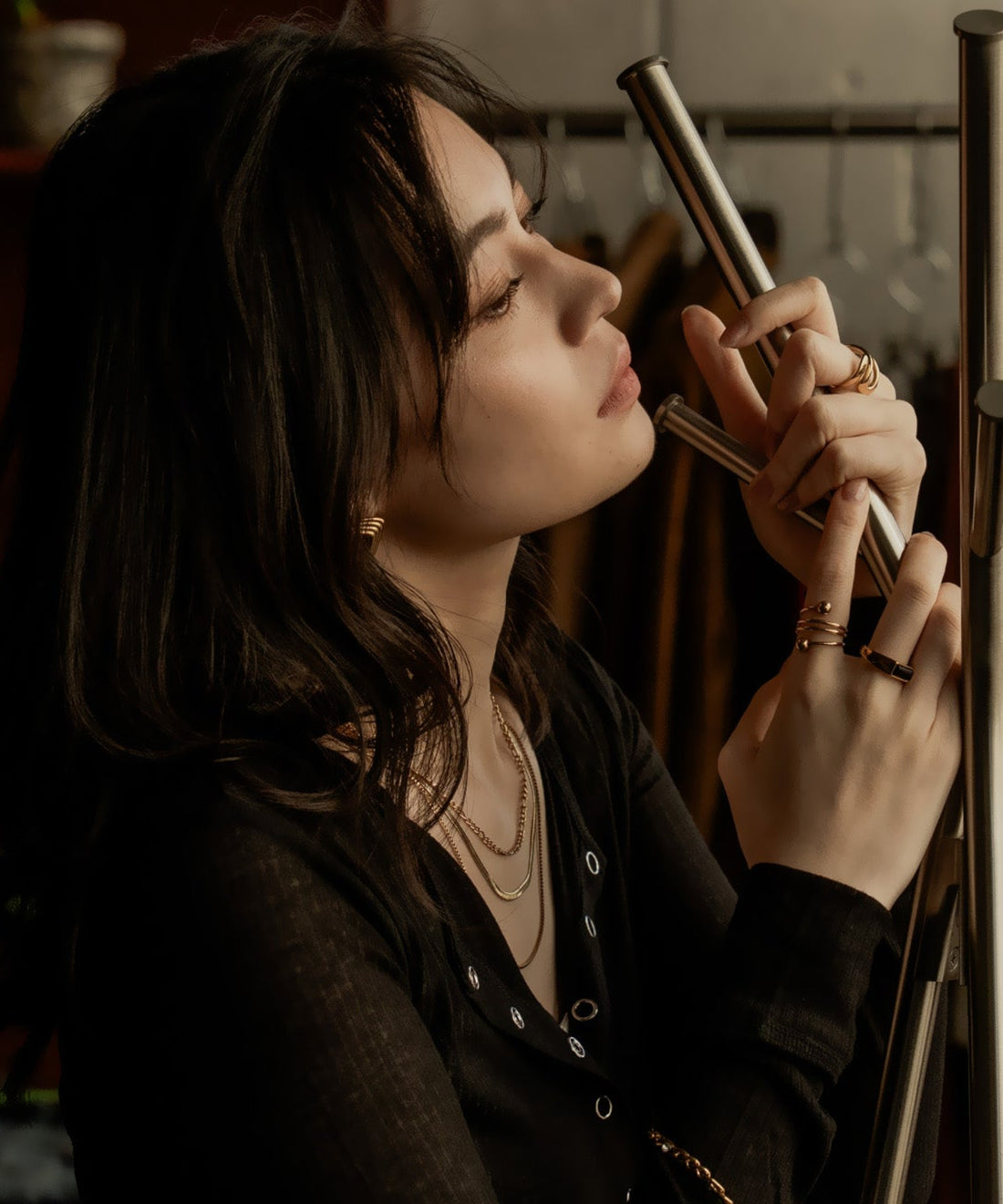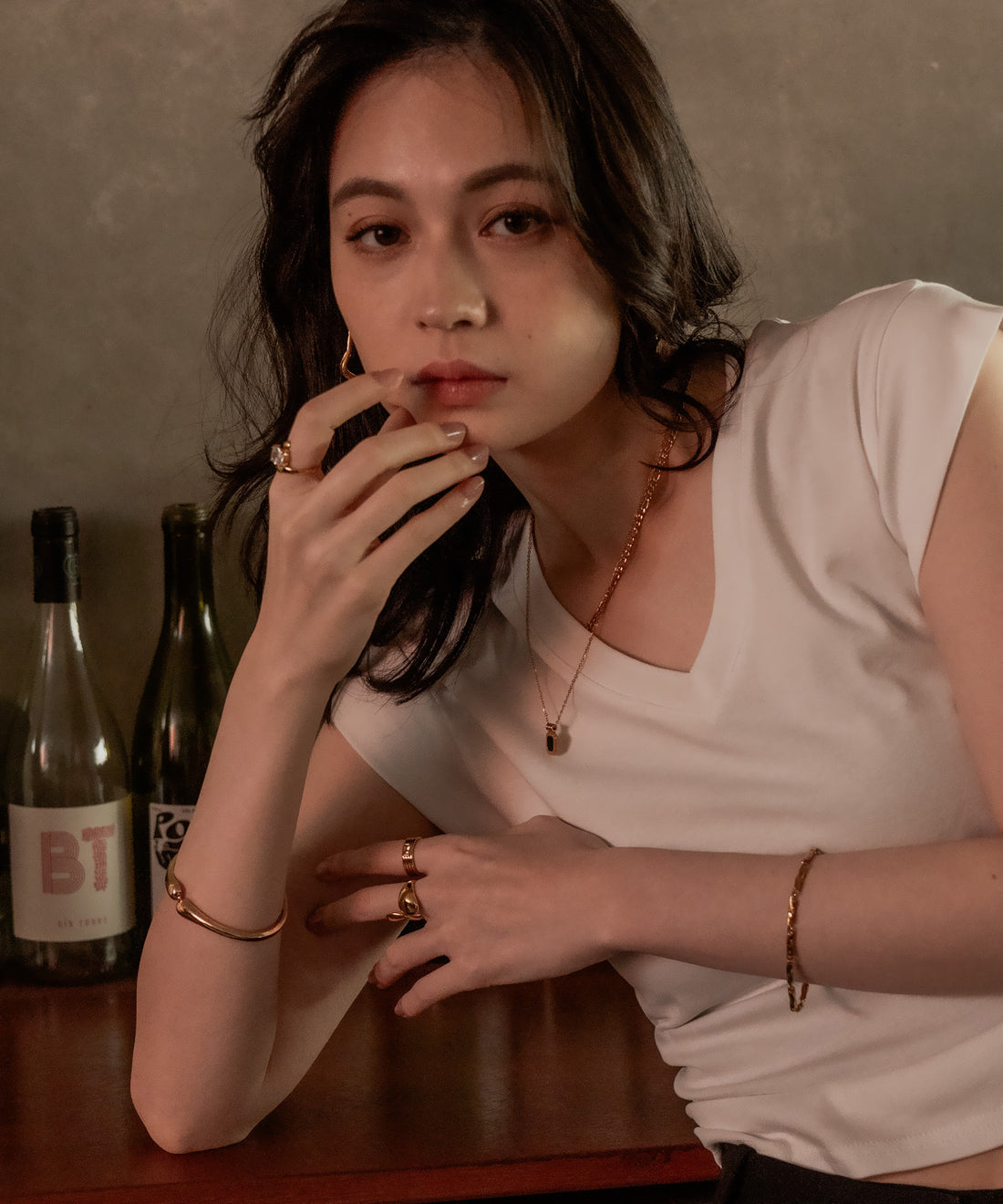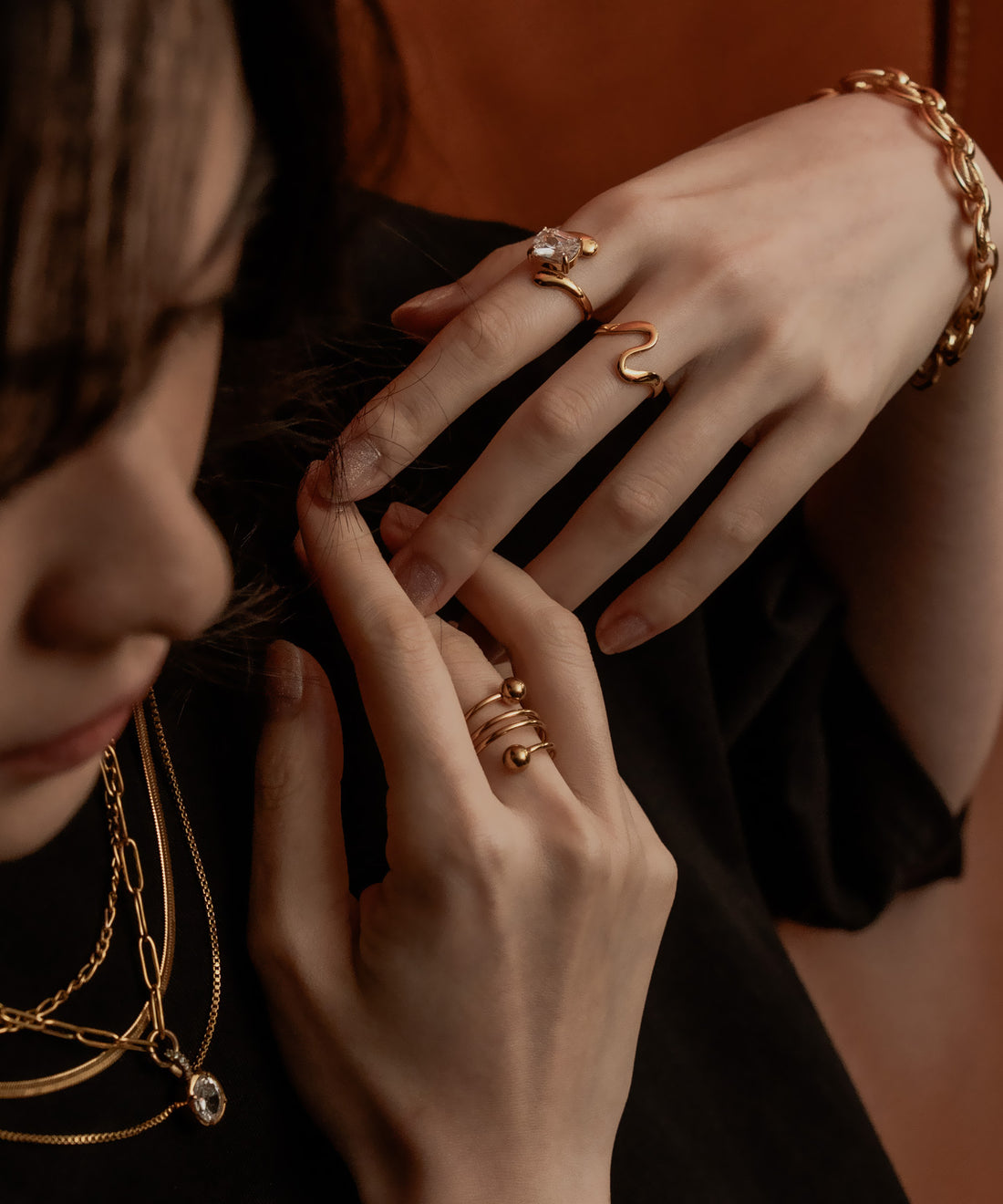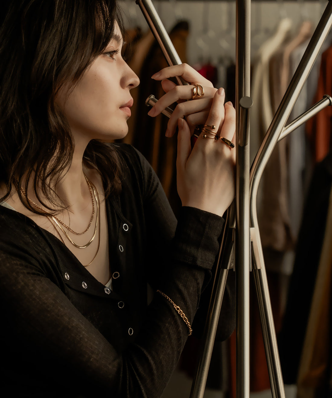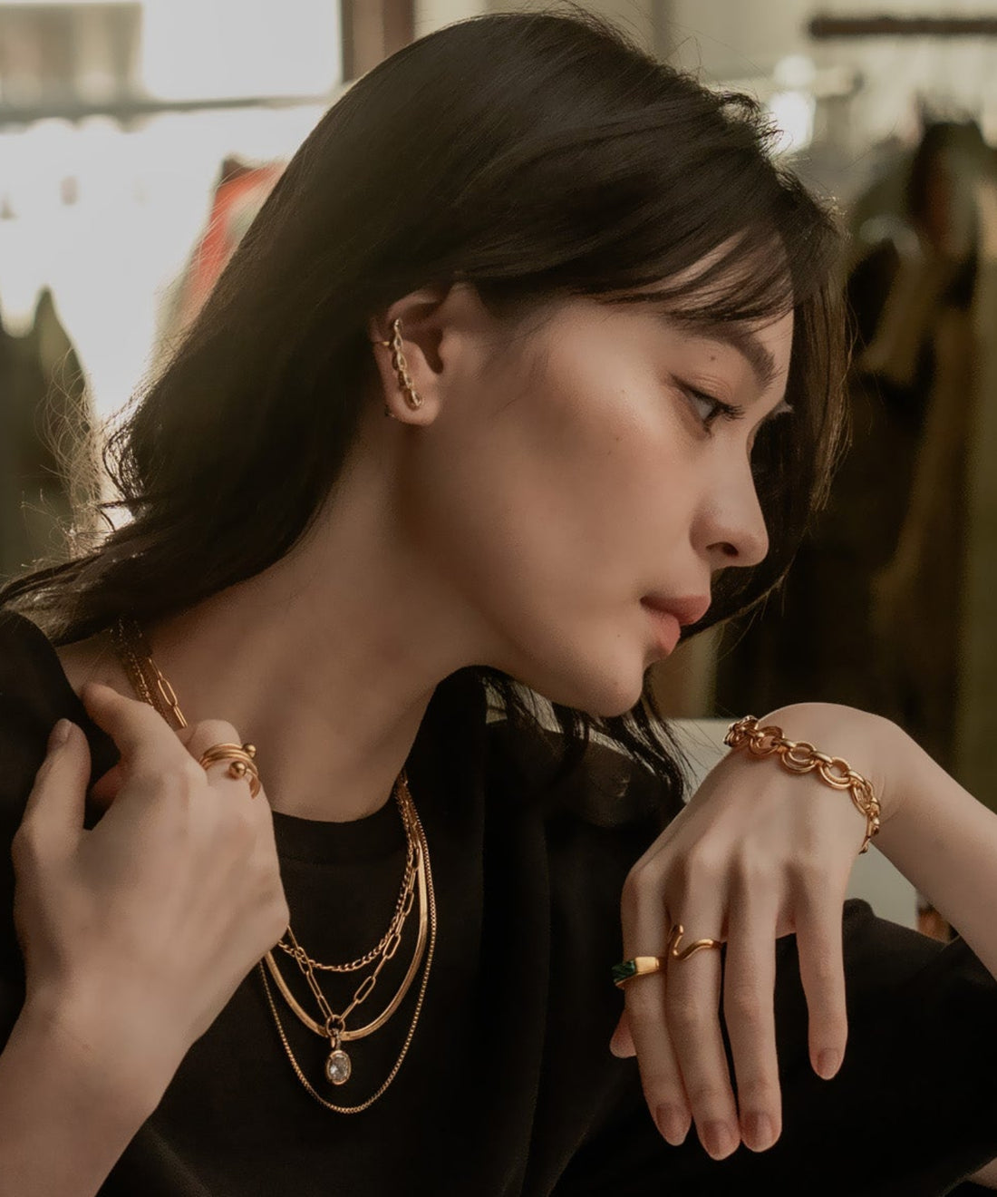 Blackストーンレイヤードネックレス【Gold×Black】