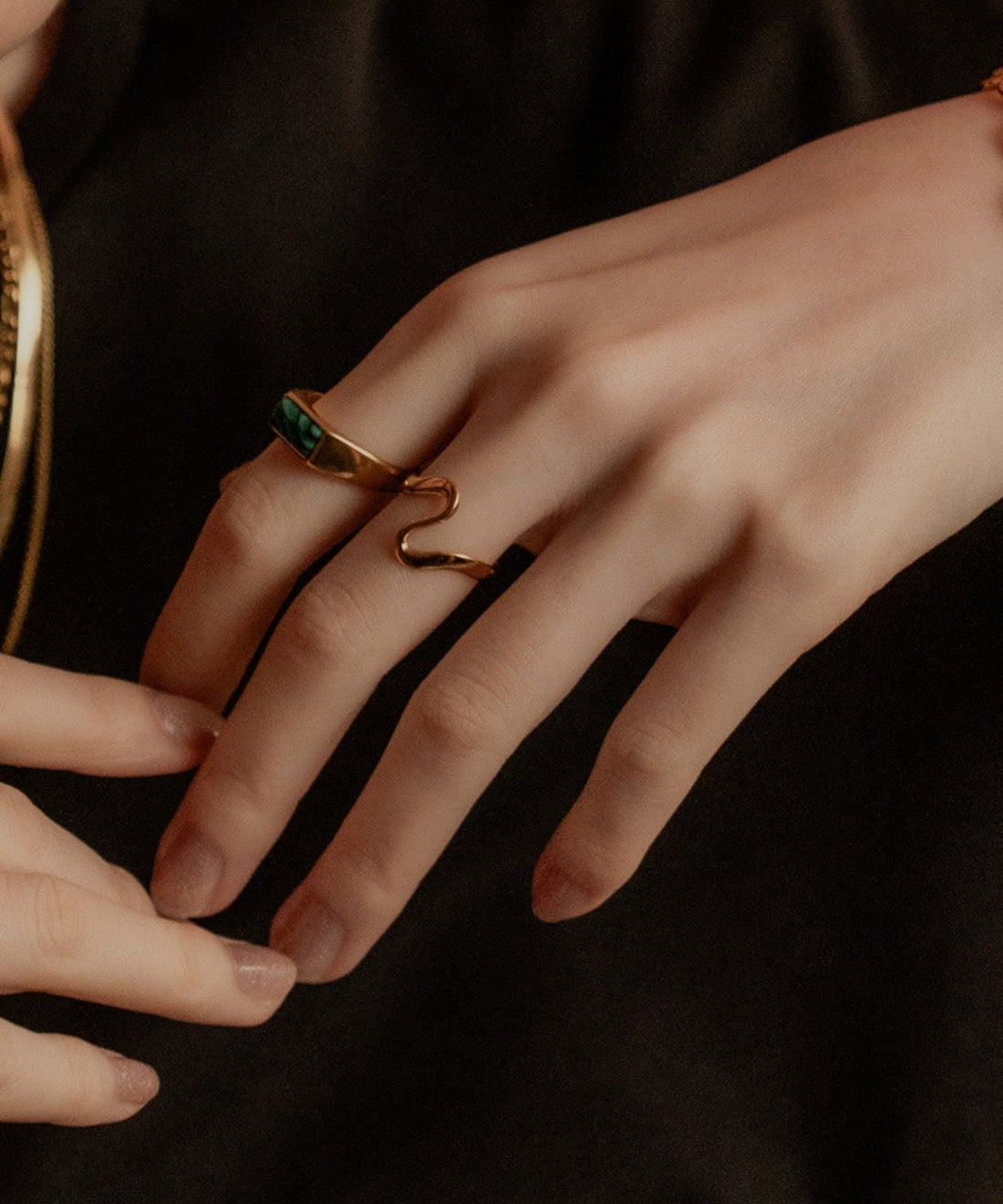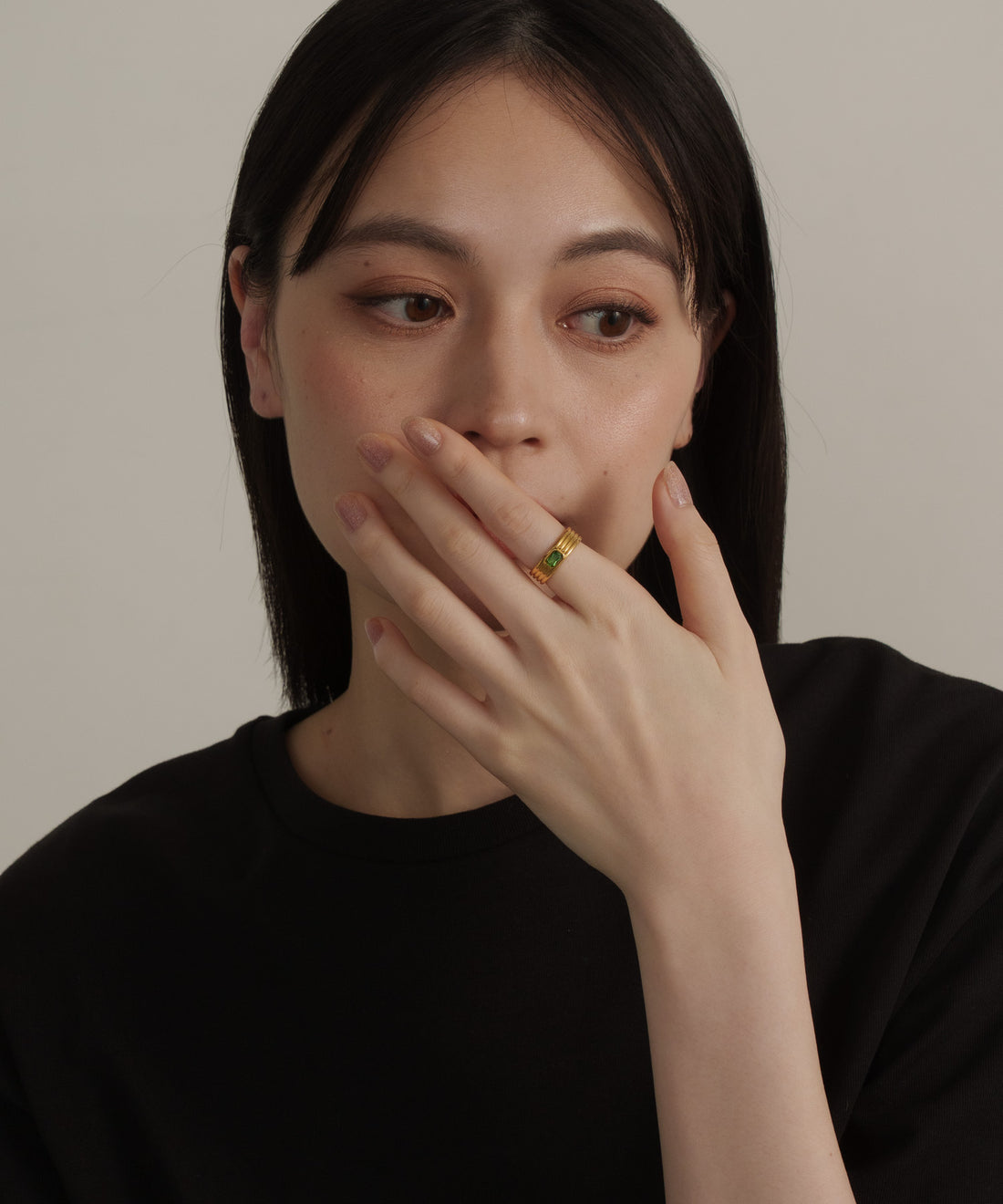 ストーンヴィンテージラインリング【Gold×Green】