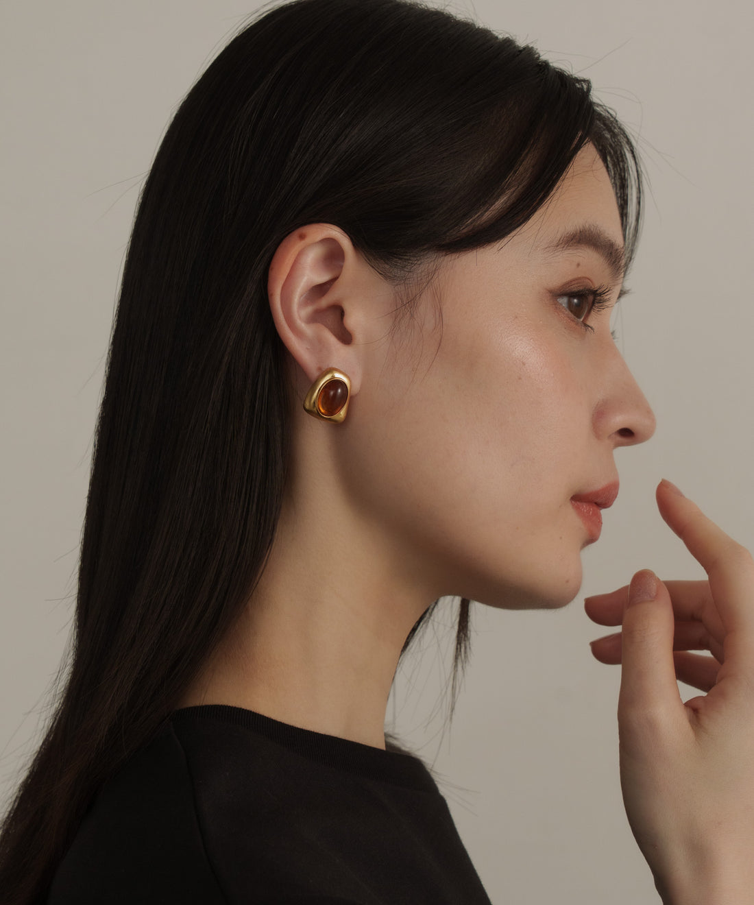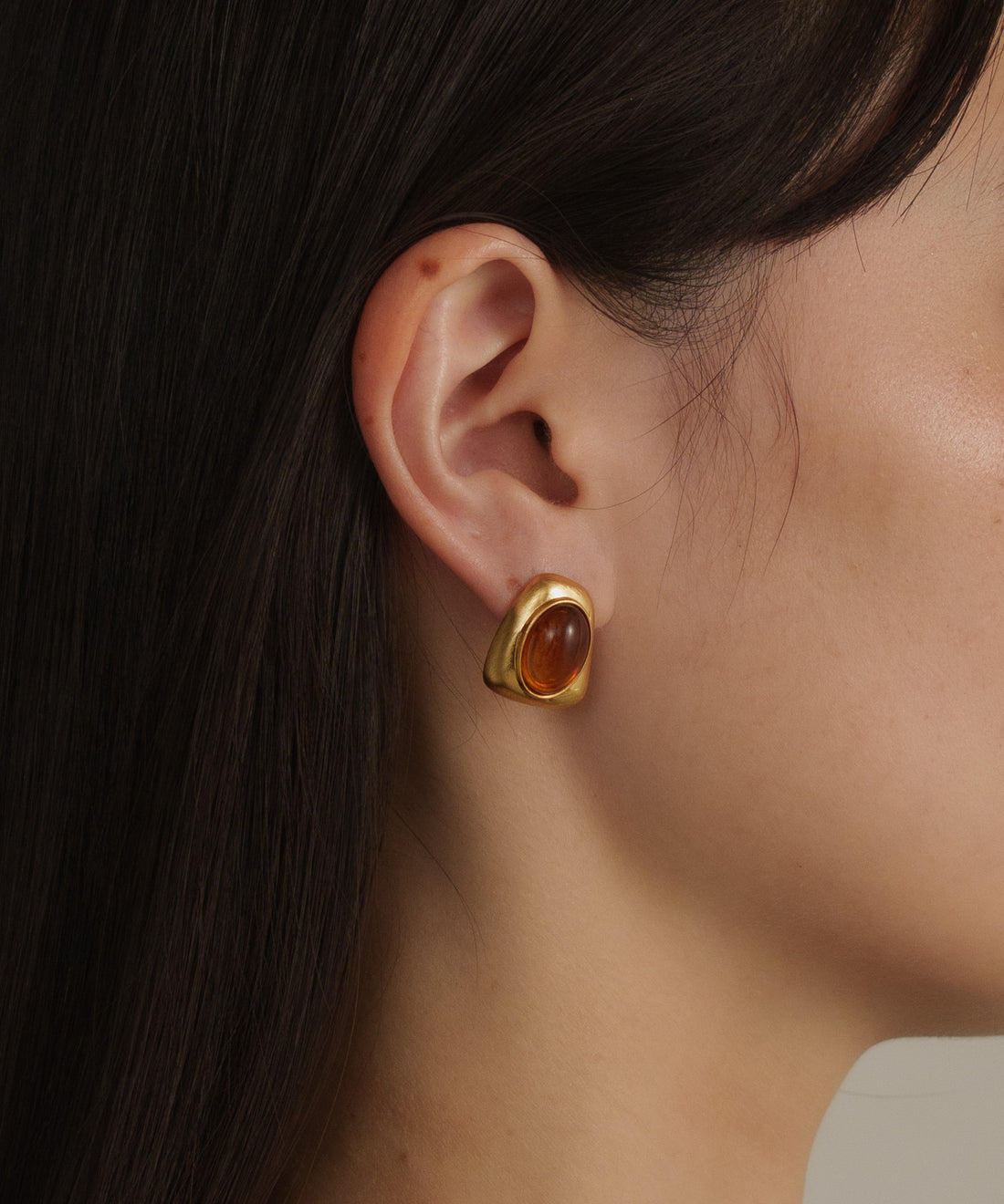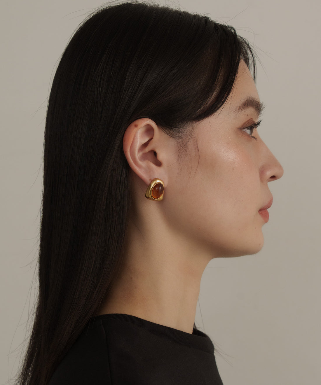 カーブドロップストーンピアス【Gold】