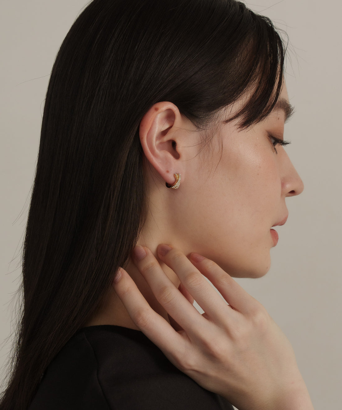 スランテッドラインストーンイヤーカフ【Gold】
