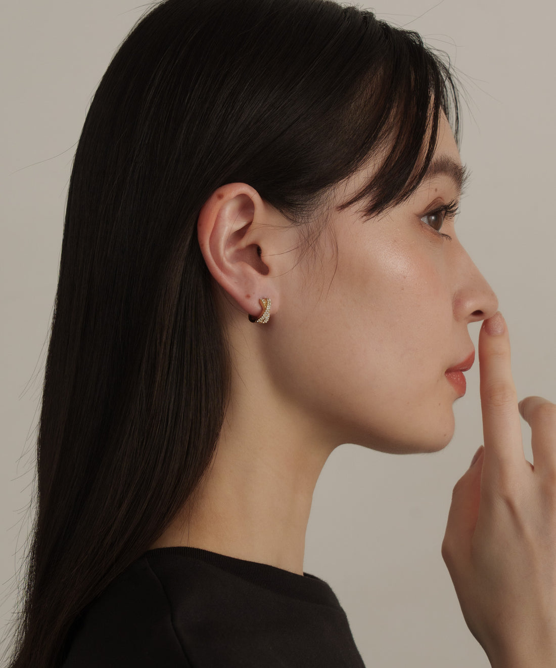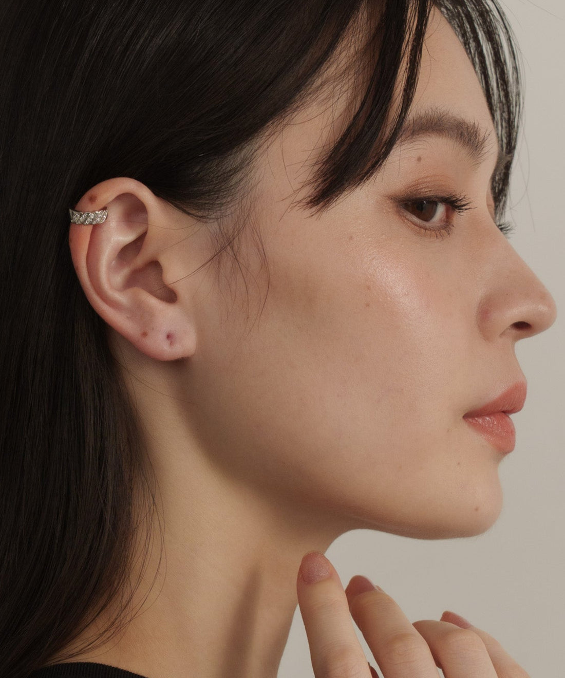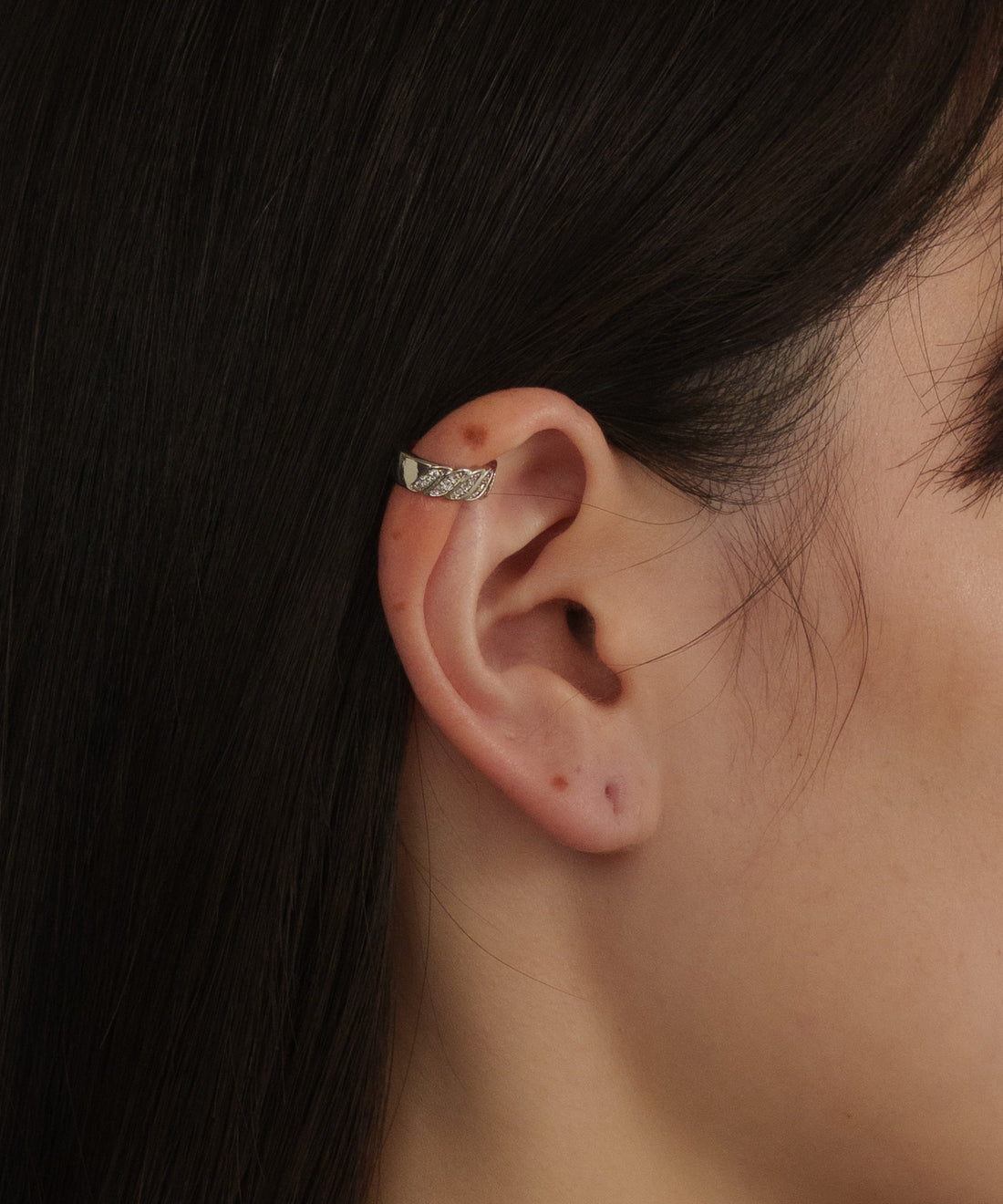 スランテッドラインストーンイヤーカフ【Silver】