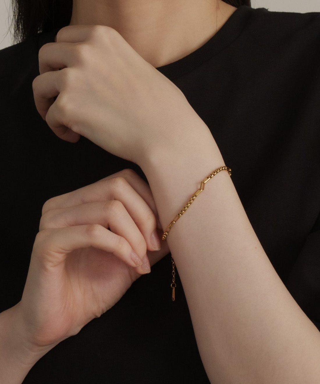 インターバルスクエアチェーンブレスレット【Gold】