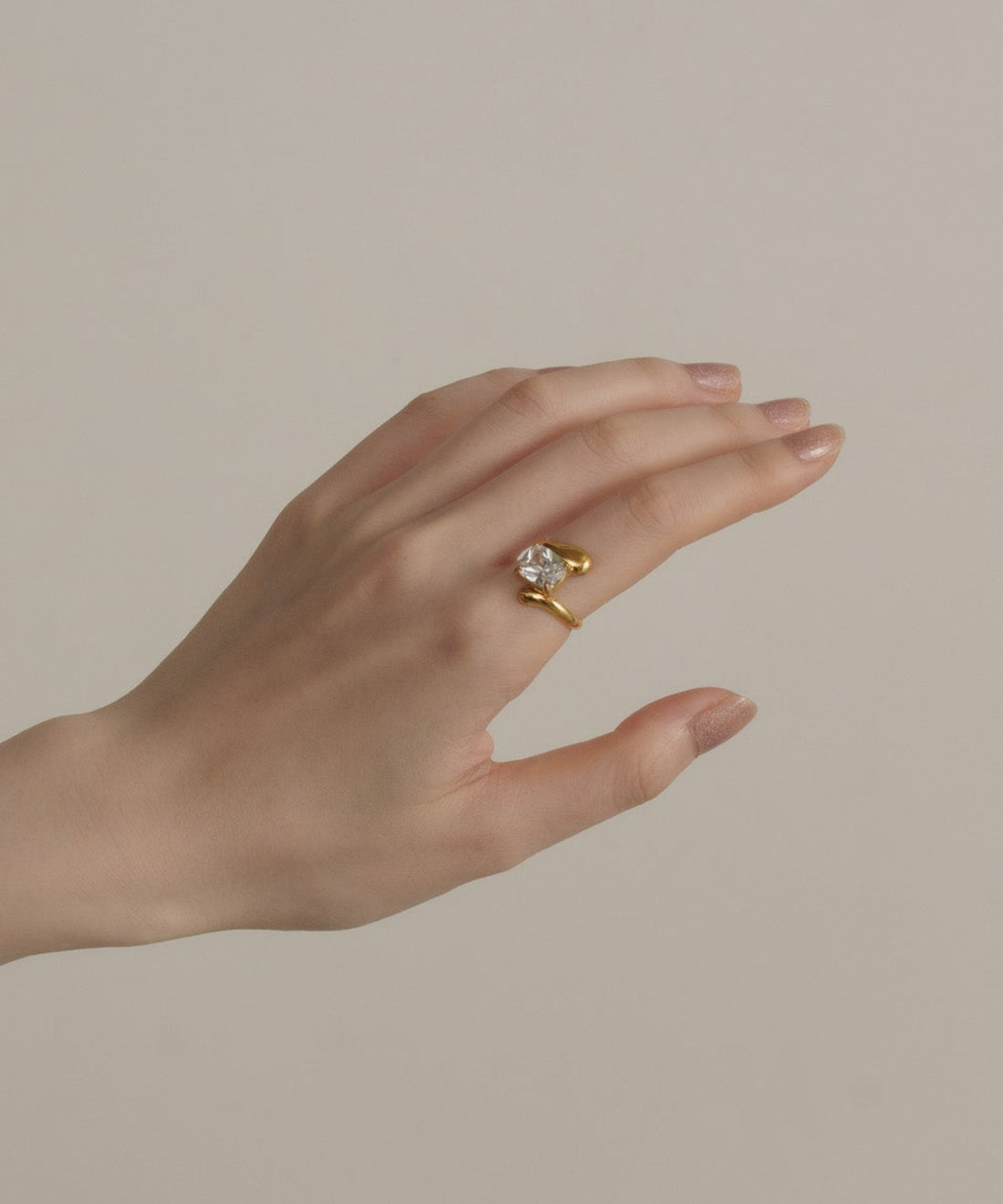 レクタングルストーンリング【Gold×Clear】