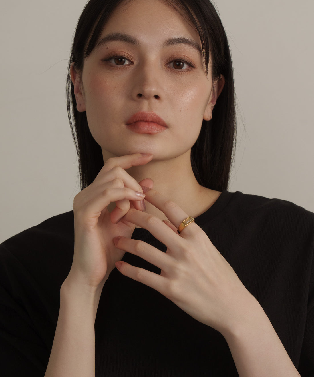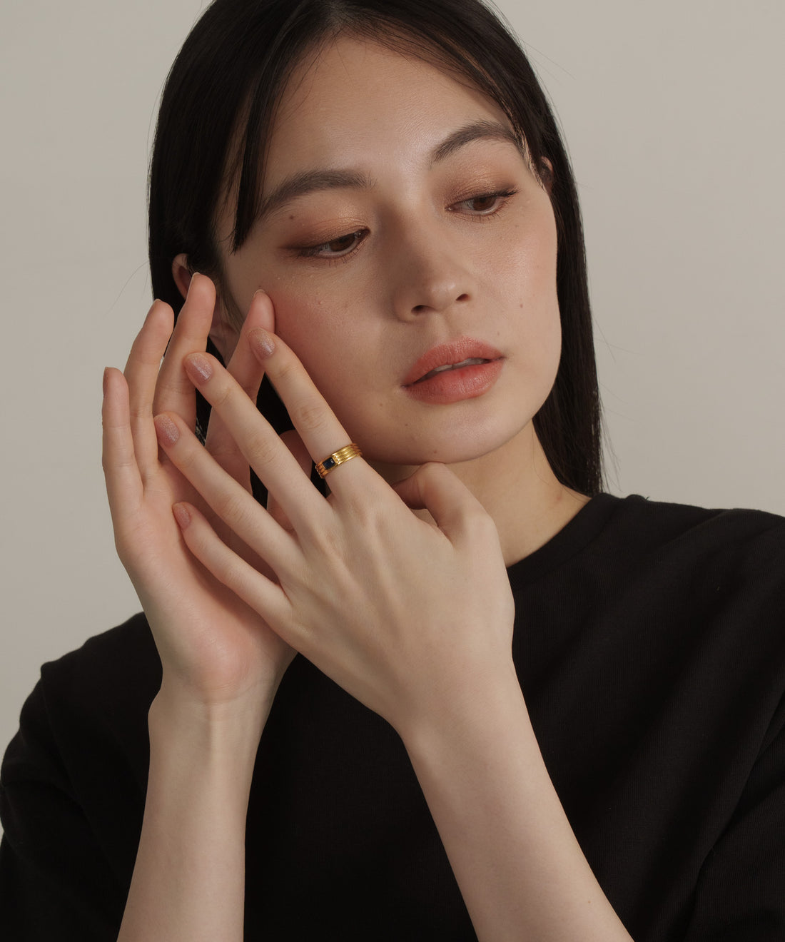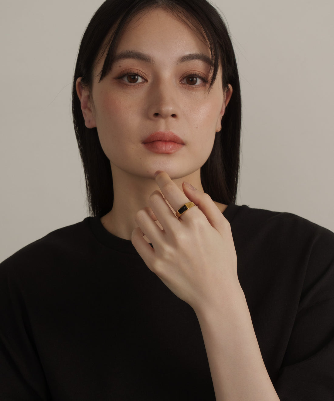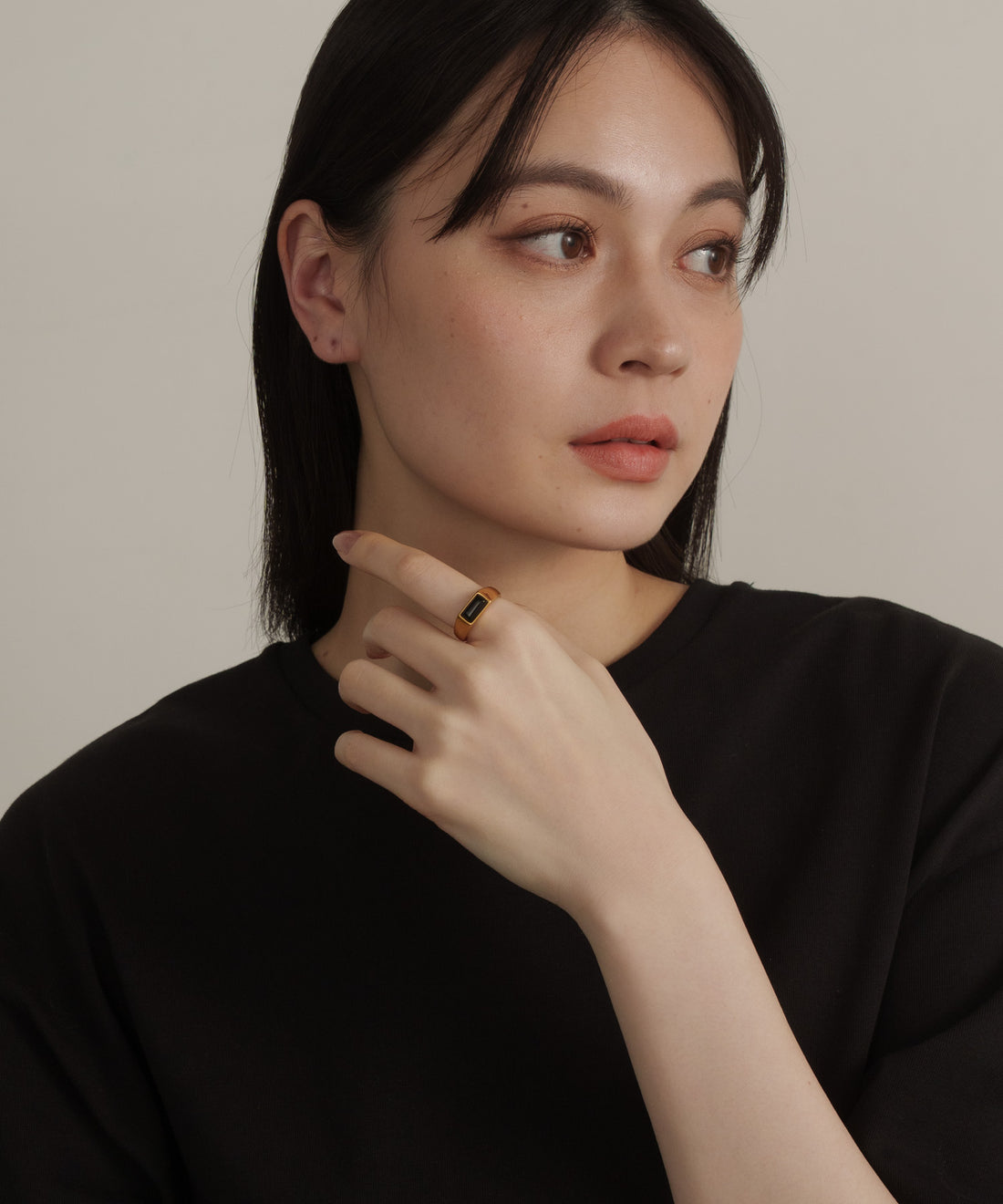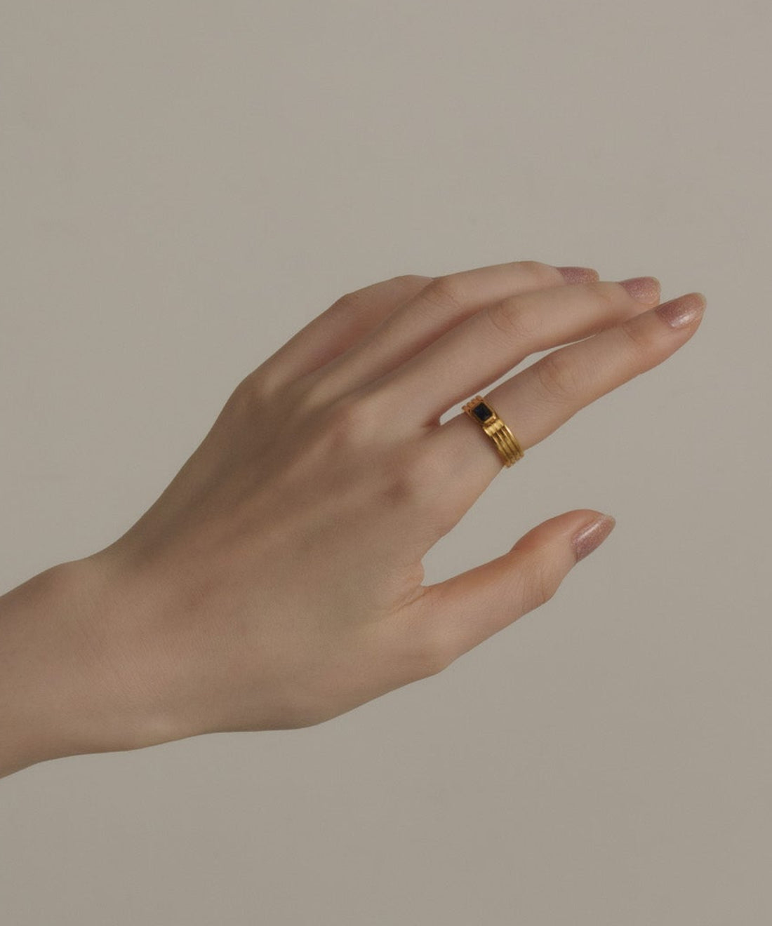 レクタングルストーンリング【Gold×Black】