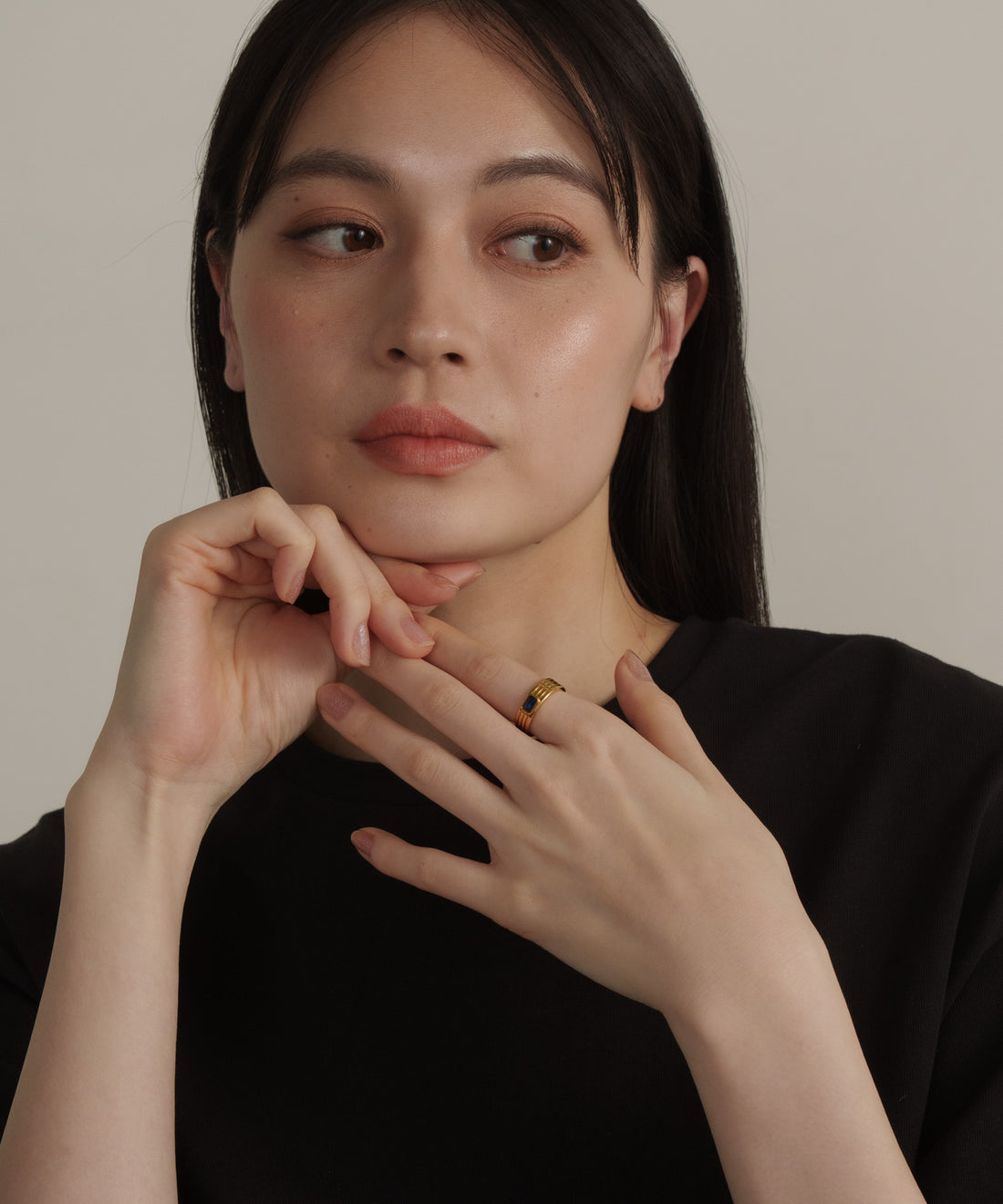 ストーンヴィンテージラインリング【Gold×Navy】