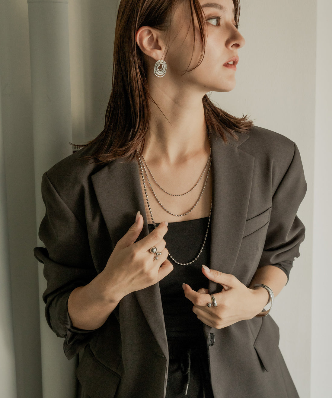 アブストラクトトップレイヤードネックレス【Silver】