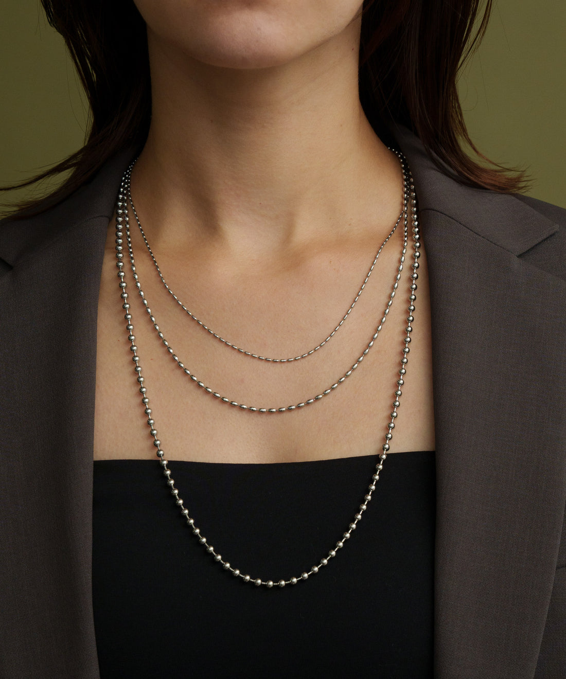 ロングMIXボールチェーンネックレス【Silver】