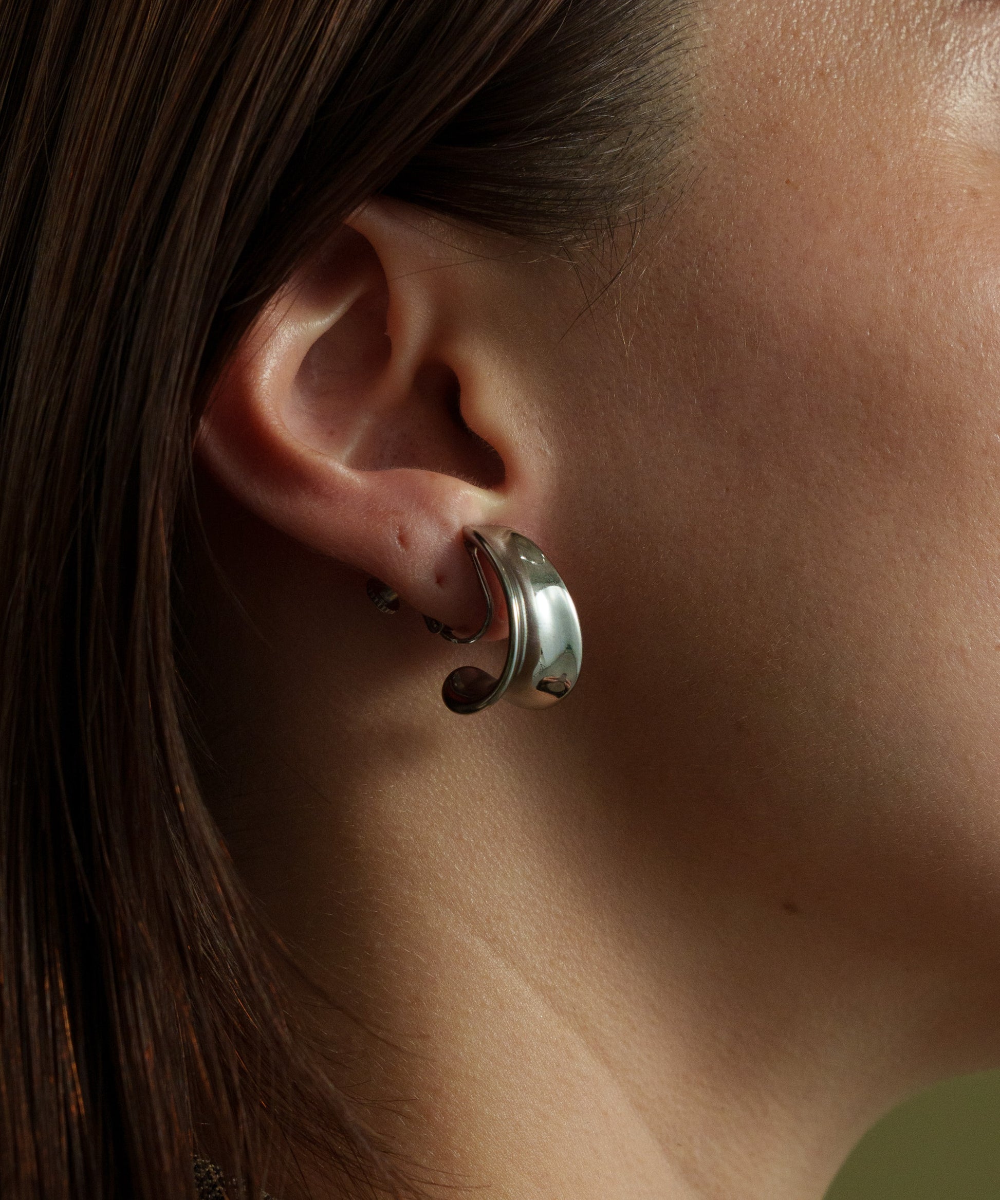 反り返ったシルエットが印象的なイヤリング。光の当たり方で表情が変わる、表情豊かなデザインです。