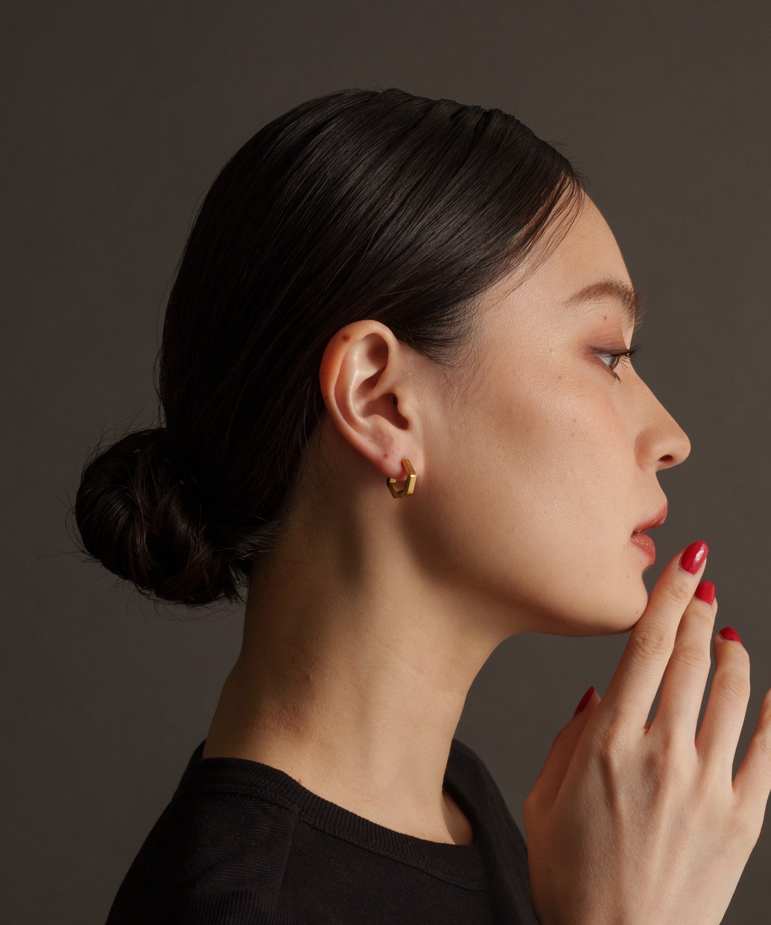 小ぶりながら角ばったデザインでクールなスパイスをプラスできるピアス。