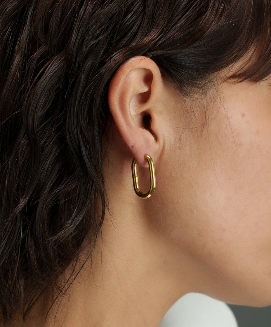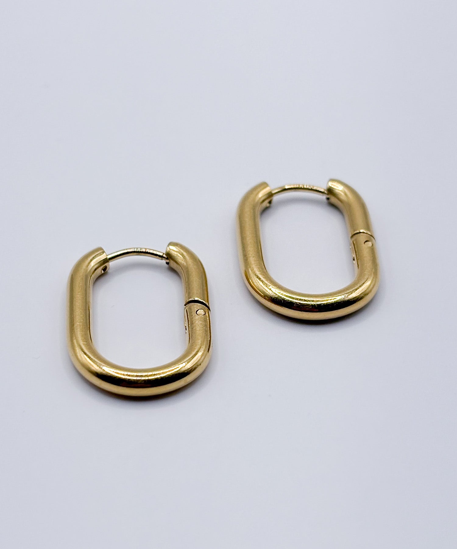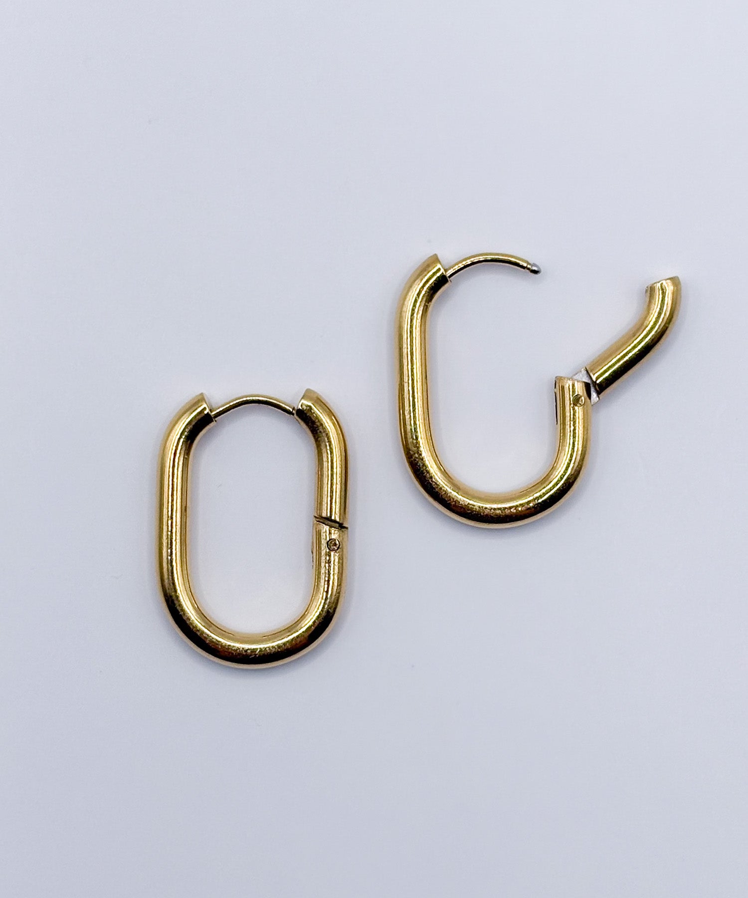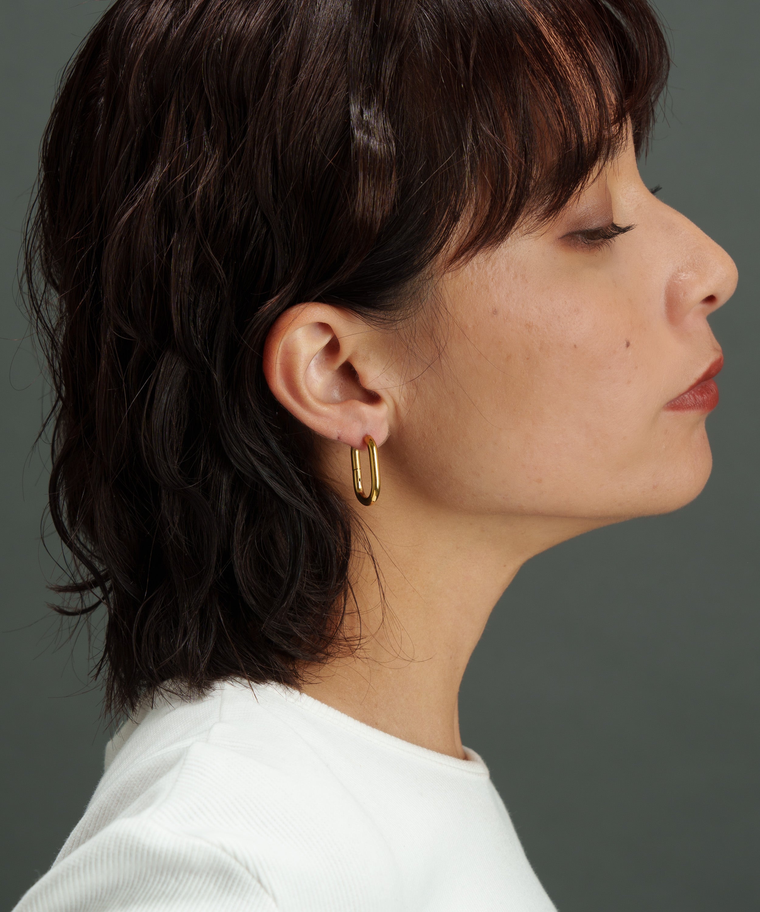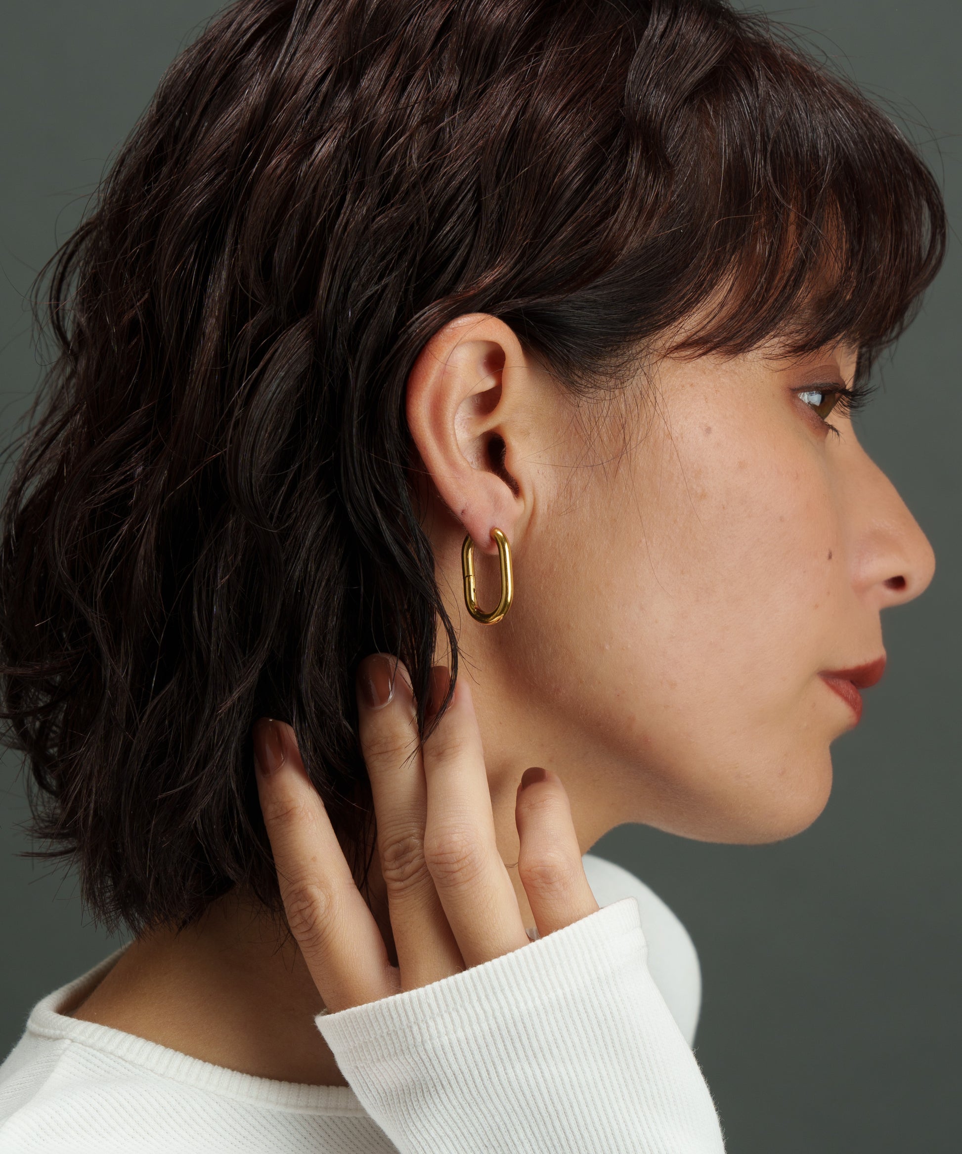 楕円形と丸みを帯びたパーツが柔らかな印象のピアス。カチッとはめ込みしっかり固定できる仕様です。