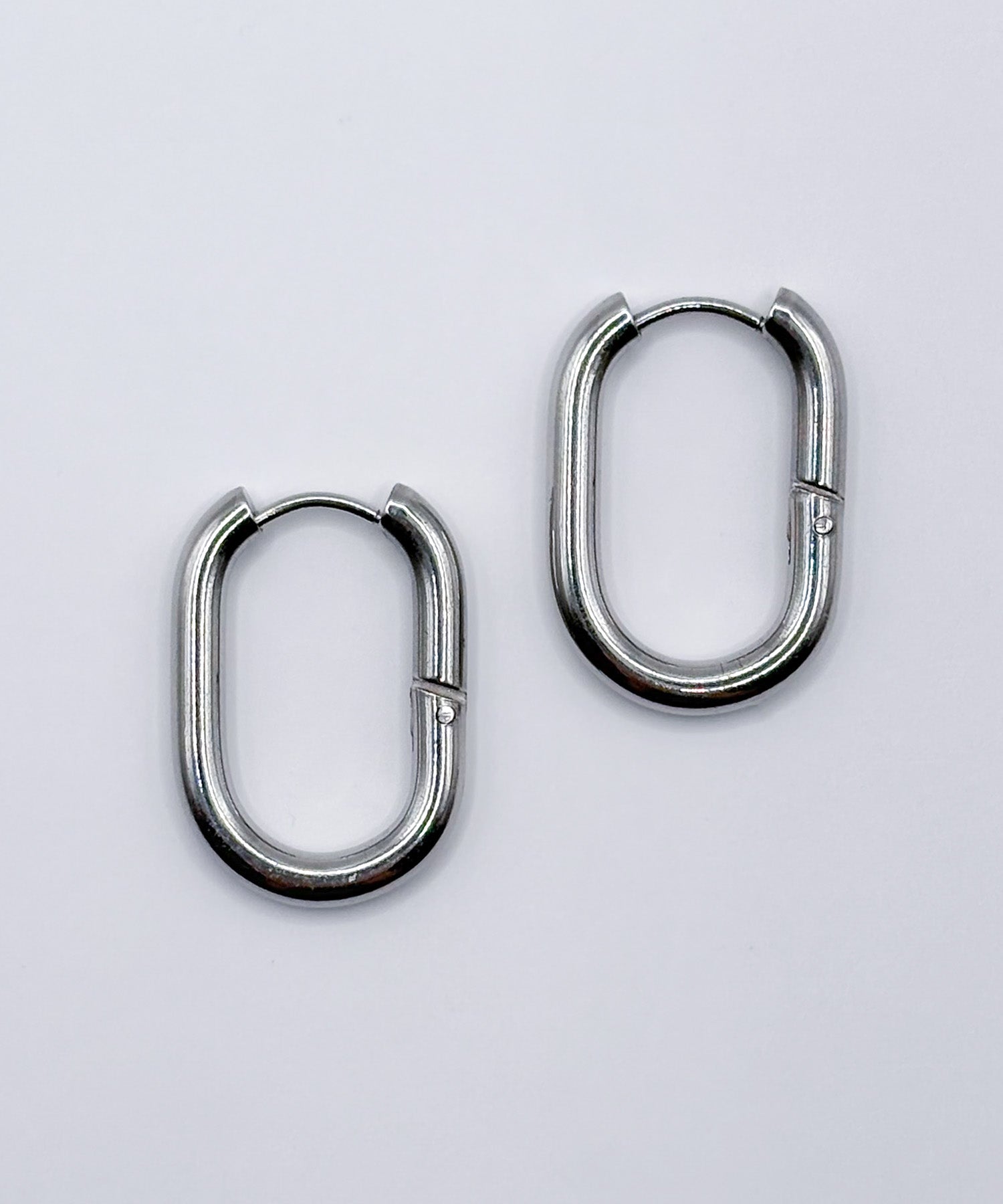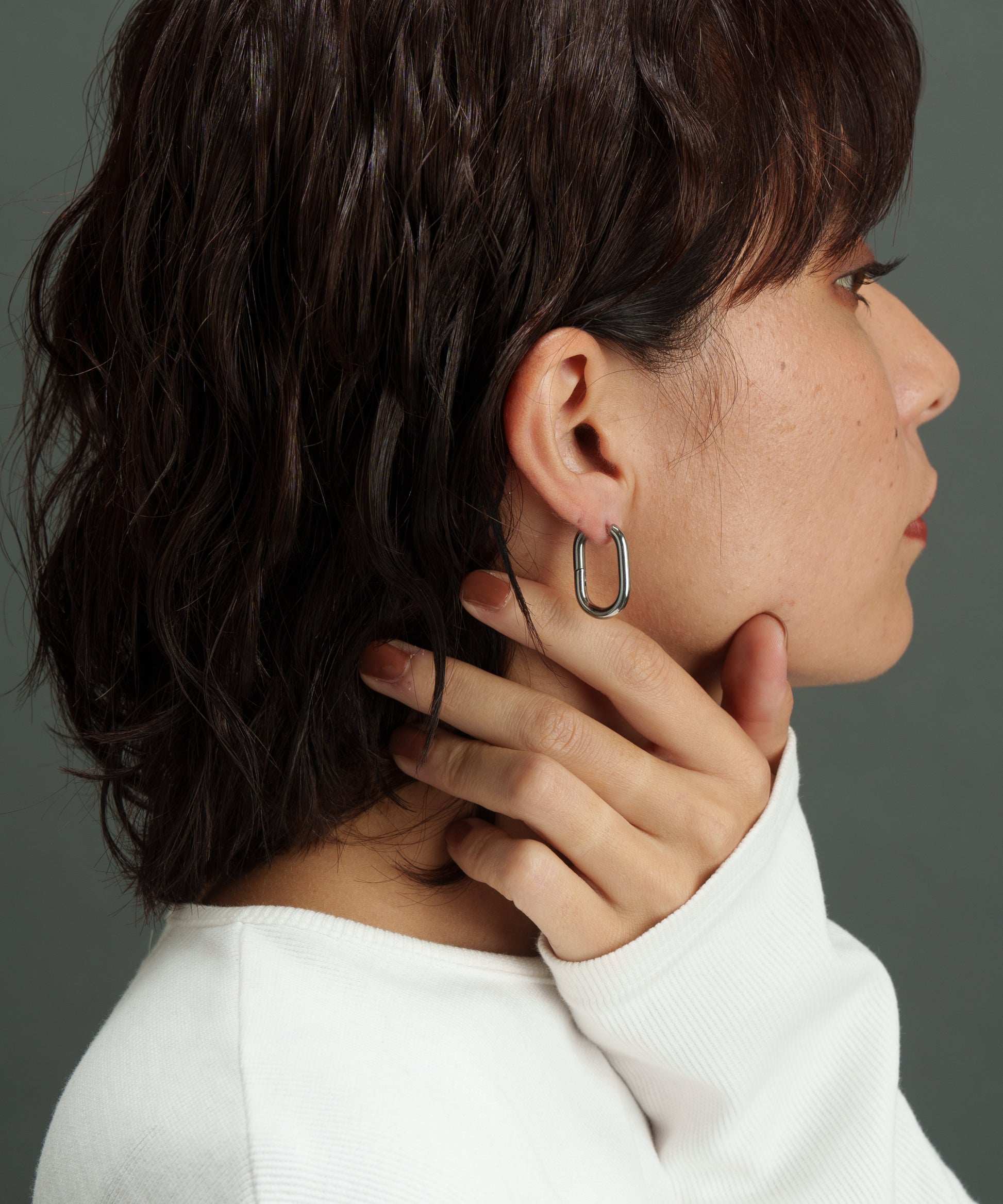 楕円形と丸みを帯びたパーツが柔らかな印象のピアス。カチッとはめ込みしっかり固定できる仕様です。