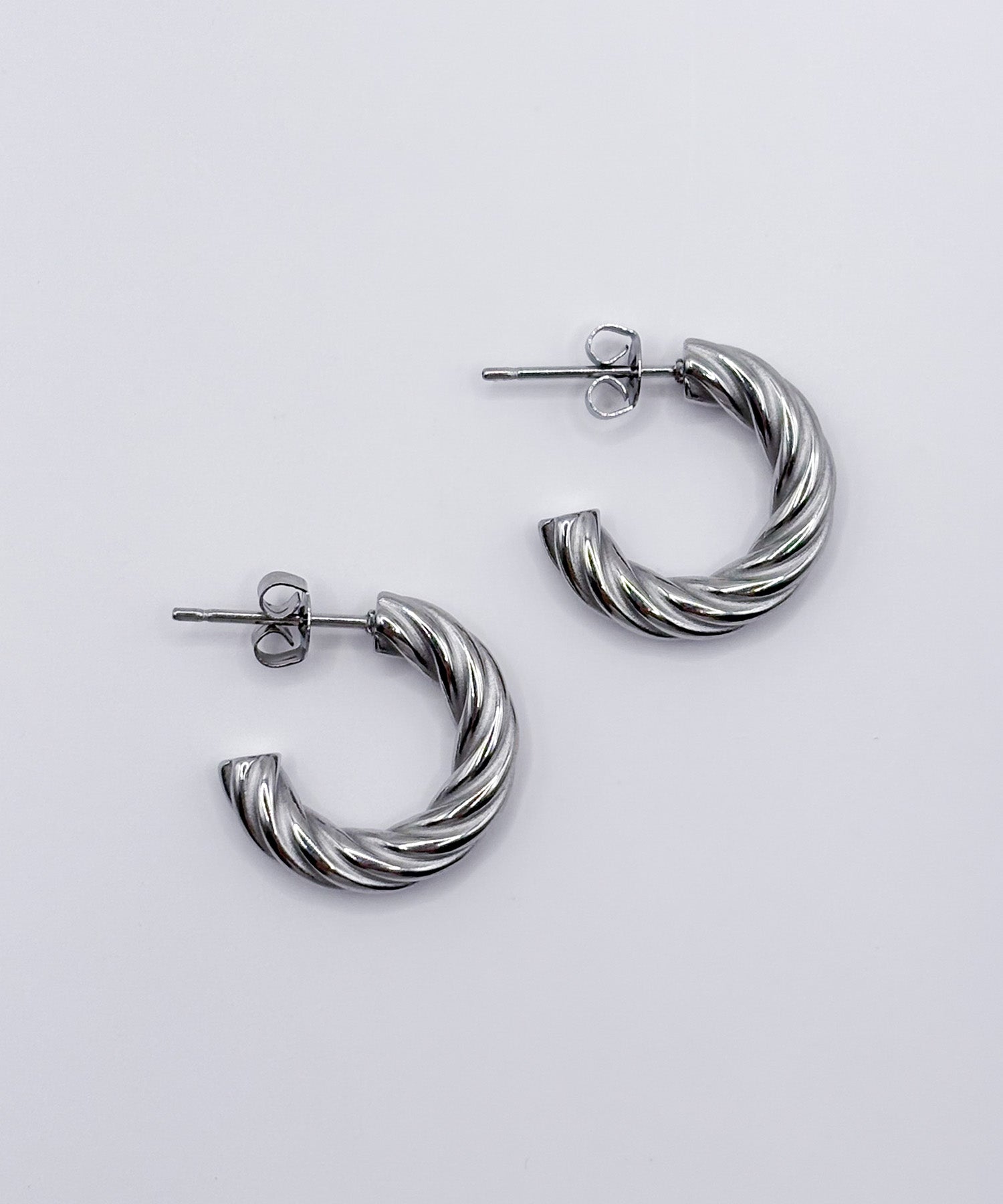ロープの型押しが刻まれた小ぶりピアス。上品でありながら、ヴィンテージを感じるピアスでシンプル過ぎず耳元のアクセントに。