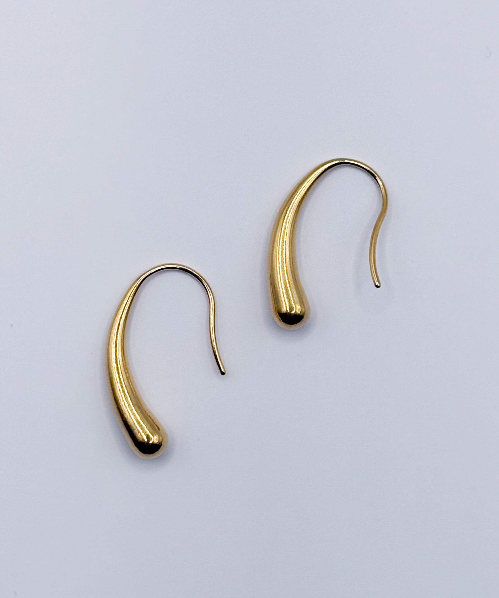 すらりと伸びる曲線を描いたフックピアス。キャッチはなく、ピアスホールに引っ掛けるだけで簡単着脱。