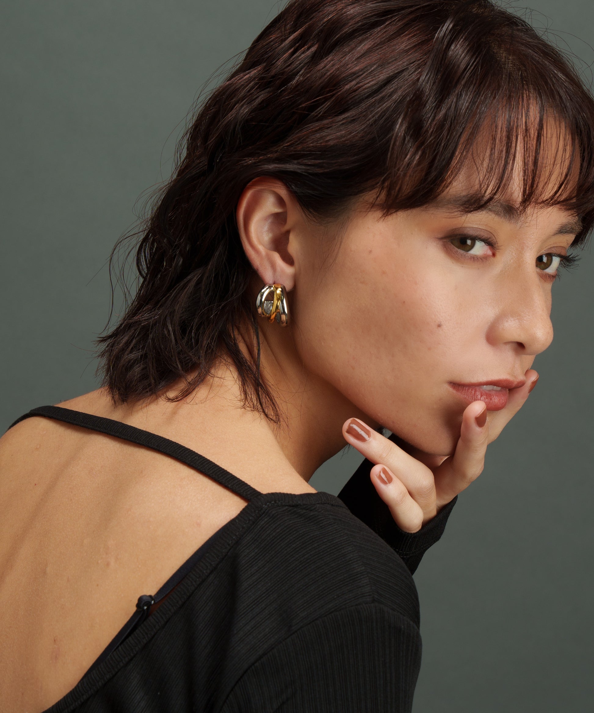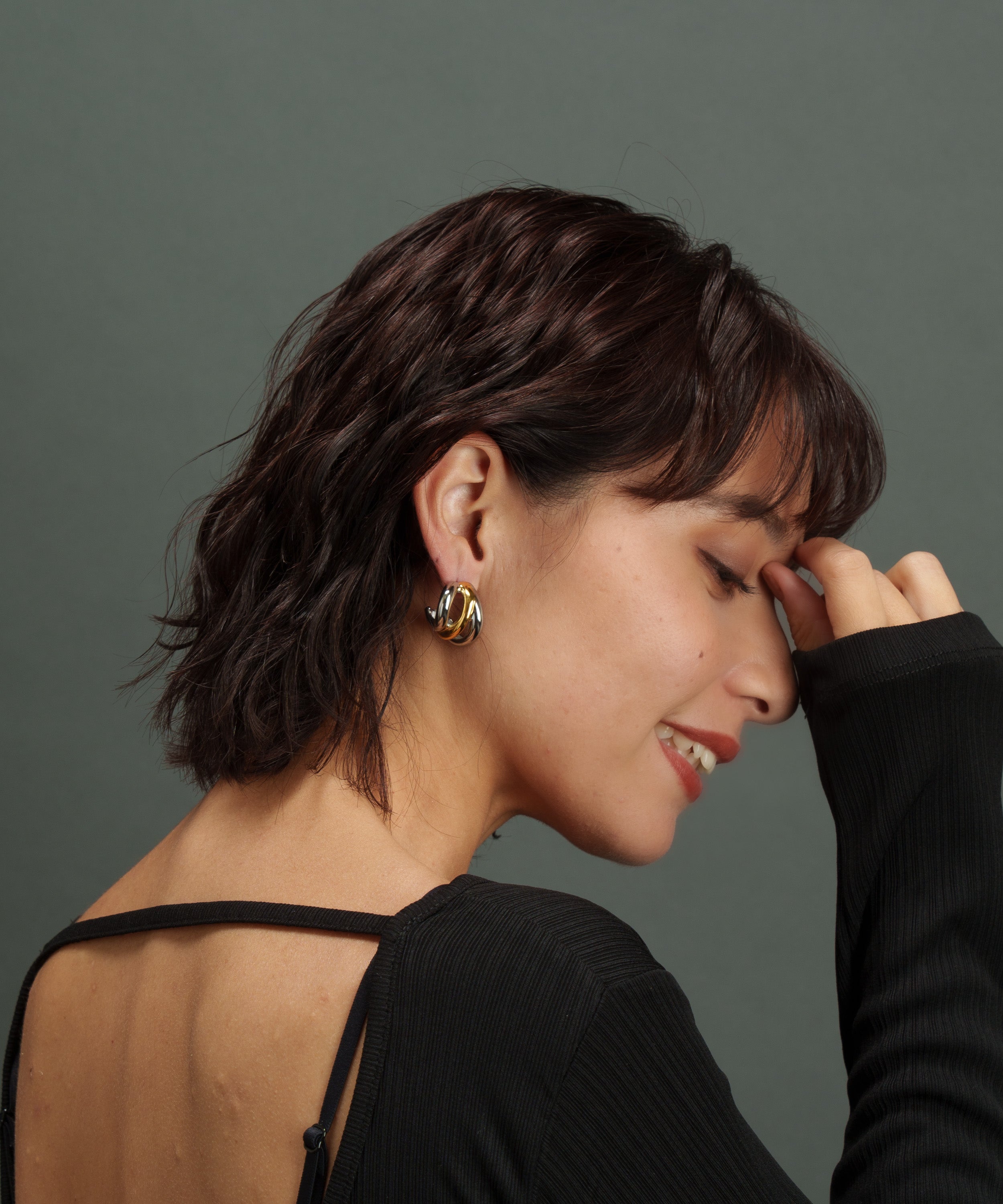 まるで熱で溶けたようなアートなデザイン。左右で異なるデザインがクラフト感を演出するピアスです。