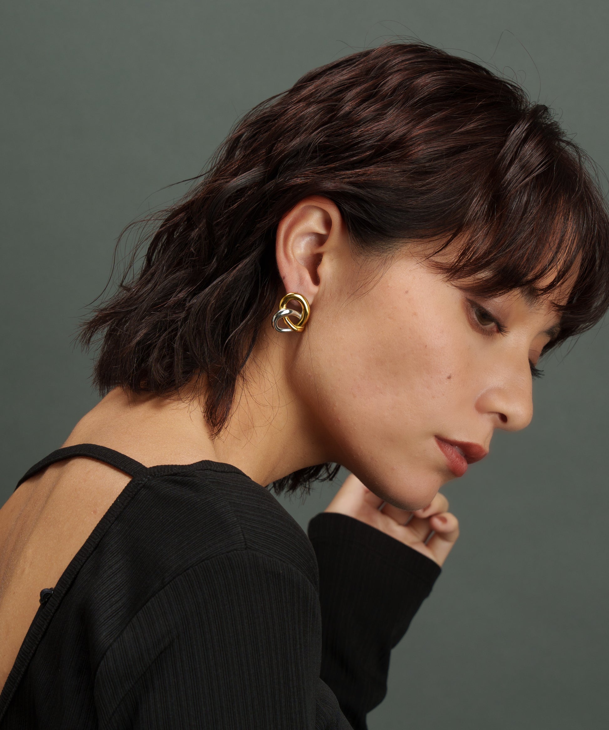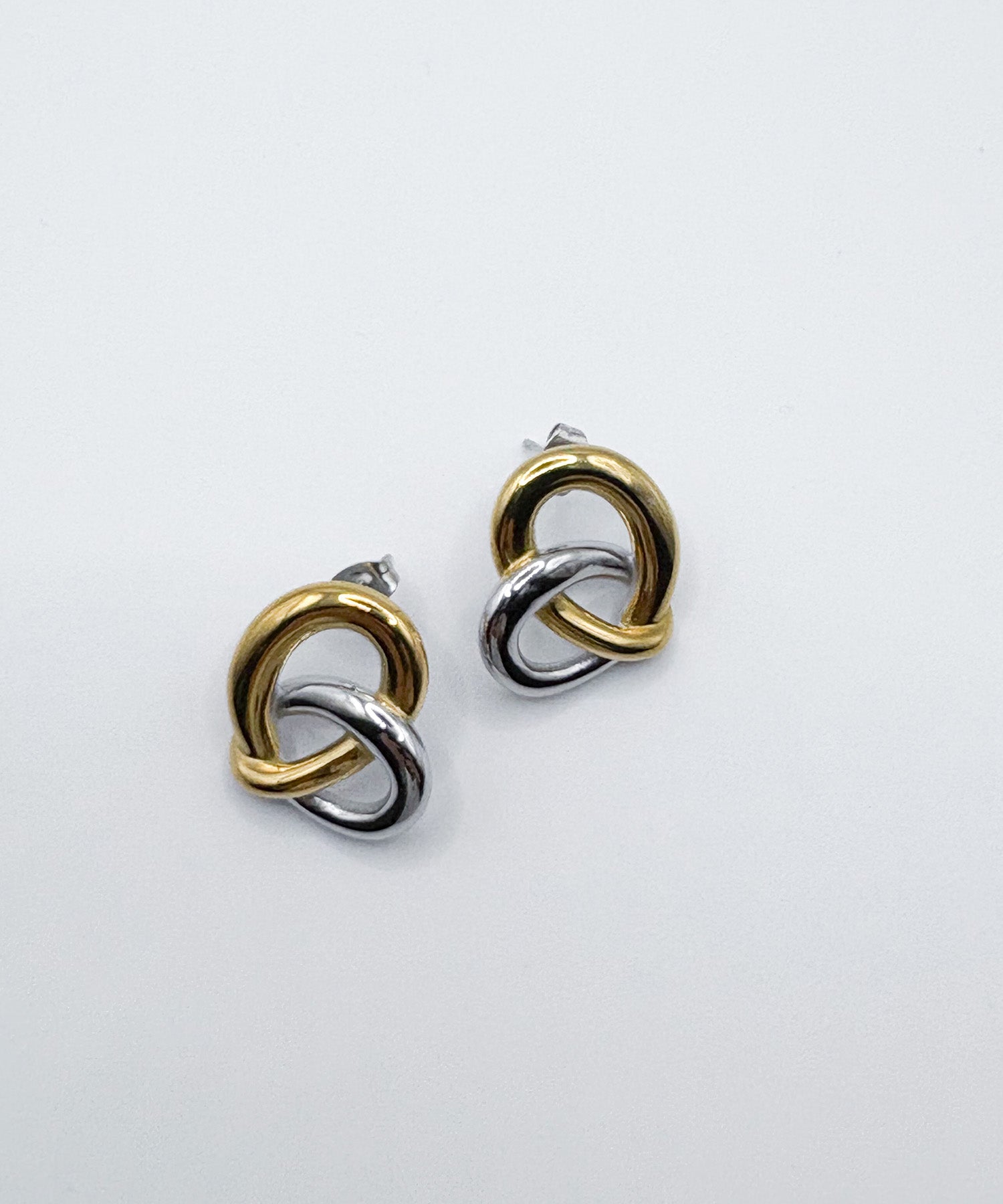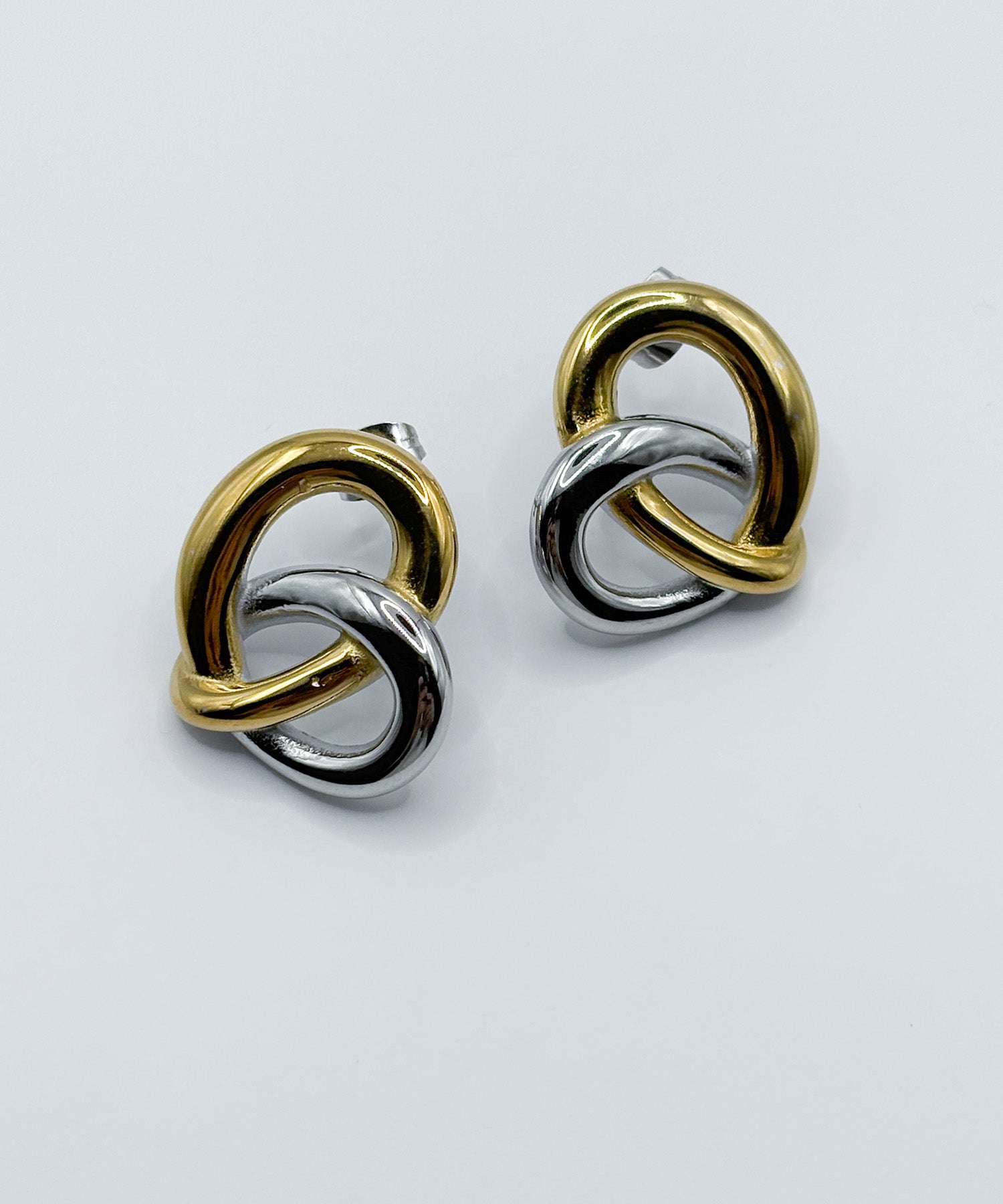 お菓子のプレッツェルを連想させる可愛らしいパーツデザイン。ミックスカラーによってラインの交わりがより鮮明に浮かび上がる仕上がりです。