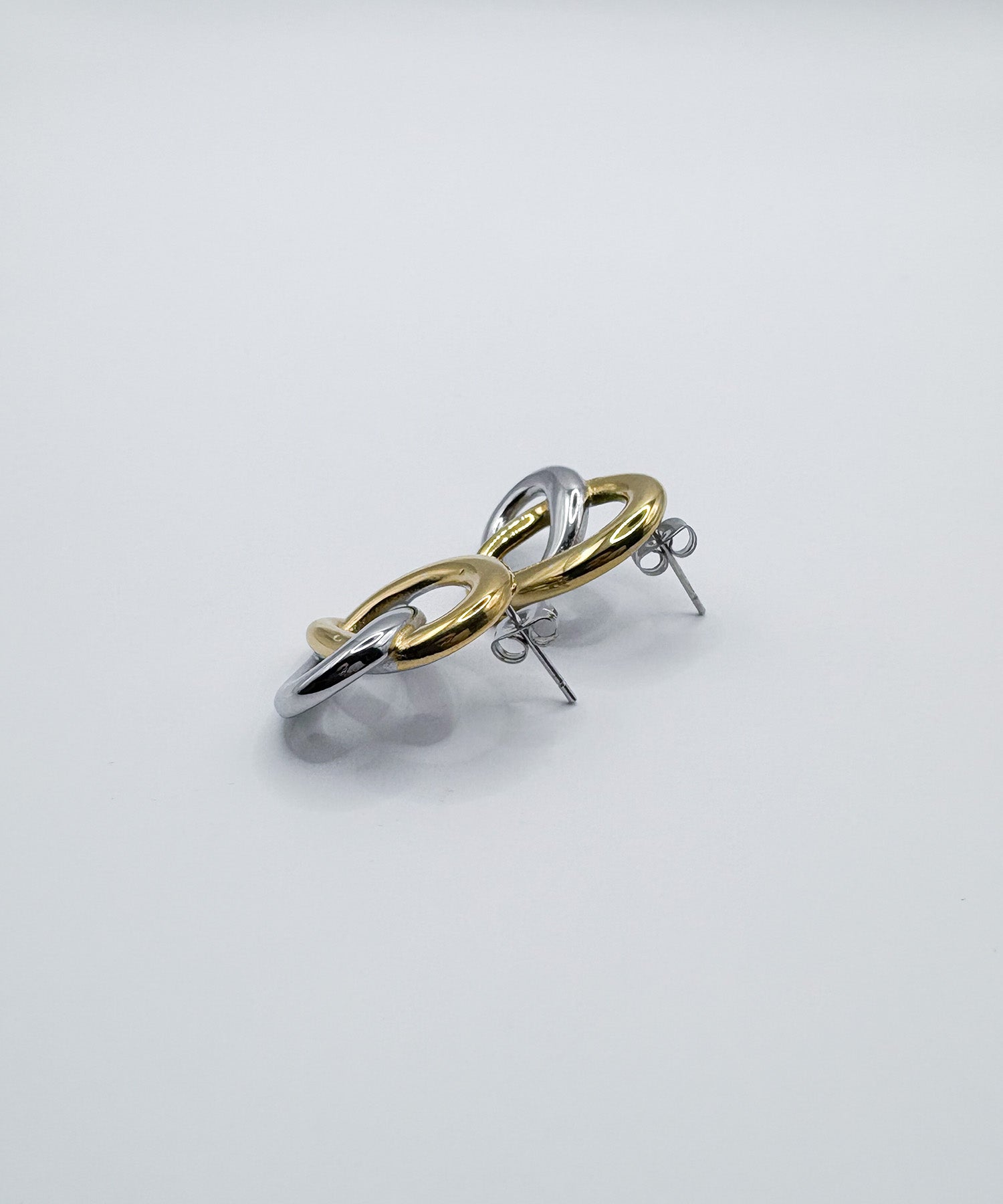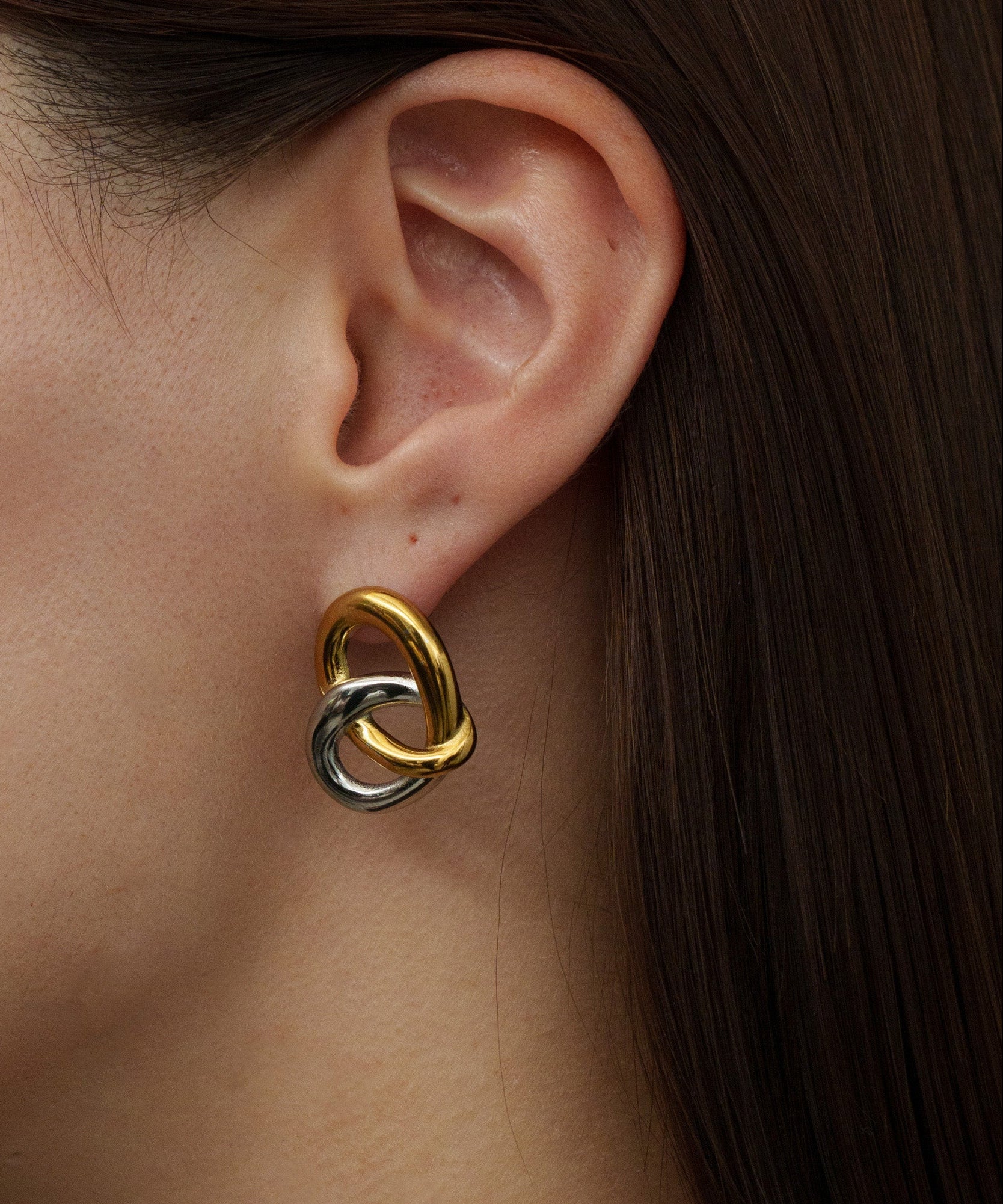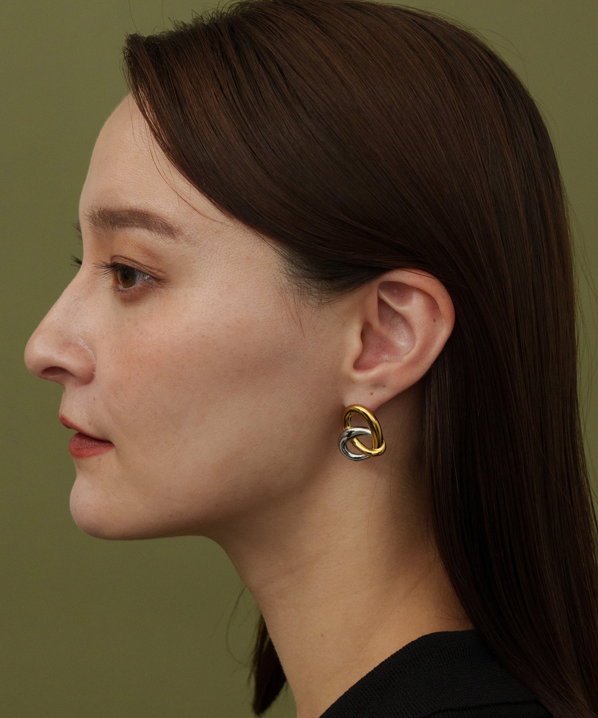 お菓子のプレッツェルを連想させる可愛らしいパーツデザイン。ミックスカラーによってラインの交わりがより鮮明に浮かび上がる仕上がりです。