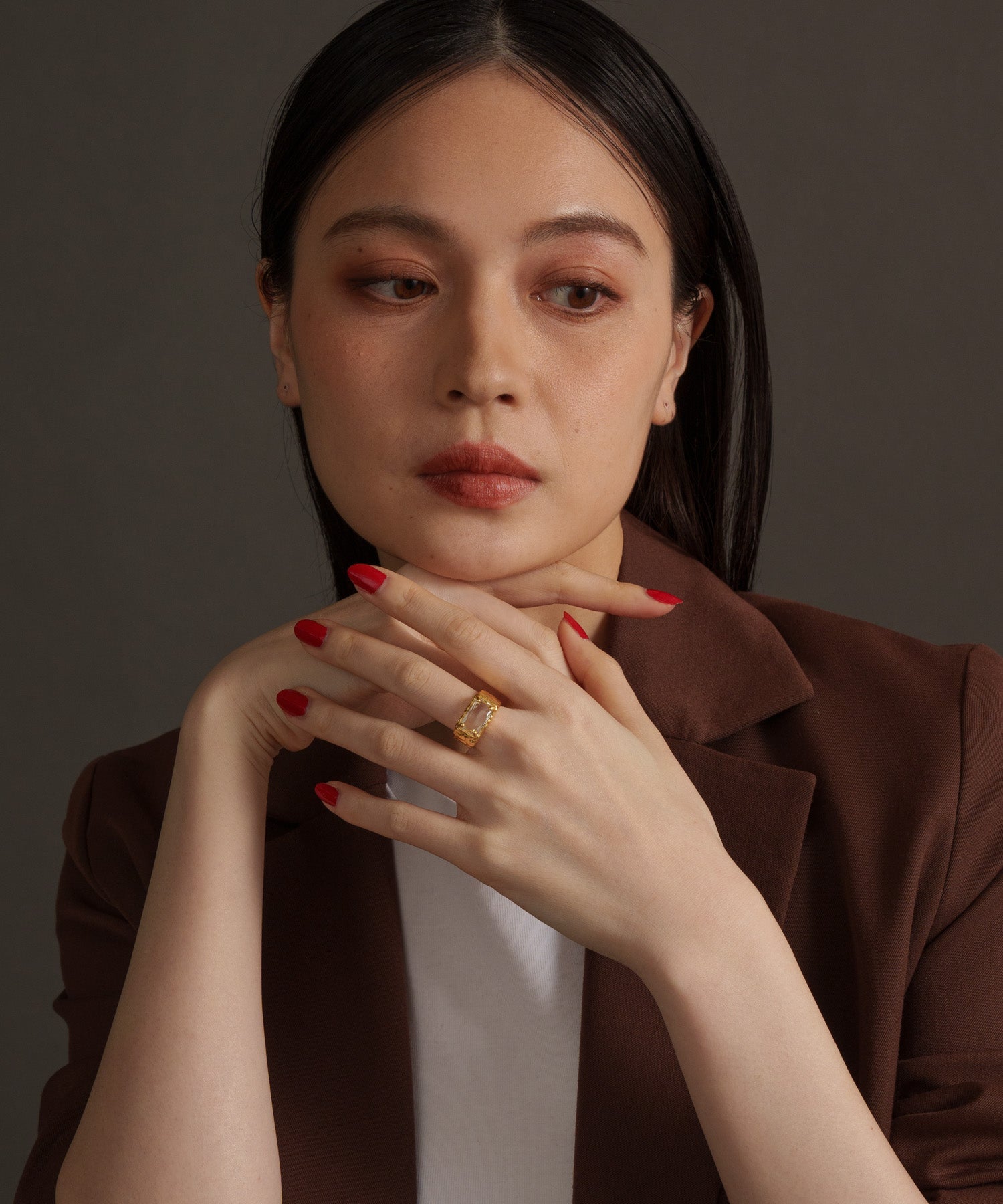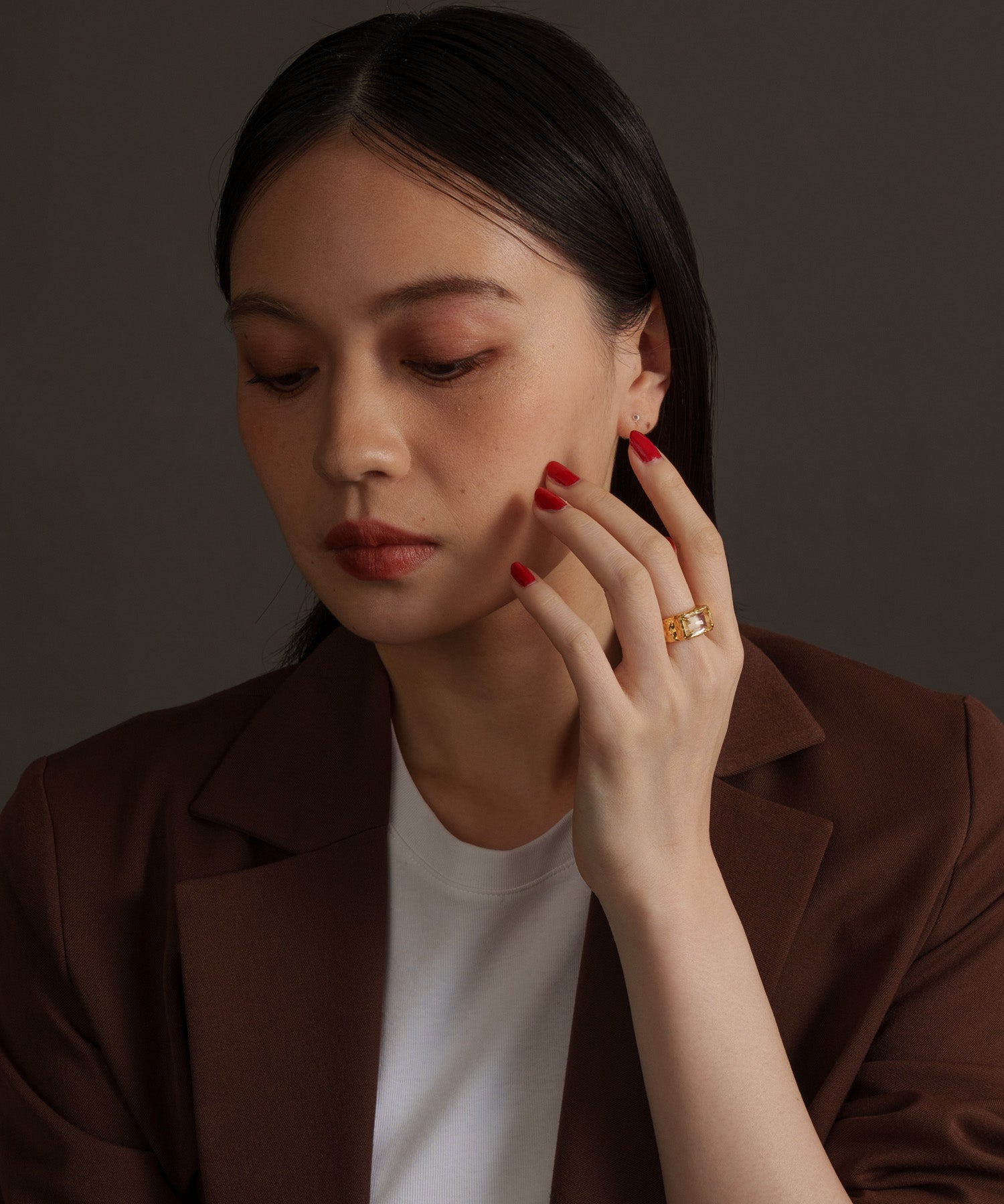 年代物風でどこか懐かしさがあるリング。(1AP1127)スクエアチェーンヴィンテージピアスとSETでお使いいただけます。