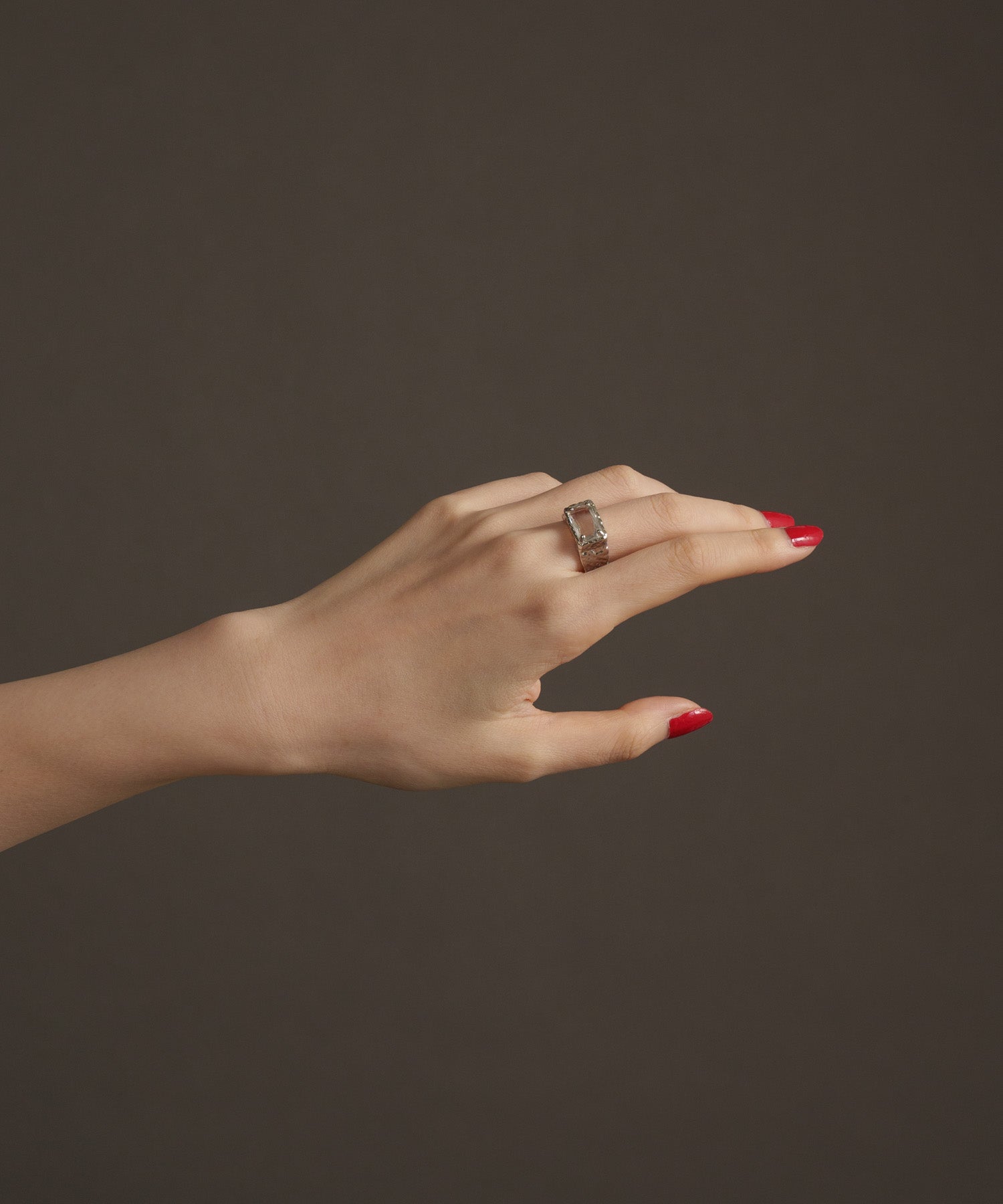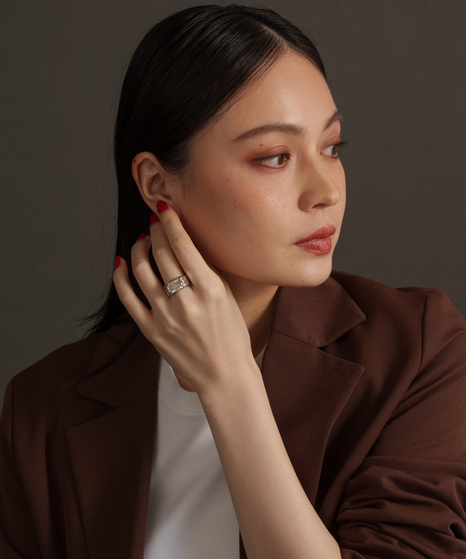 年代物風でどこか懐かしさがあるリング。(1AP1127)スクエアチェーンヴィンテージピアスとSETでお使いいただけます。